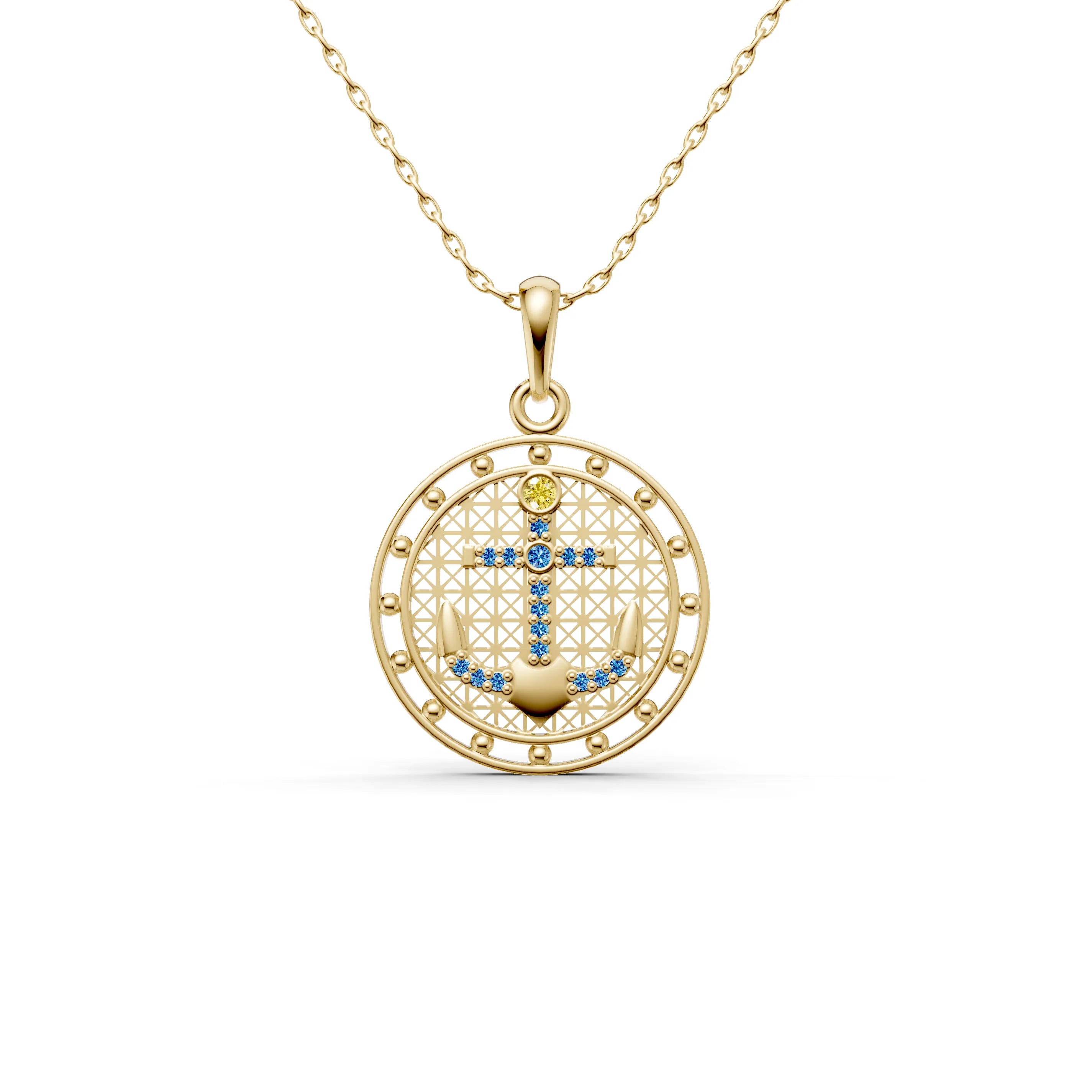 Set your style adrift with the "Anchor Charm Pendant," a nautical treasure that embodies the spirit of adventure and steadfastness. This medallion necklace showcases a classic anchor symbol at its heart, set against a geometric backdrop that evokes the precision of naval engineering and the mystique of the open sea.