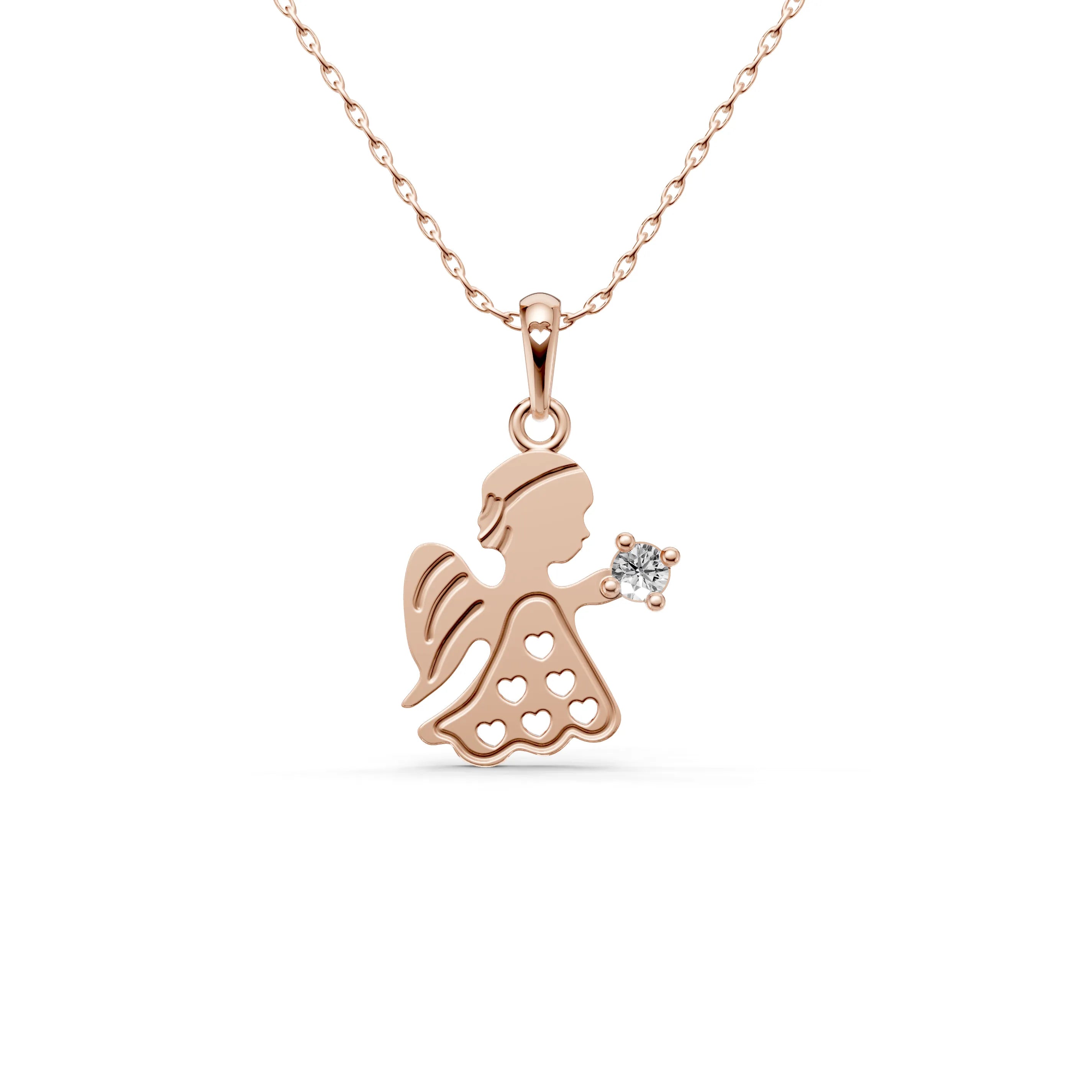 The "Angel's Heart Solitaire Pendant" is a delicate and serene piece, capturing the innocence and purity of an angelic presence. This angel pendant necklace features the sweet silhouette of a baby cherub, complete with detailed angel wings, all crafted in a radiant gold tone.