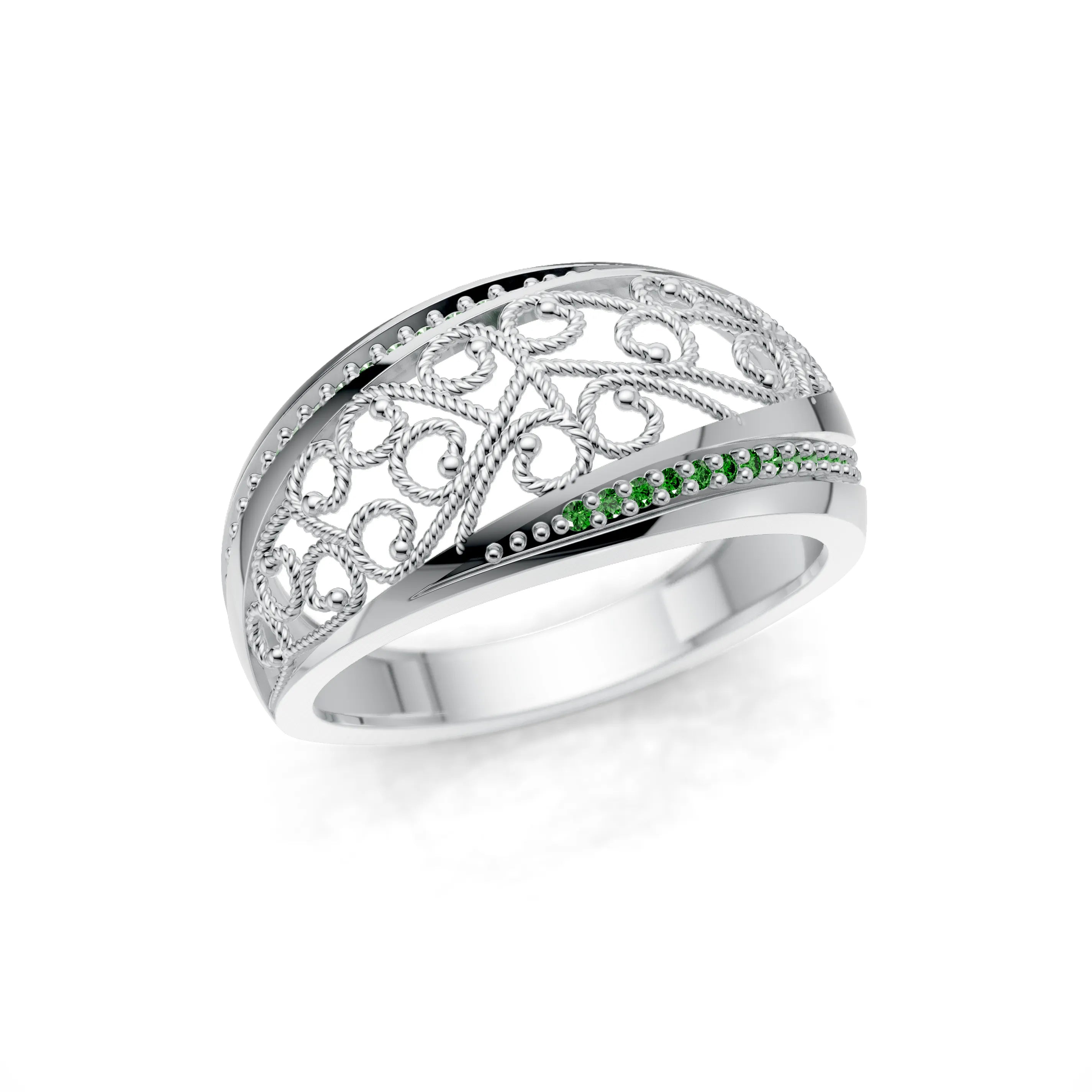 The Arabesque Filigree Cocktail Ring is tailor-made for social events that call for a dash of grandeur, such as a high-tea party, a formal gala, or a milestone birthday celebration. It's equally at home in the festive spirit of a wedding or engagement party, adding a layer of opulence to the wearer's ensemble. Its versatility also lends itself well to being a standout accessory for a special night out, making it a must-have in any jewellery connoisseur's collection.