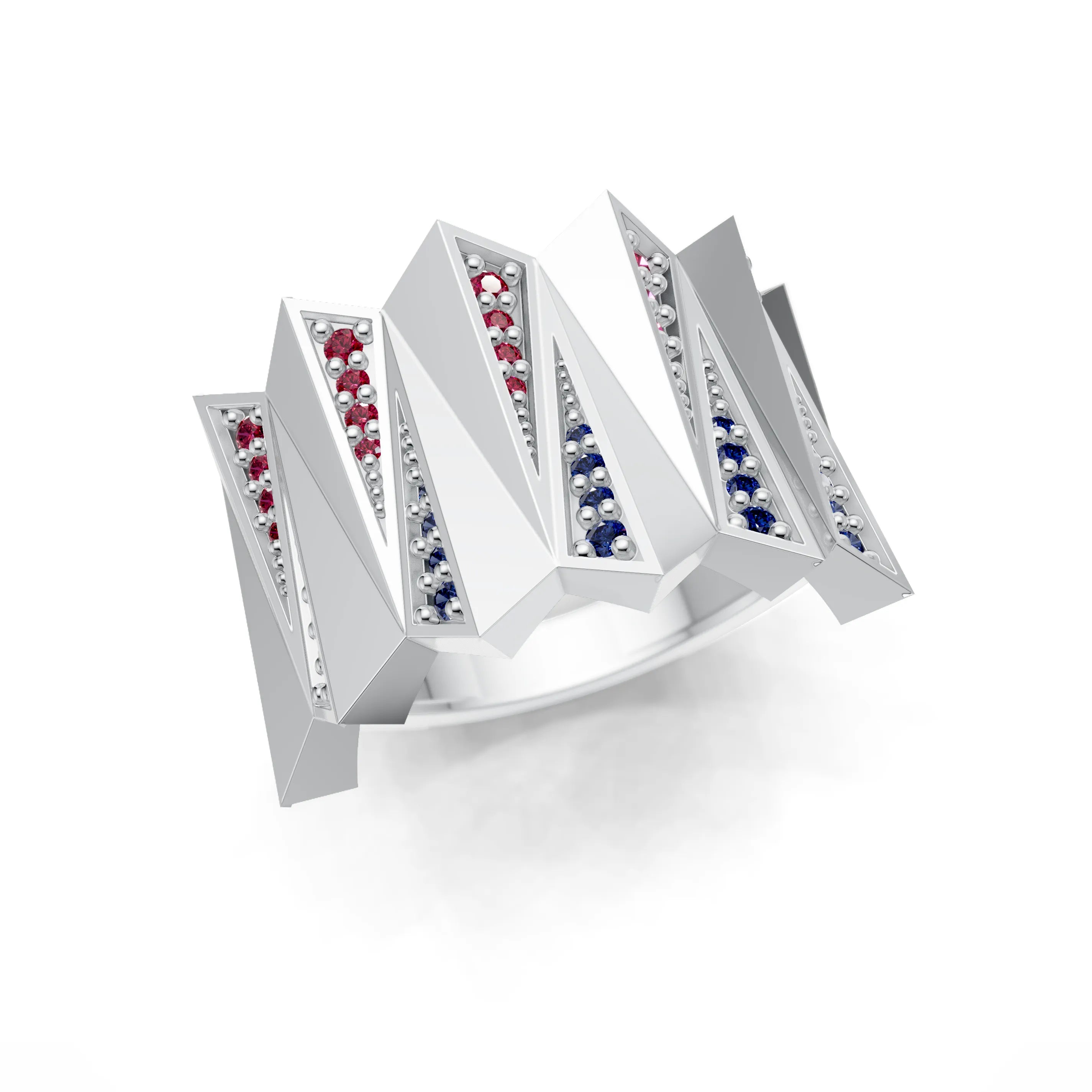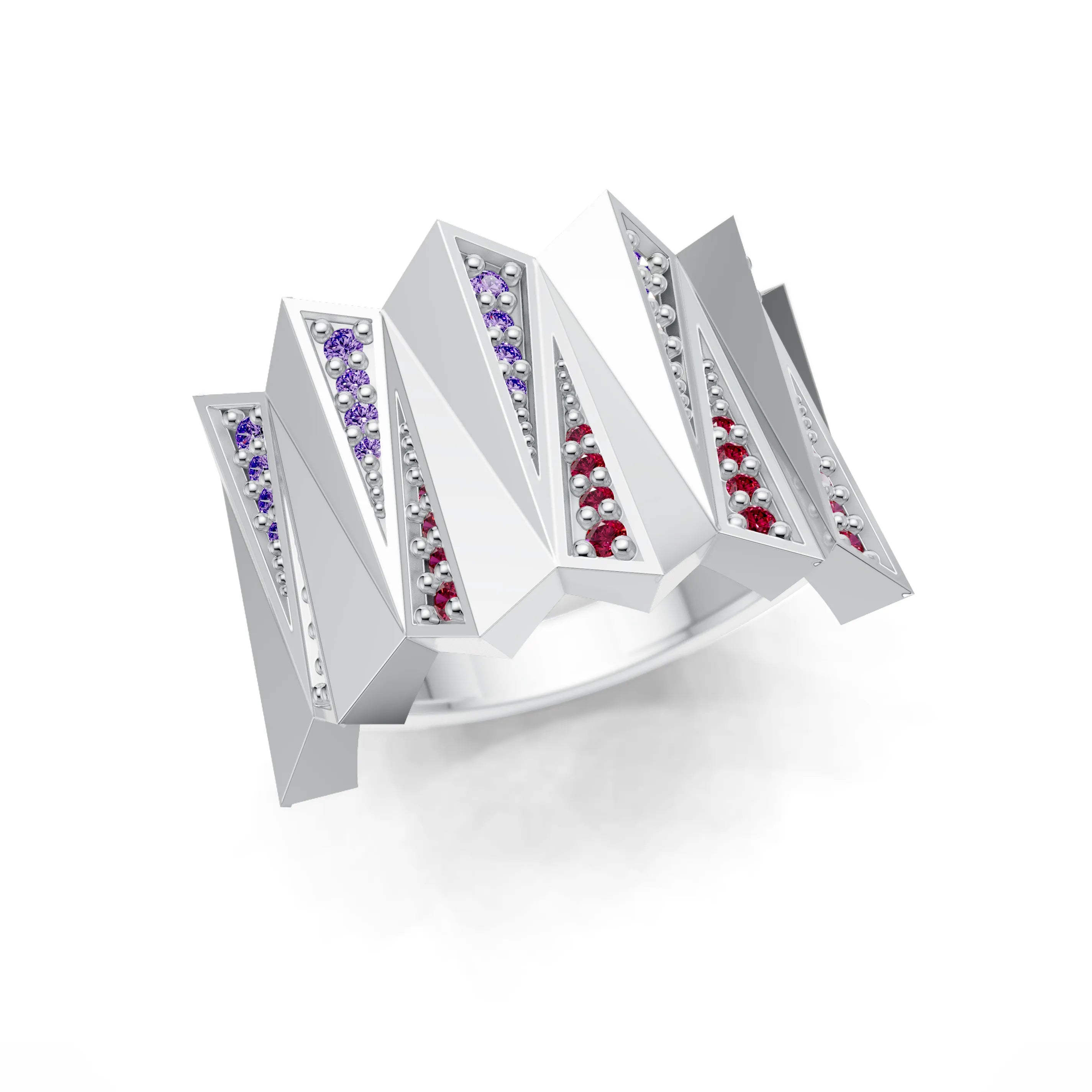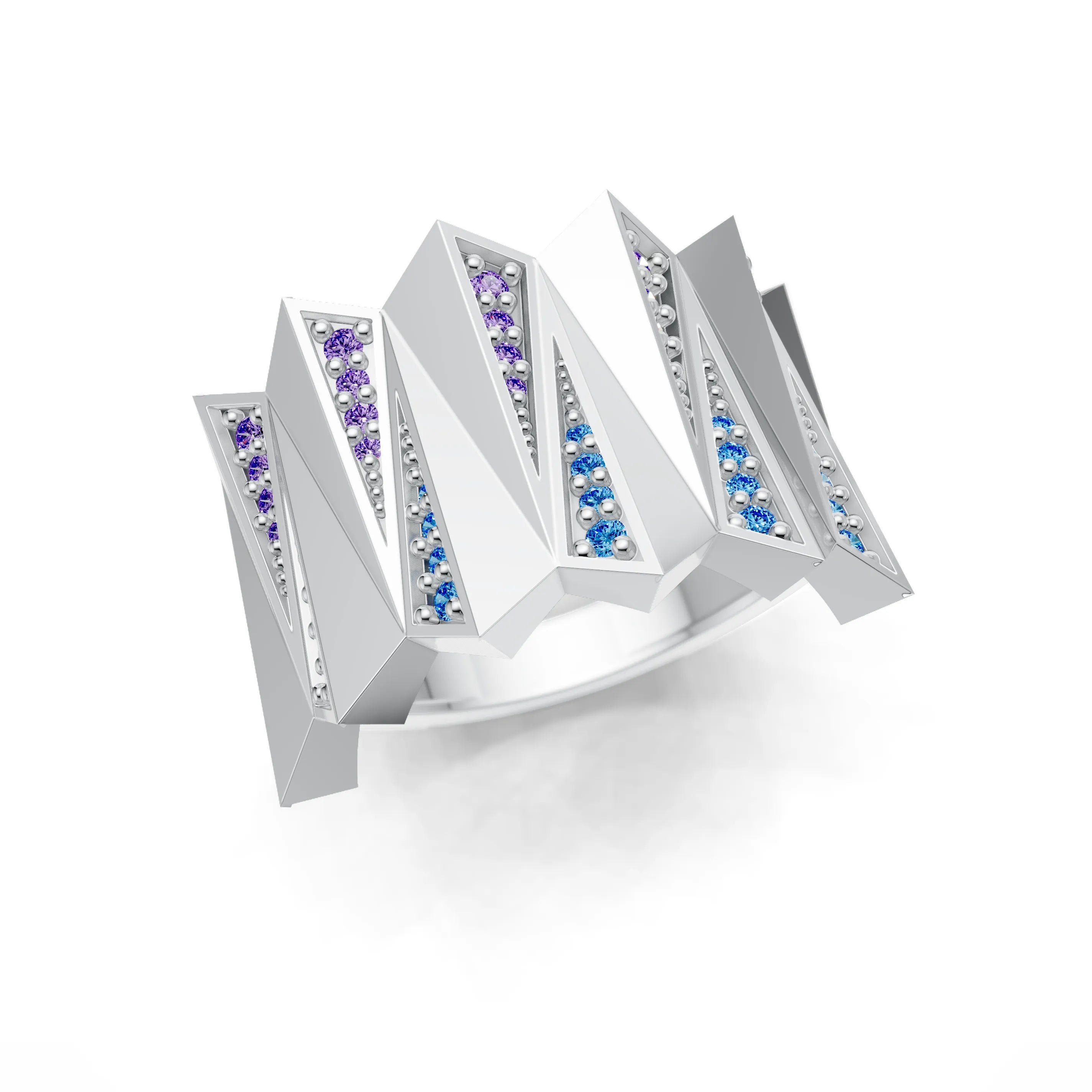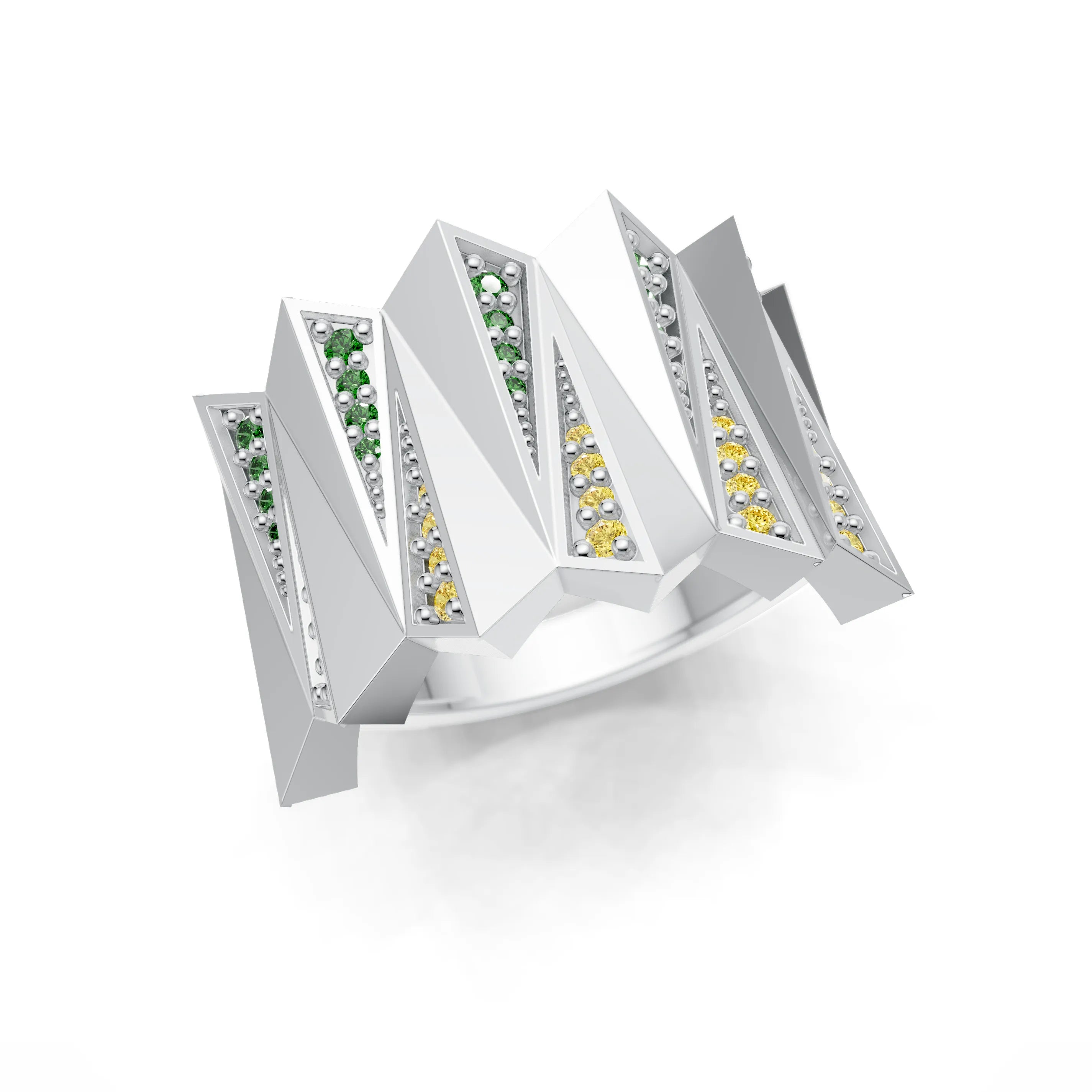 Wearing the "Art Deco Fan Gem Band" is about embracing the past while making a chic, contemporary statement. It's a ring that balances intricate design with the timeless allure of gemstone jewelry, ensuring its place as a standout piece in any collection.