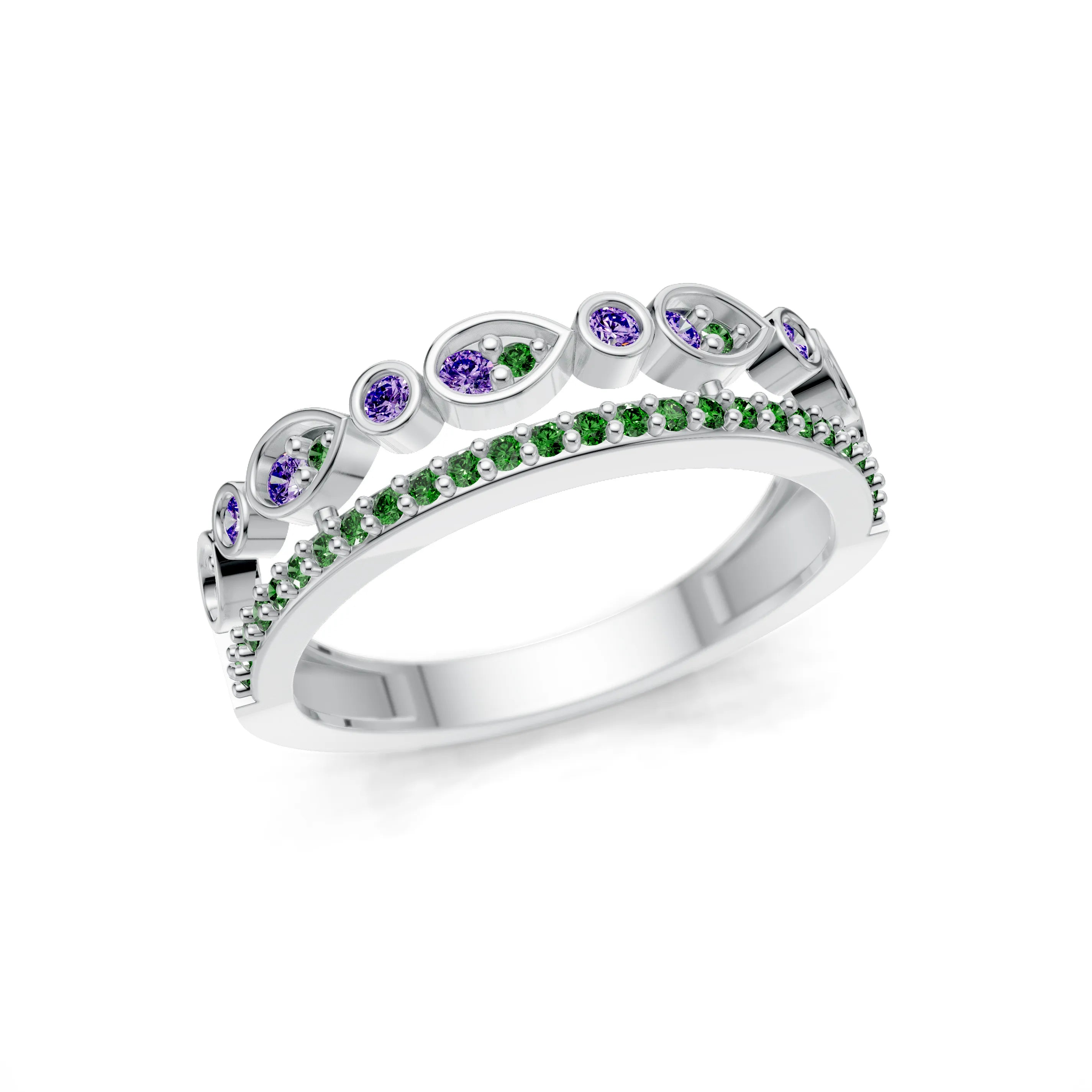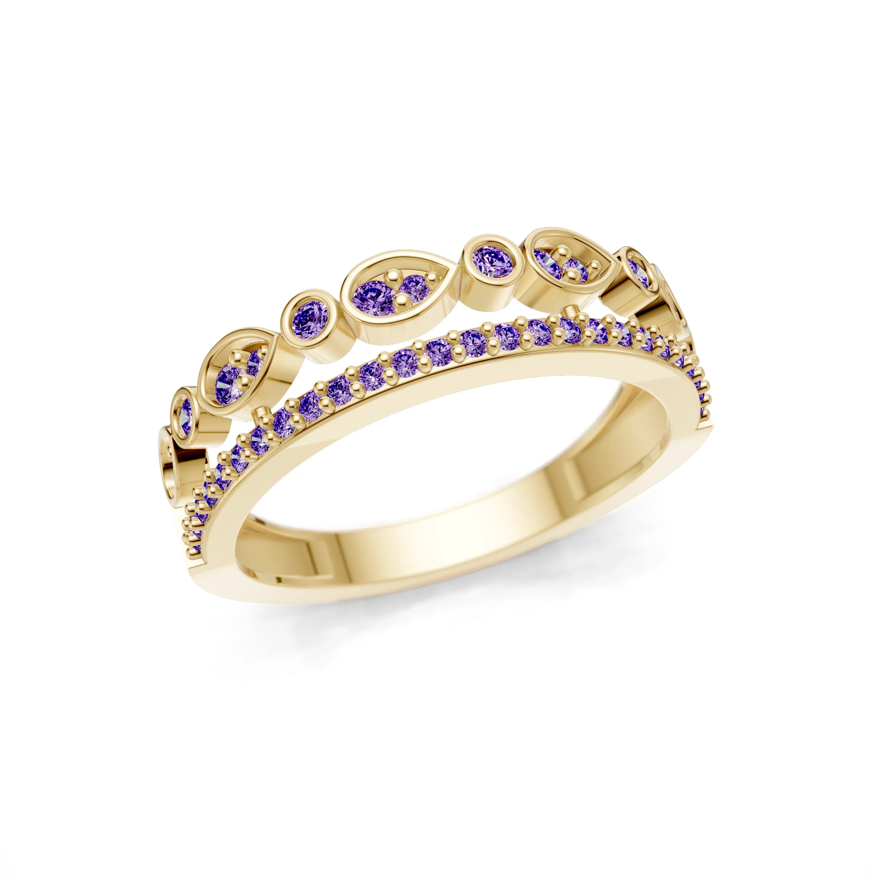 This ring makes a statement with its row of dazzling stones, designed to catch the light and offer a continual sparkle that's perfect for any cocktail event or a glamorous evening out. As a family ring, it holds the sentiment of legacy, making it an exceptional choice for an engagement ring that speaks of a shared future and a nod to the lineage.