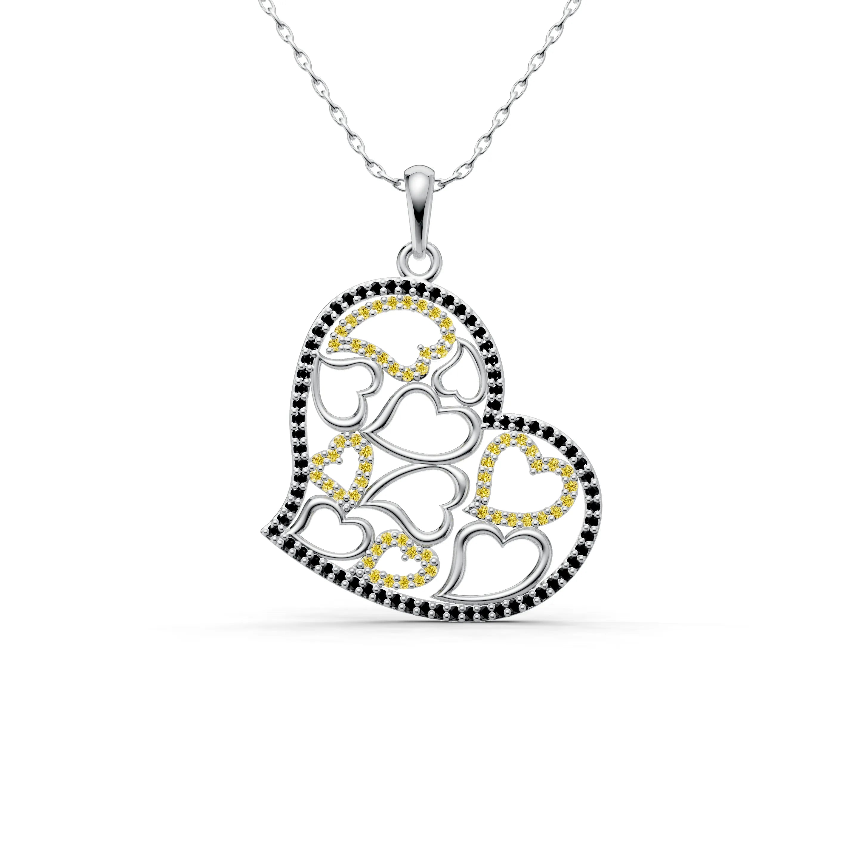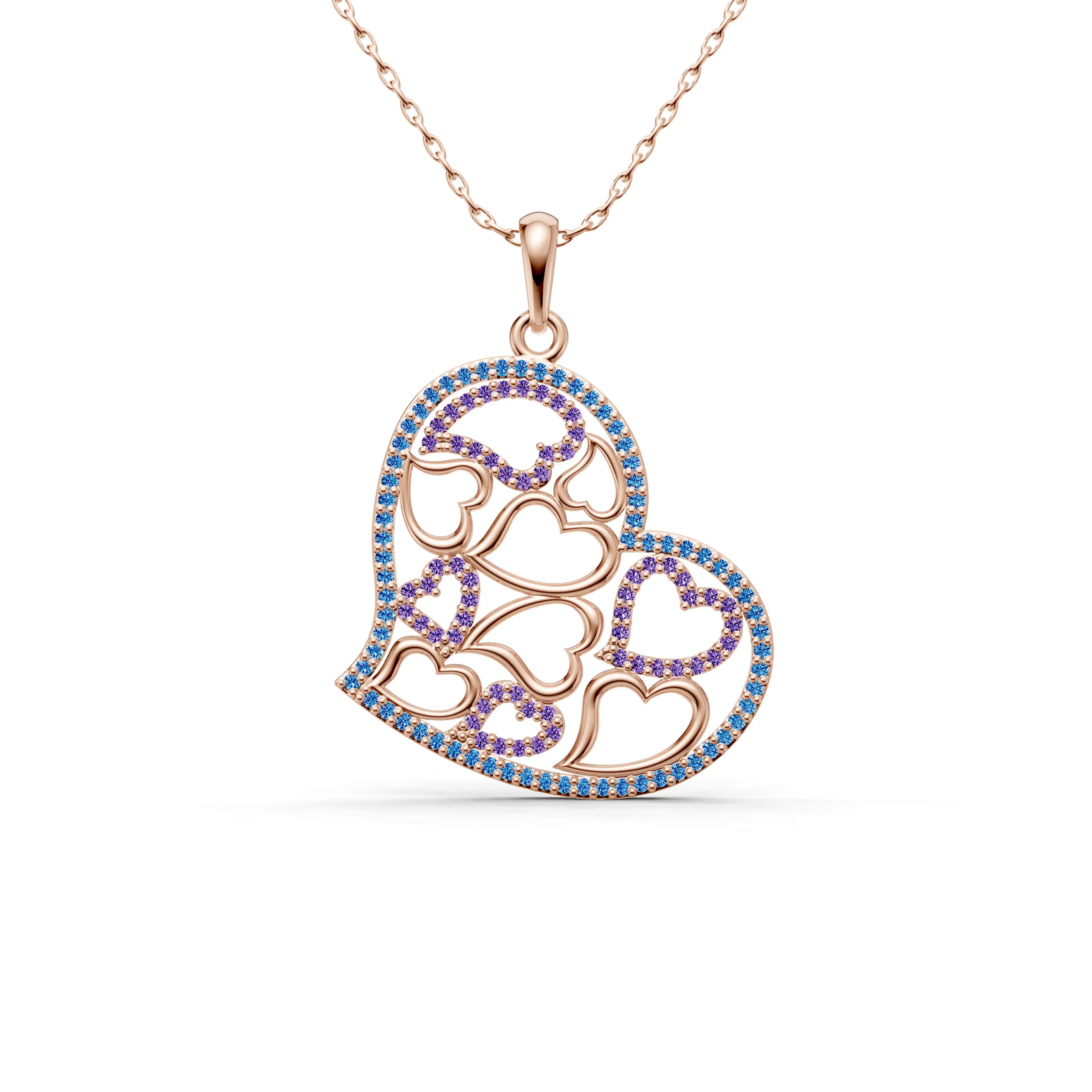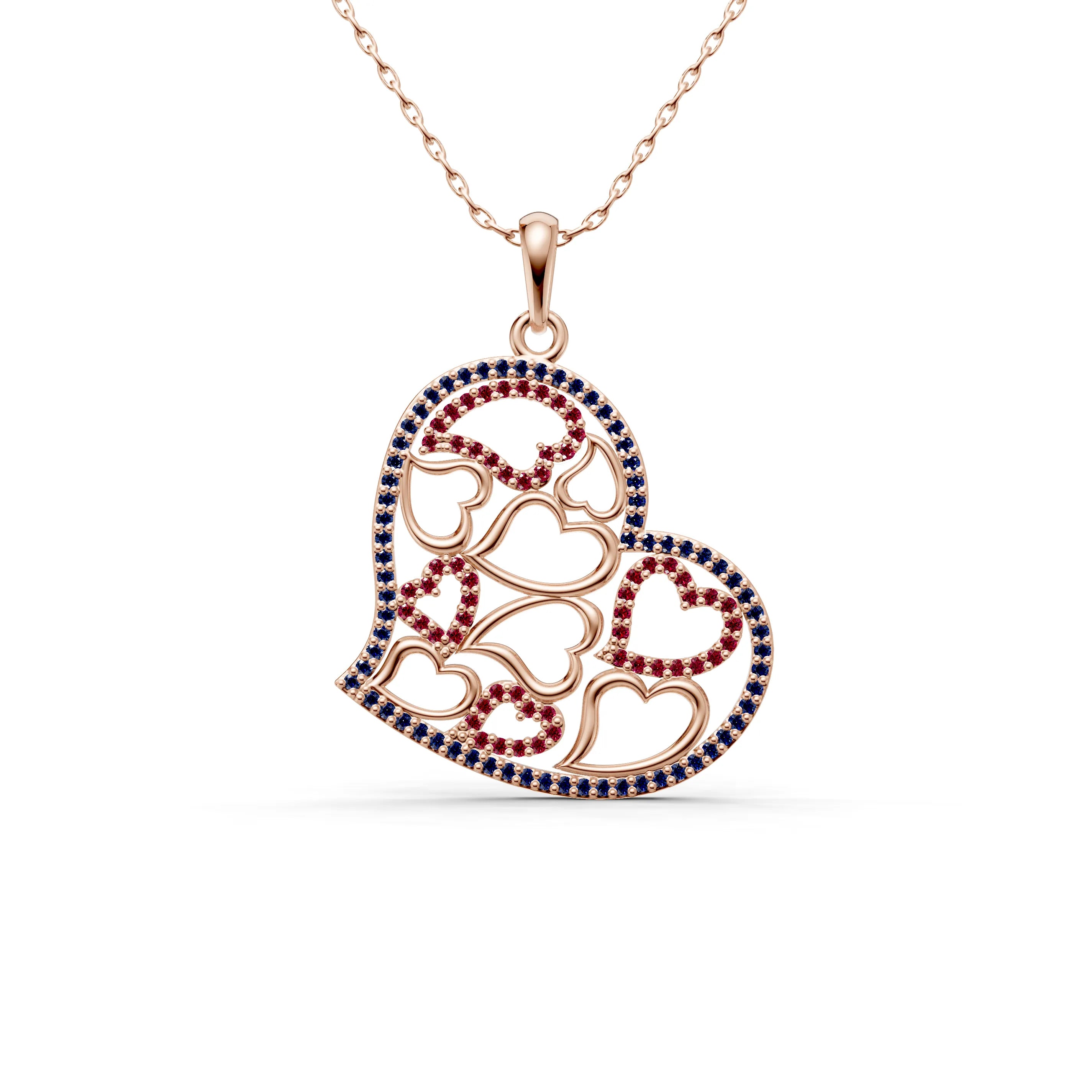 This piece reflects the complexity and multifaceted nature of love, with each individual heart contributing to the complete image, much like the individual experiences that shape our understanding of love. The use of contrasting textures and the play between the open heart elements and the sparkling stones make this necklace a distinctive piece within any jewelry collection.