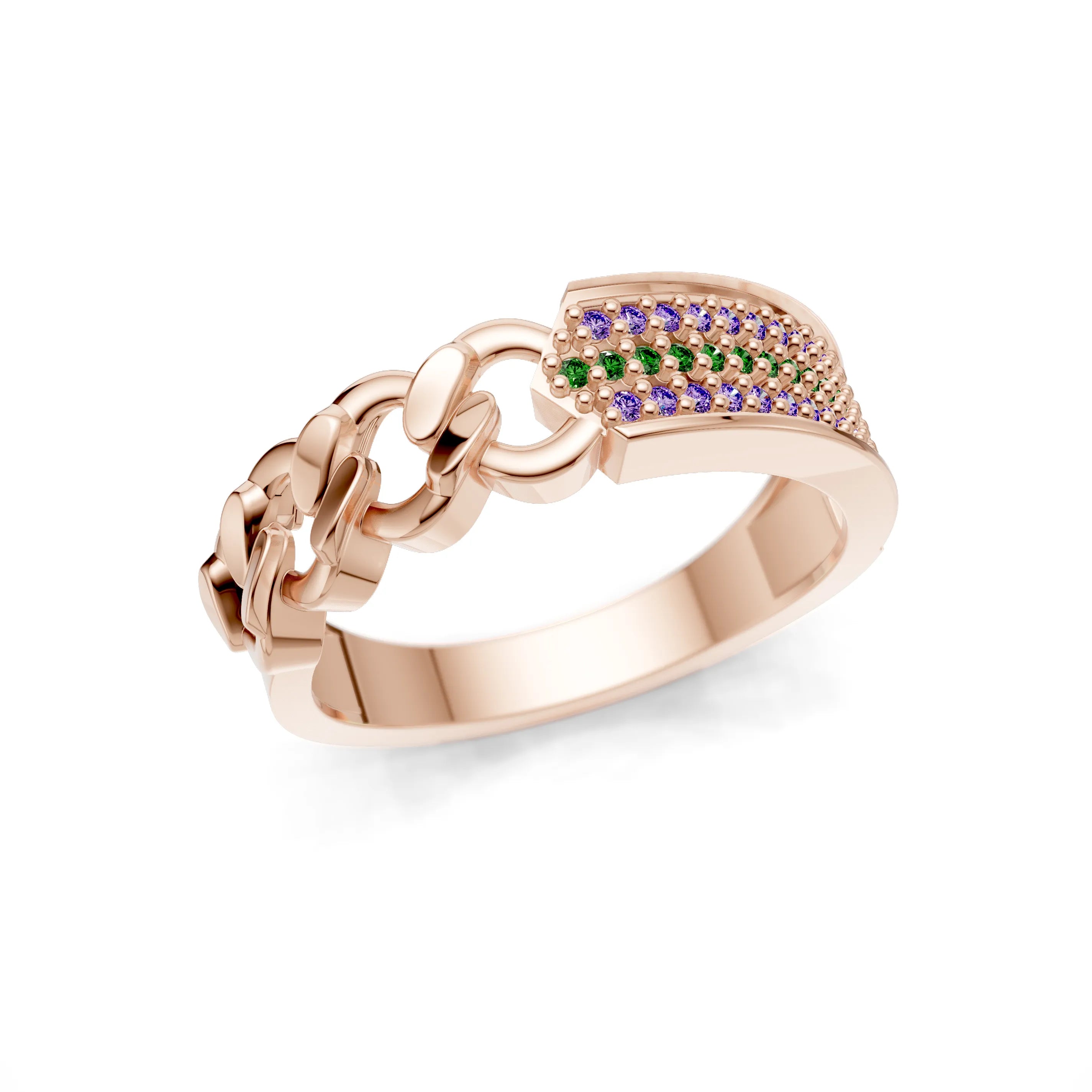 The Chic Link Pave Statement Ring is an excellent gift to commemorate milestones or to express commitment. It's a piece that commands attention, designed for the trendsetters and style connoisseurs who appreciate jewellery with a story and presence.