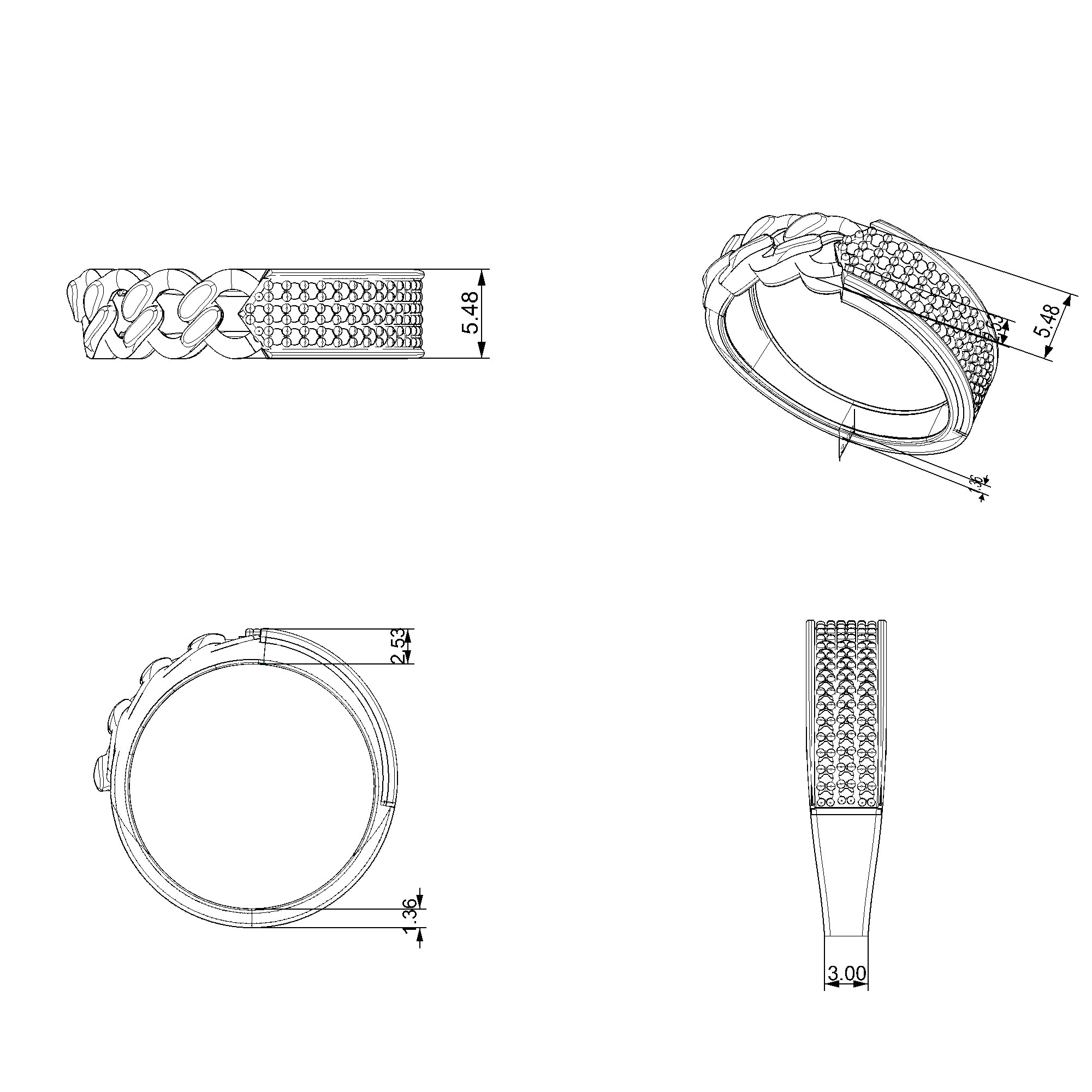 Adorned on one edge with a glittering pave setting, the ring exudes luxury, each stone meticulously placed to ensure an alluring sparkle that's captivating in all lights. This design element transforms the ring into a statement piece, ideal for the individual making their mark in the world.