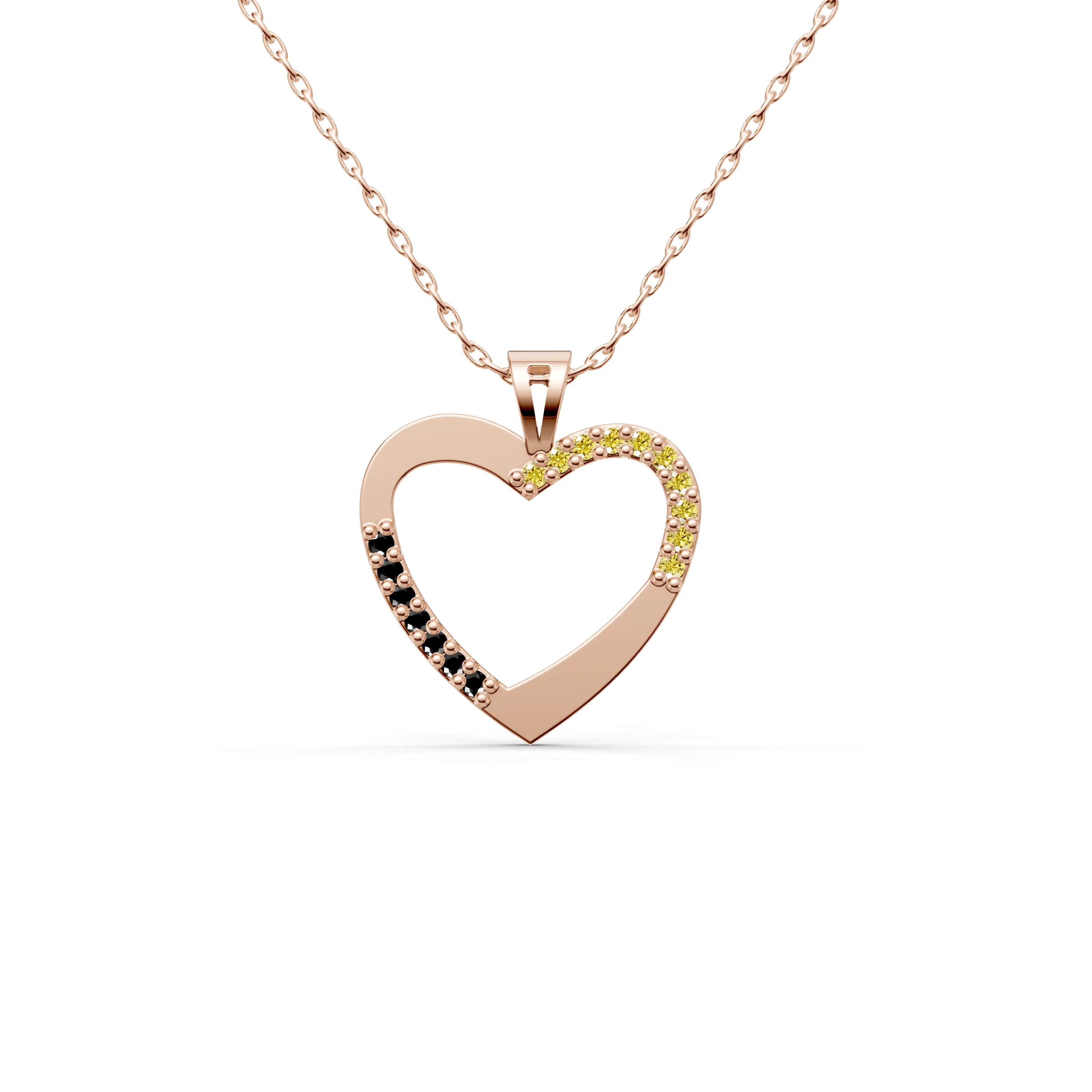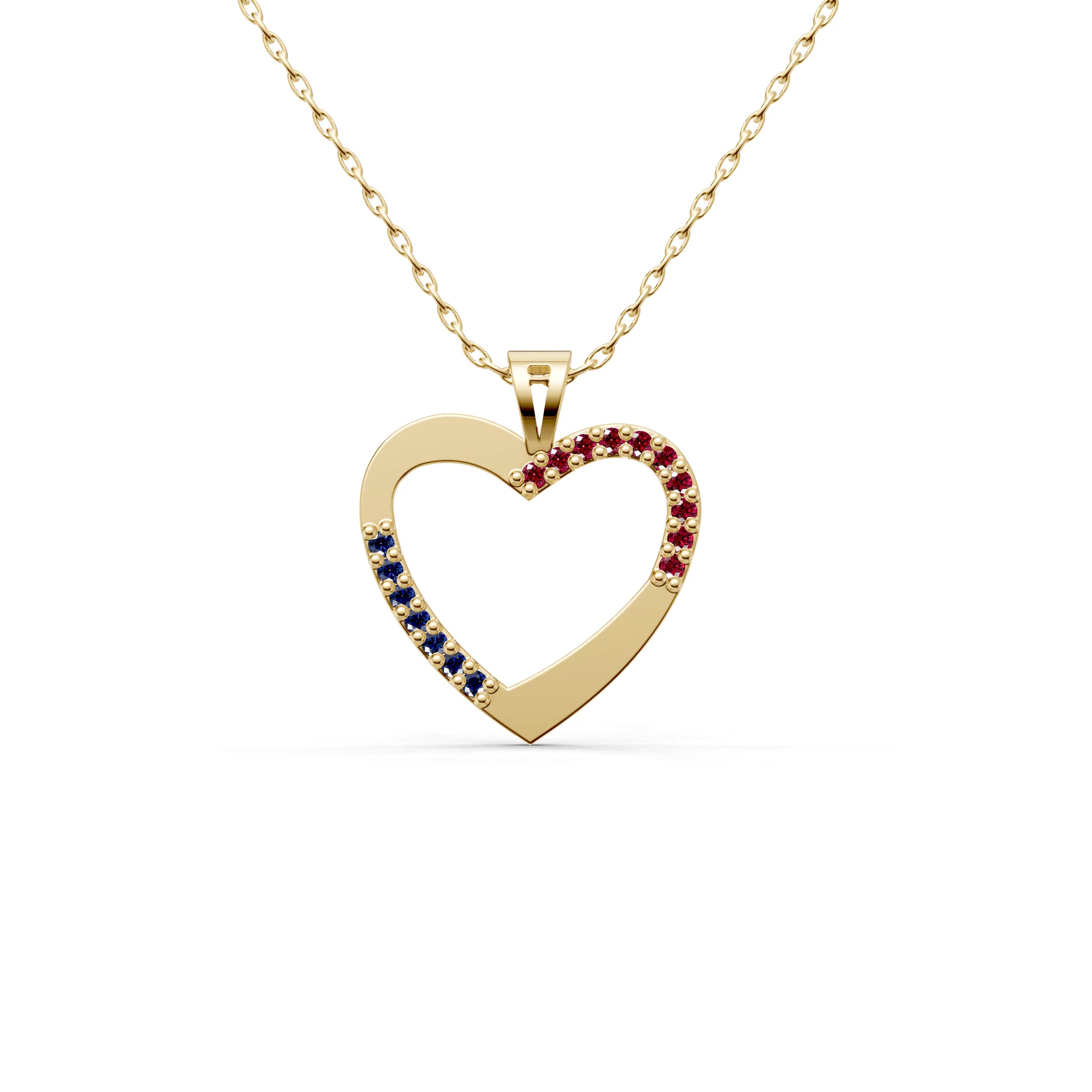 Adorned with a sweeping curve of gemstones that trace one side of the heart, the pendant symbolizes a loving embrace that is both protective and gentle. The lustrous gold-tone of the heart complements the sparkle of the gemstones, creating a harmonious balance between warmth and brilliance.