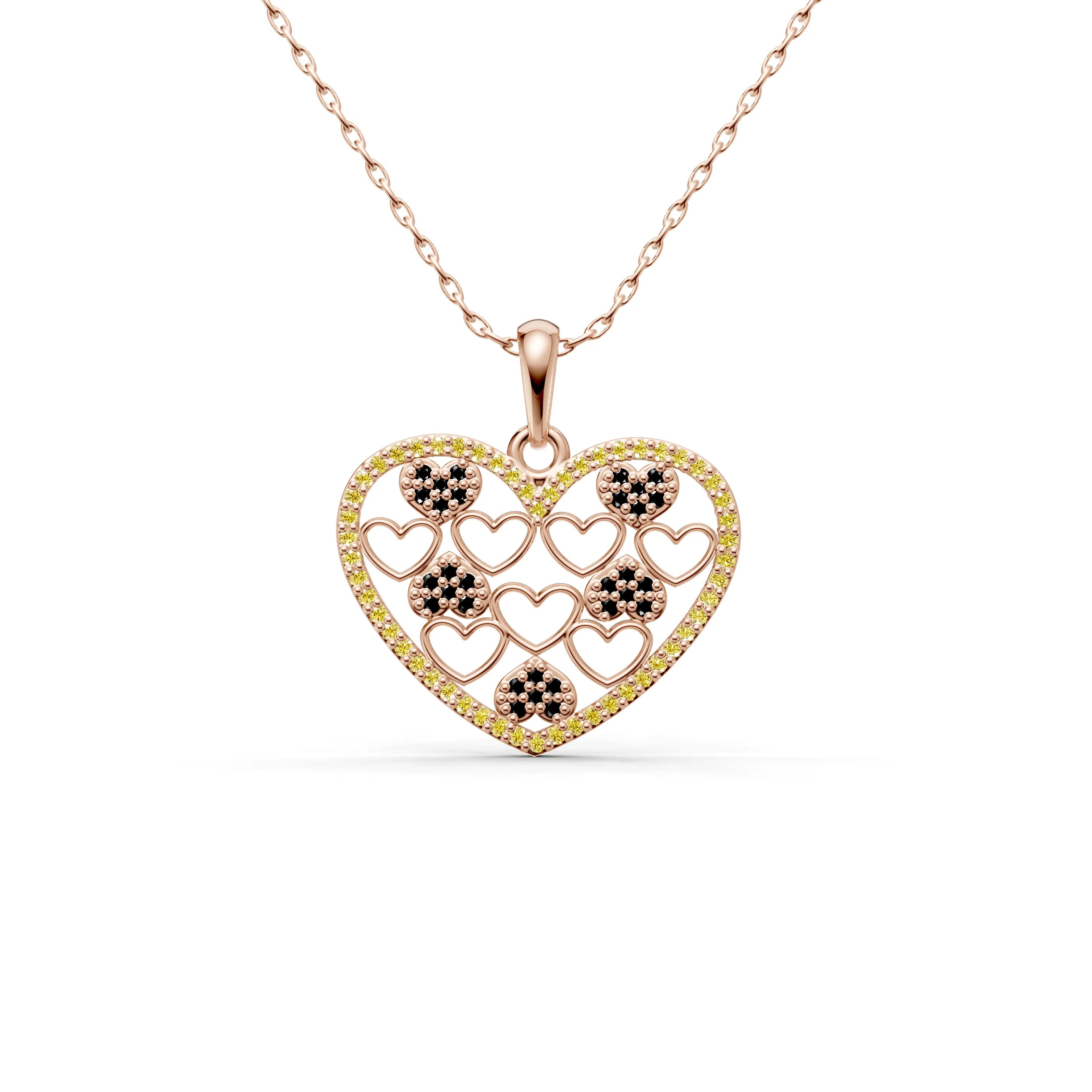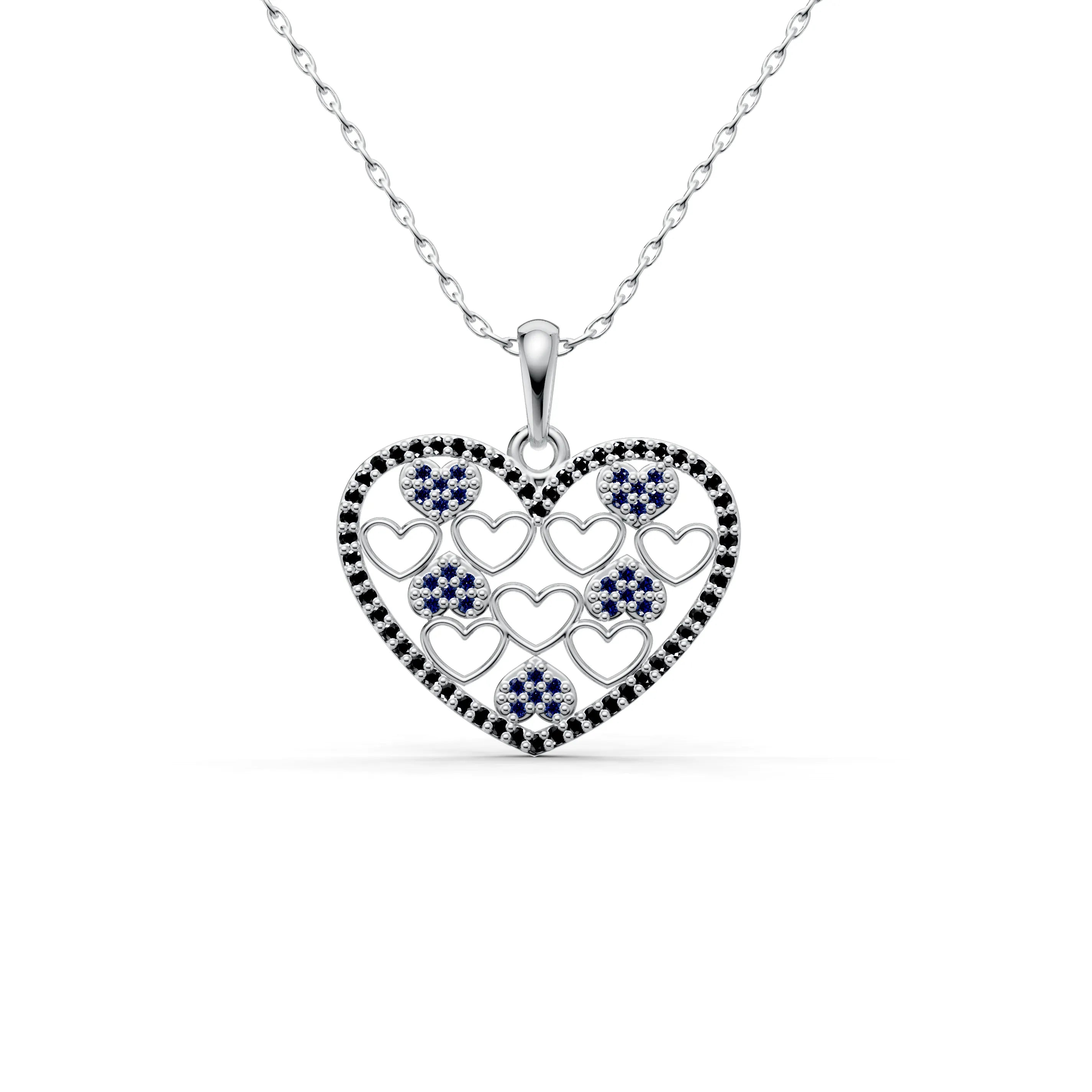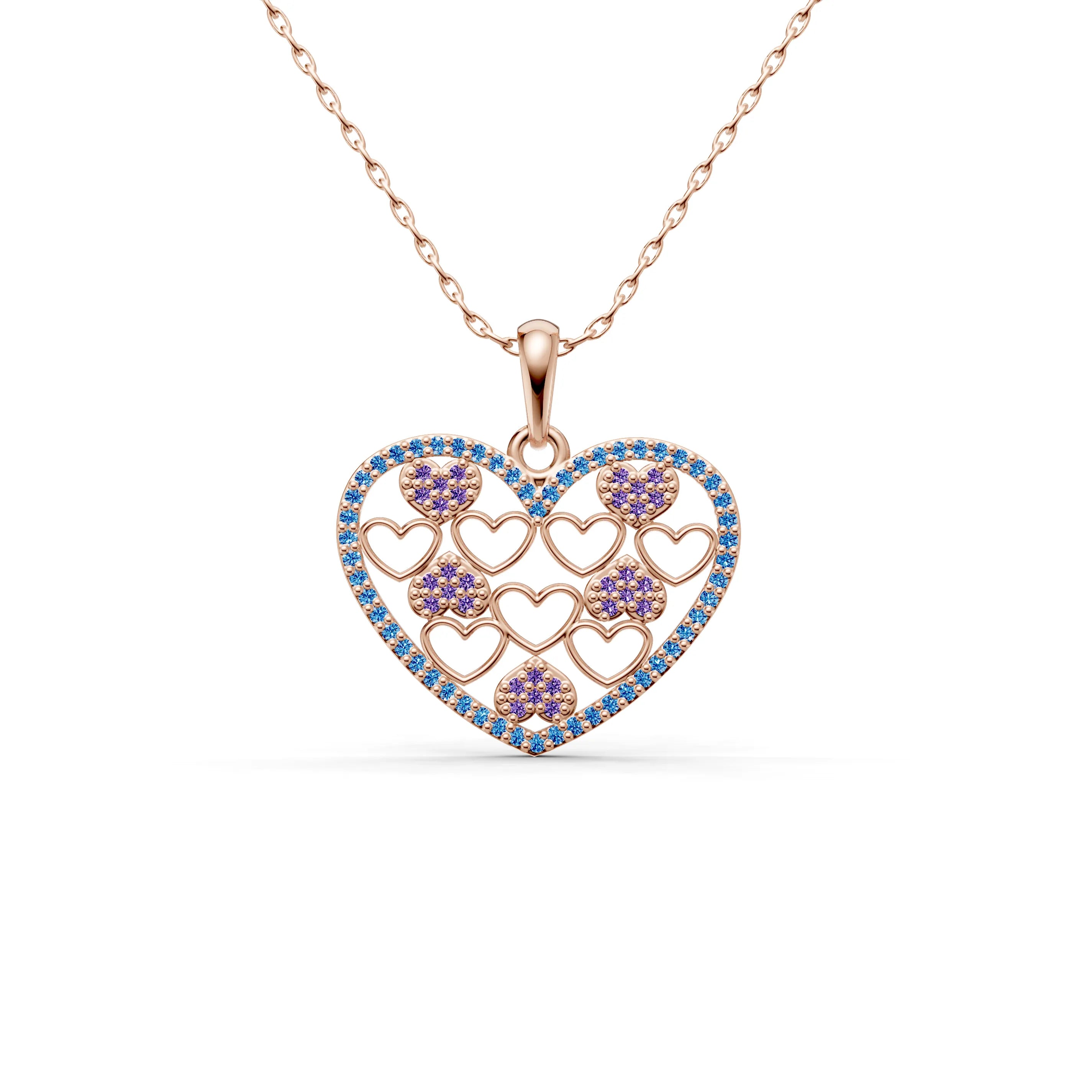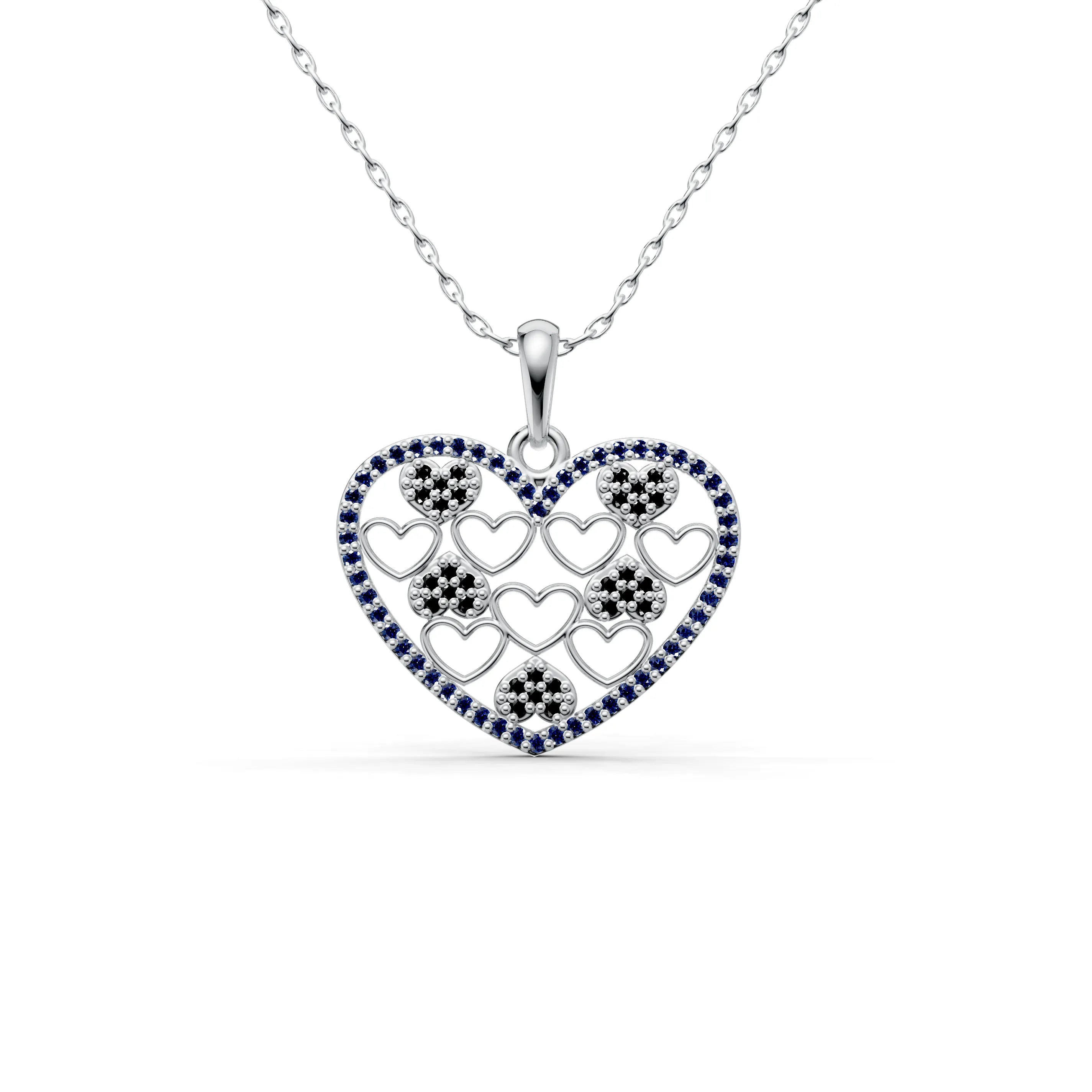 Each smaller heart within the pendant is plated in a rich golden hue, contrasting against the shimmering outline, which adds depth and dimension to the design. Whether it represents romantic love, the love of family, or the bonds of friendship, this necklace is a celebration of cherished relationships.