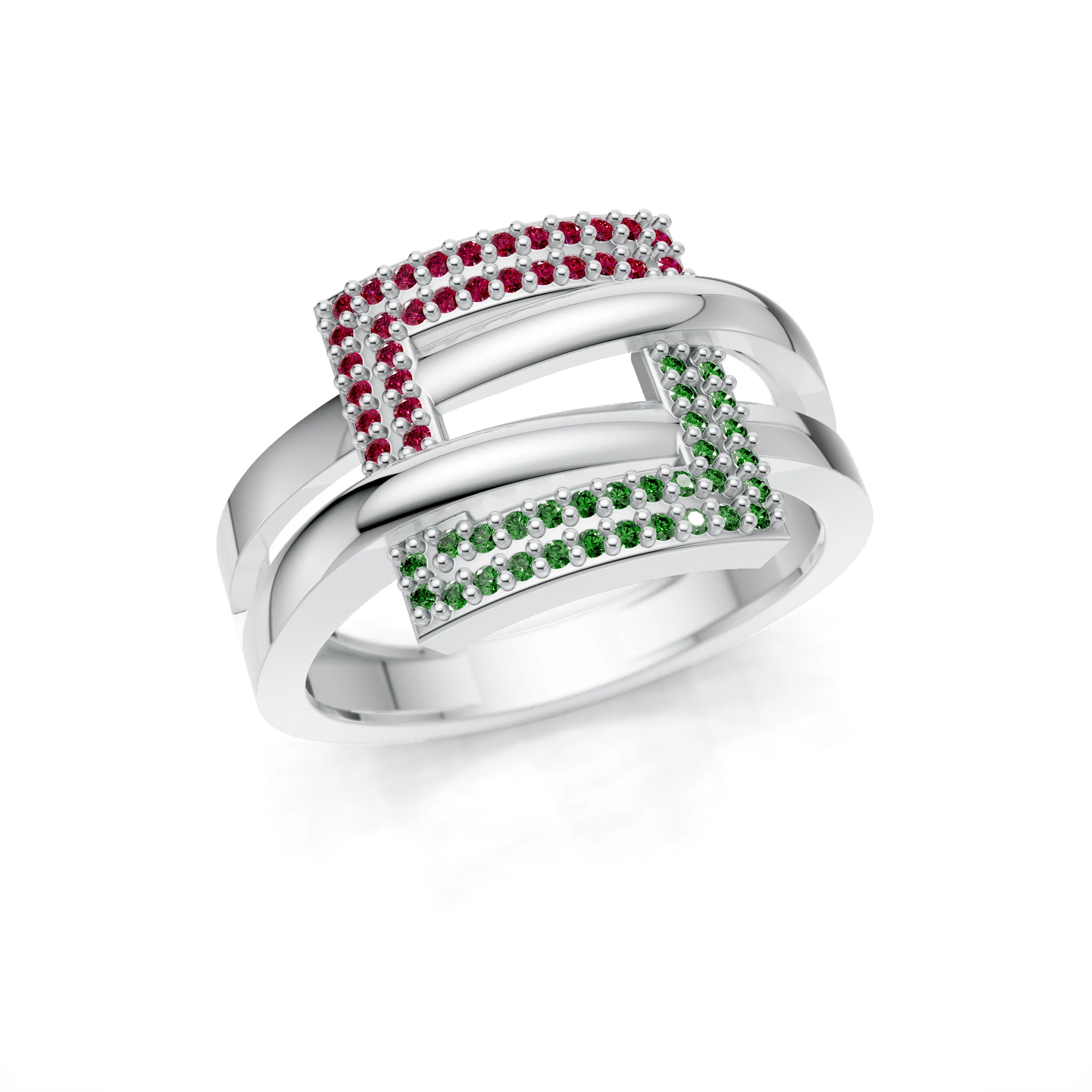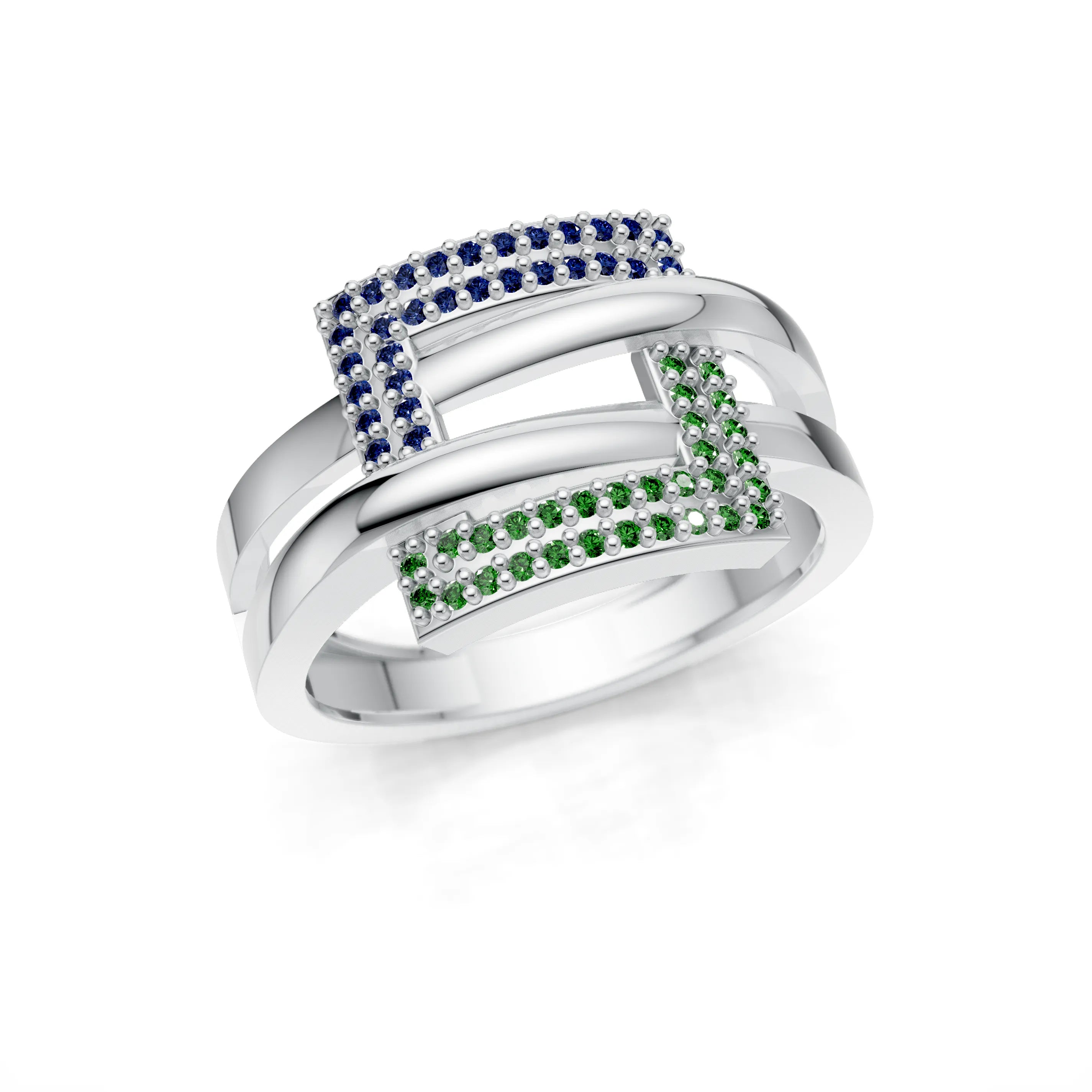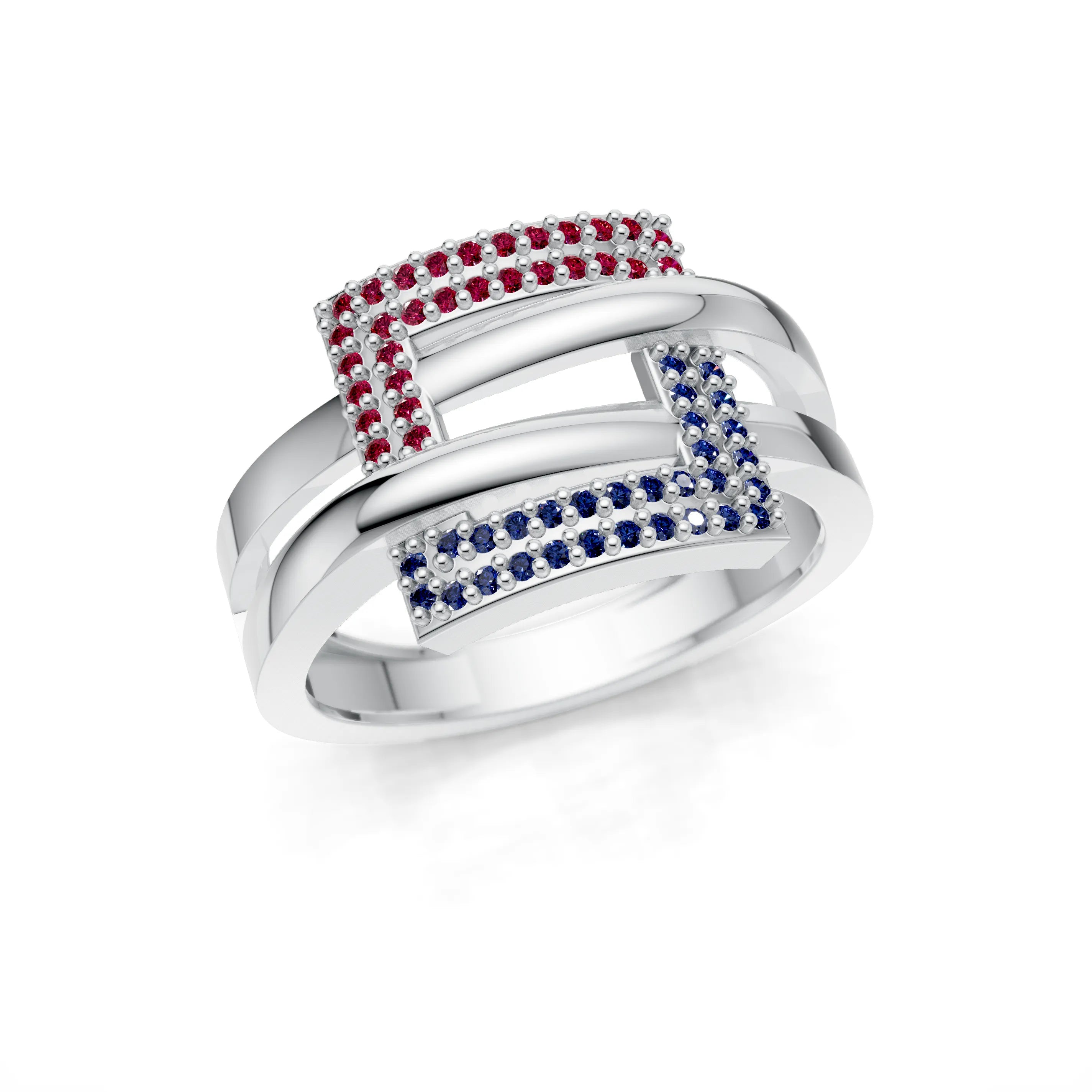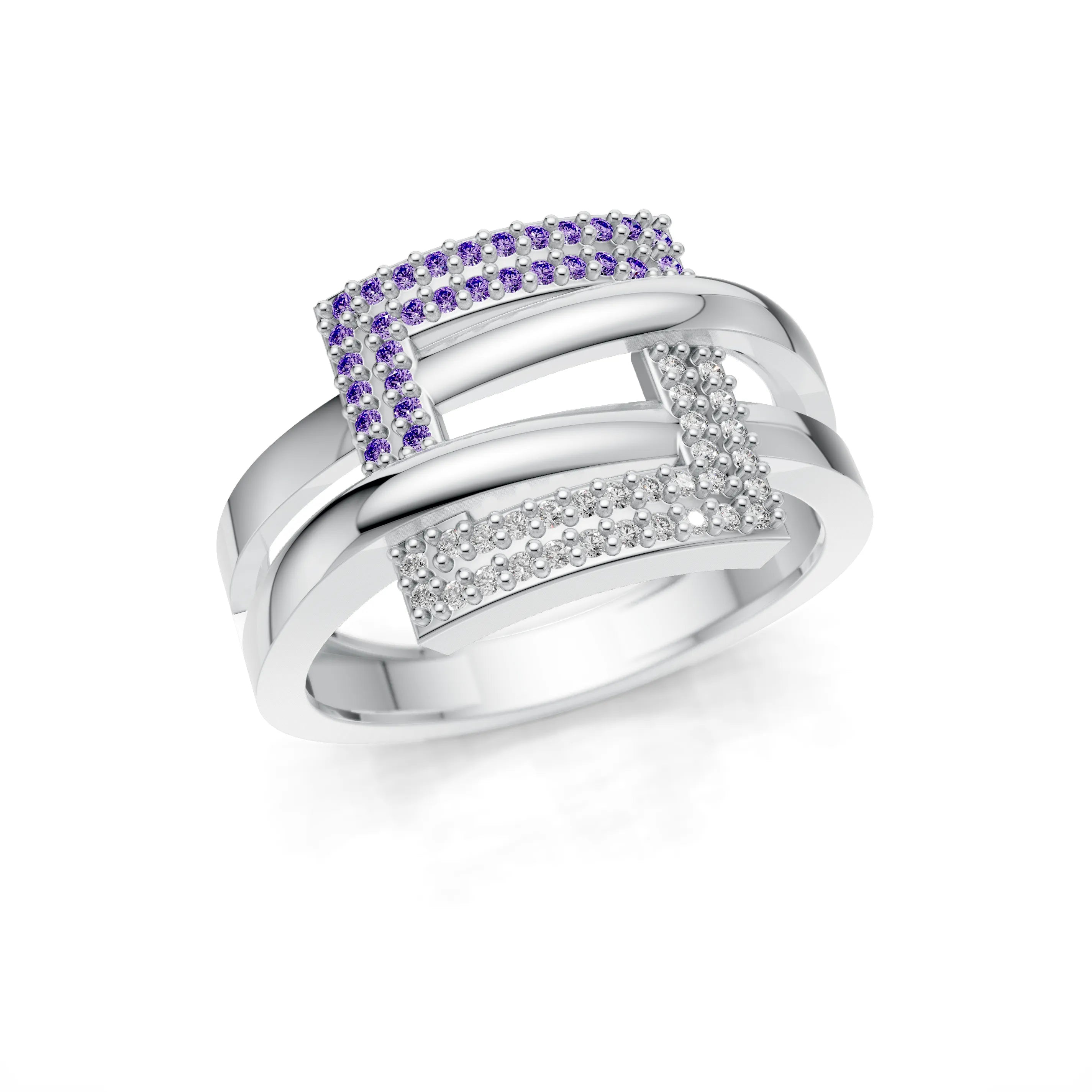 The 'Eternal Glitz Crossover Engagement Ring' is a modern marvel, a striking piece that captures the spirit of contemporary design with its bold, asymmetrical form. This mens ring asserts a strong presence with a geometric arrangement that defies convention, featuring an innovative crossover structure accented with a lavish gem array.