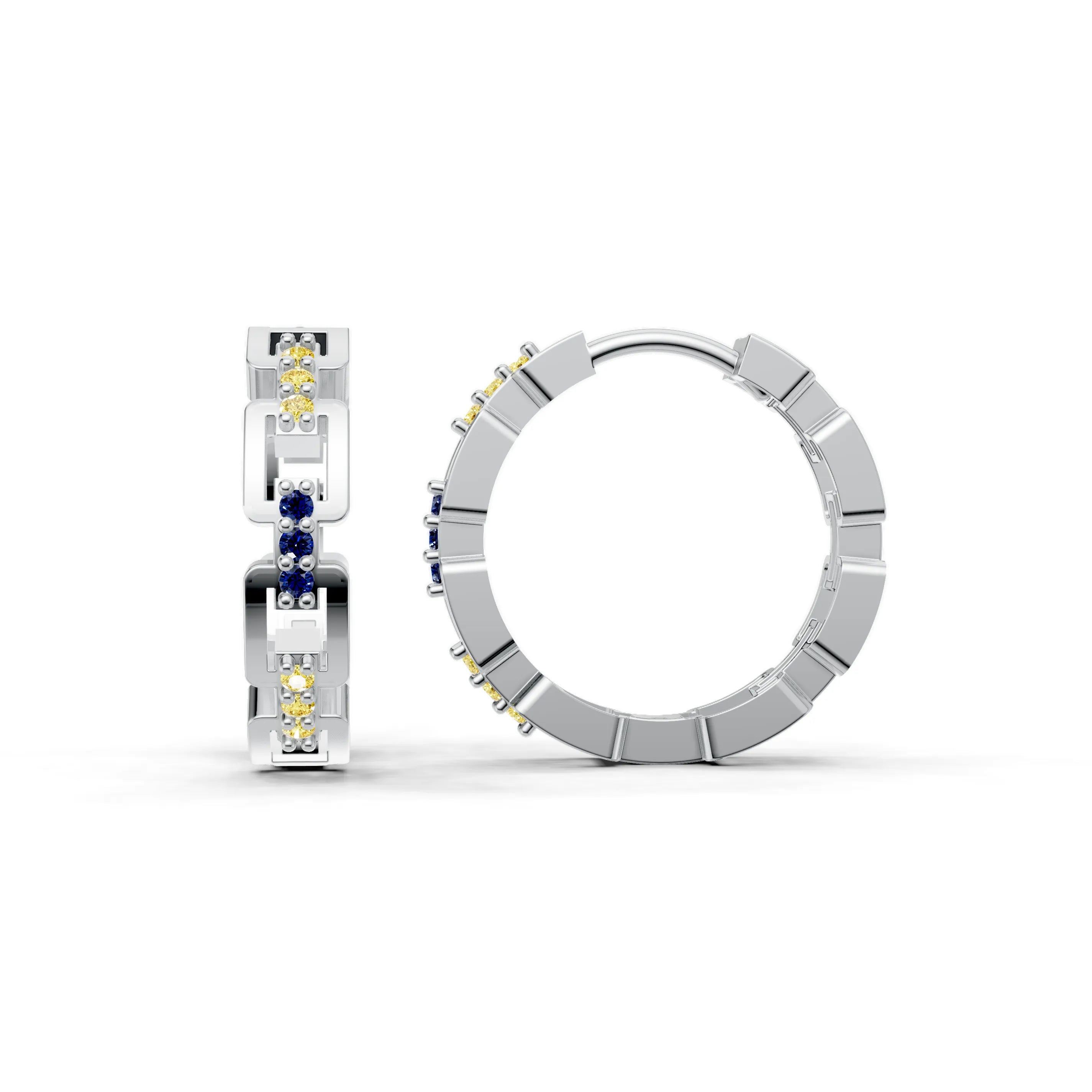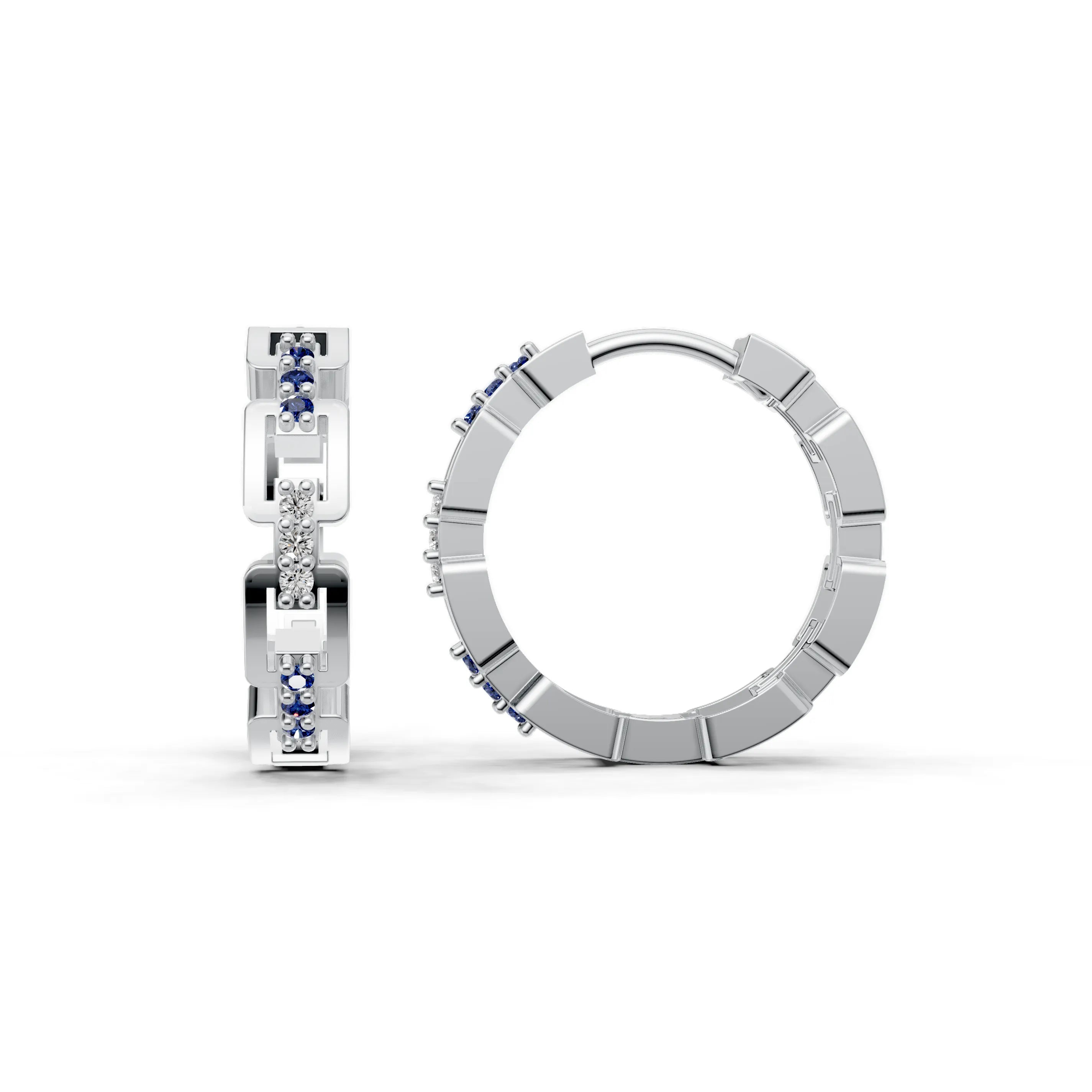 The incorporation of gemstones within the links adds a discreet but effective sparkle that elevates these earrings from simple to luxurious. Their design is versatile, fitting seamlessly into a professional setting or adding a touch of understated glam to an evening outfit.
