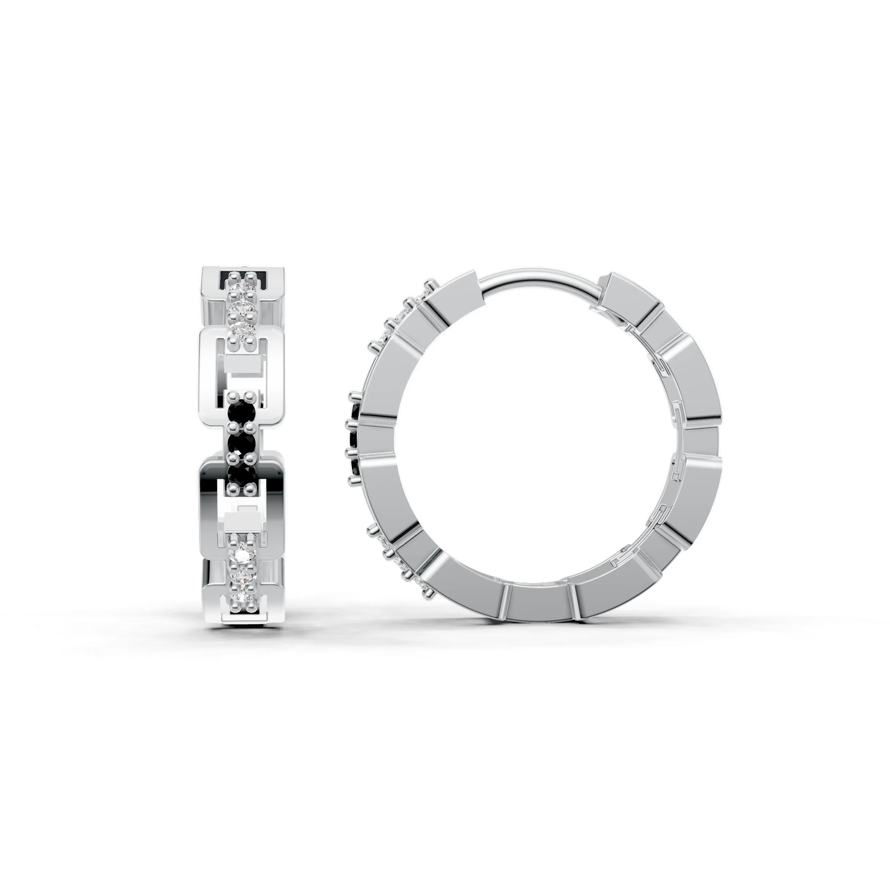 The "Eternal Link Pavé Hoop Earrings" exude a sense of modern sophistication and minimalist elegance. These hoops are a fusion of timeless design and contemporary aesthetic. The geometric pattern, resembling interlocking links, is both symbolic and stylish, suggesting a connection that is both endless and strong.