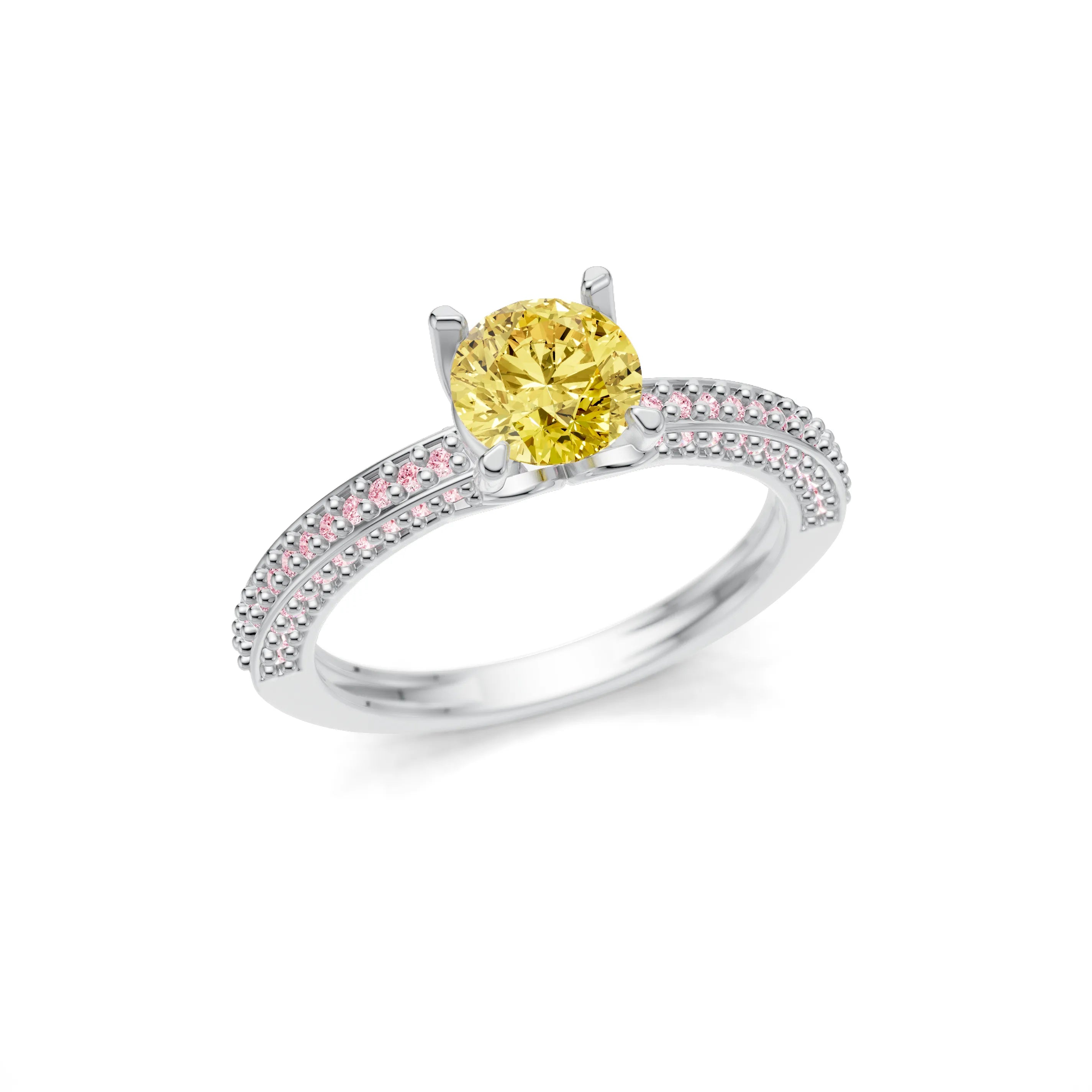 The "Evermore Elegance Ring" captures the essence of a modern romance with its stunning solitaire pave accent. It reimagines the classic engagement ring, offering a timeless piece of bridal jewelry without a traditional diamond center. This ring could symbolise a heartfelt proposal, with its golden band and single prominent gemstone reflecting a luxurious statement of love.