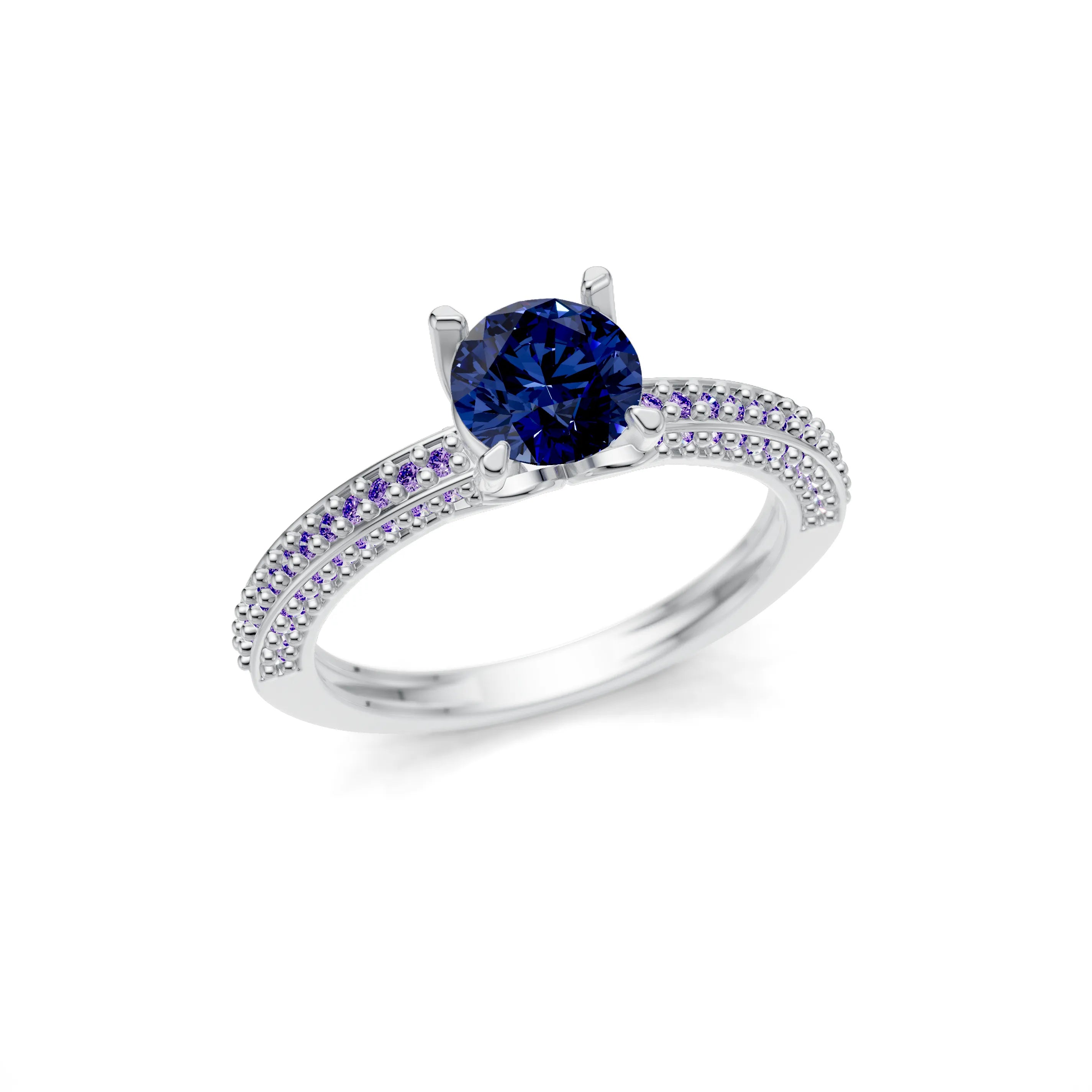 The detailed pave setting along the band adds a layer of sparkle, highlighting the central stone and elevating the overall elegance of the ring. This piece could be the perfect way to celebrate an anniversary or any romantic milestone, representing an eternal bond with a touch of bespoke non-diamond elegance.