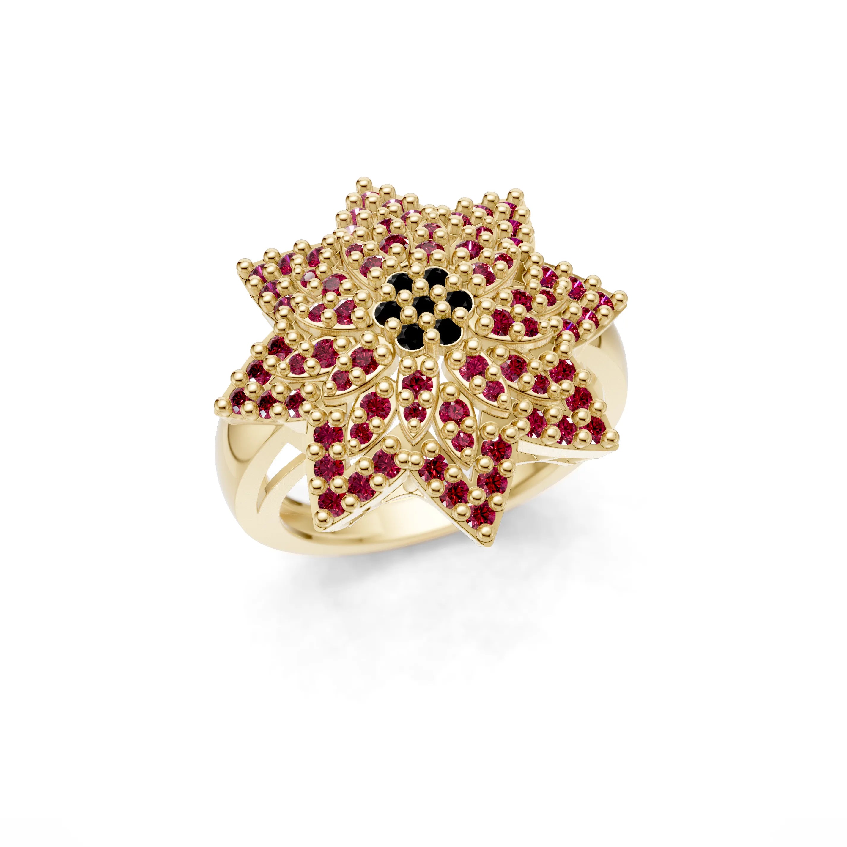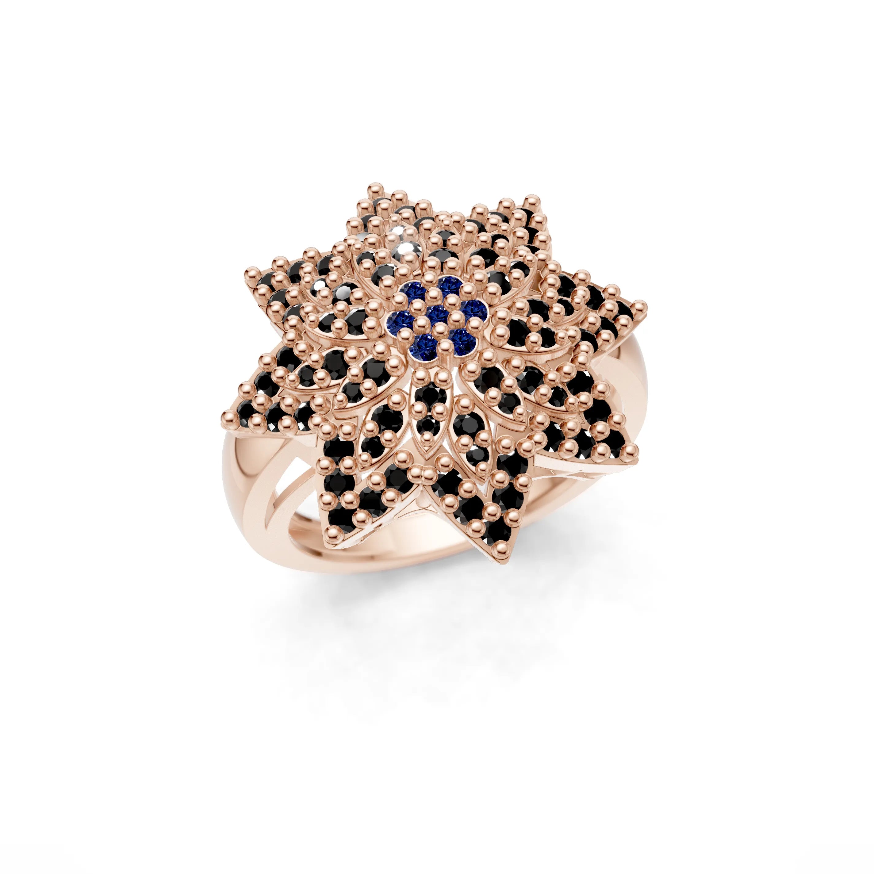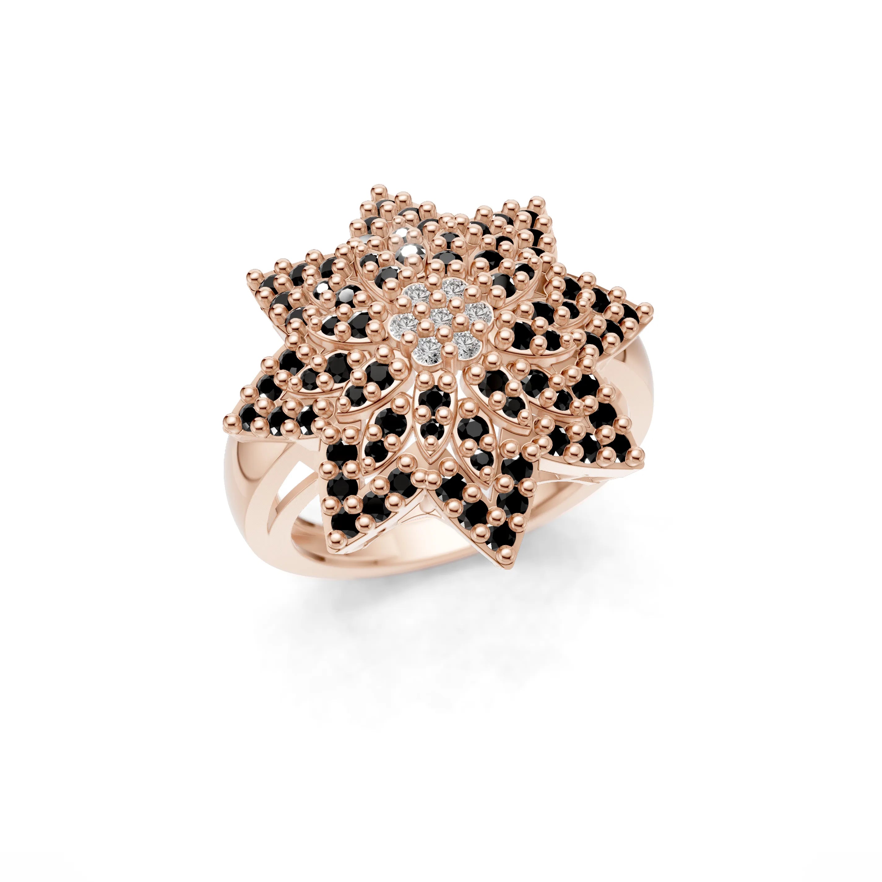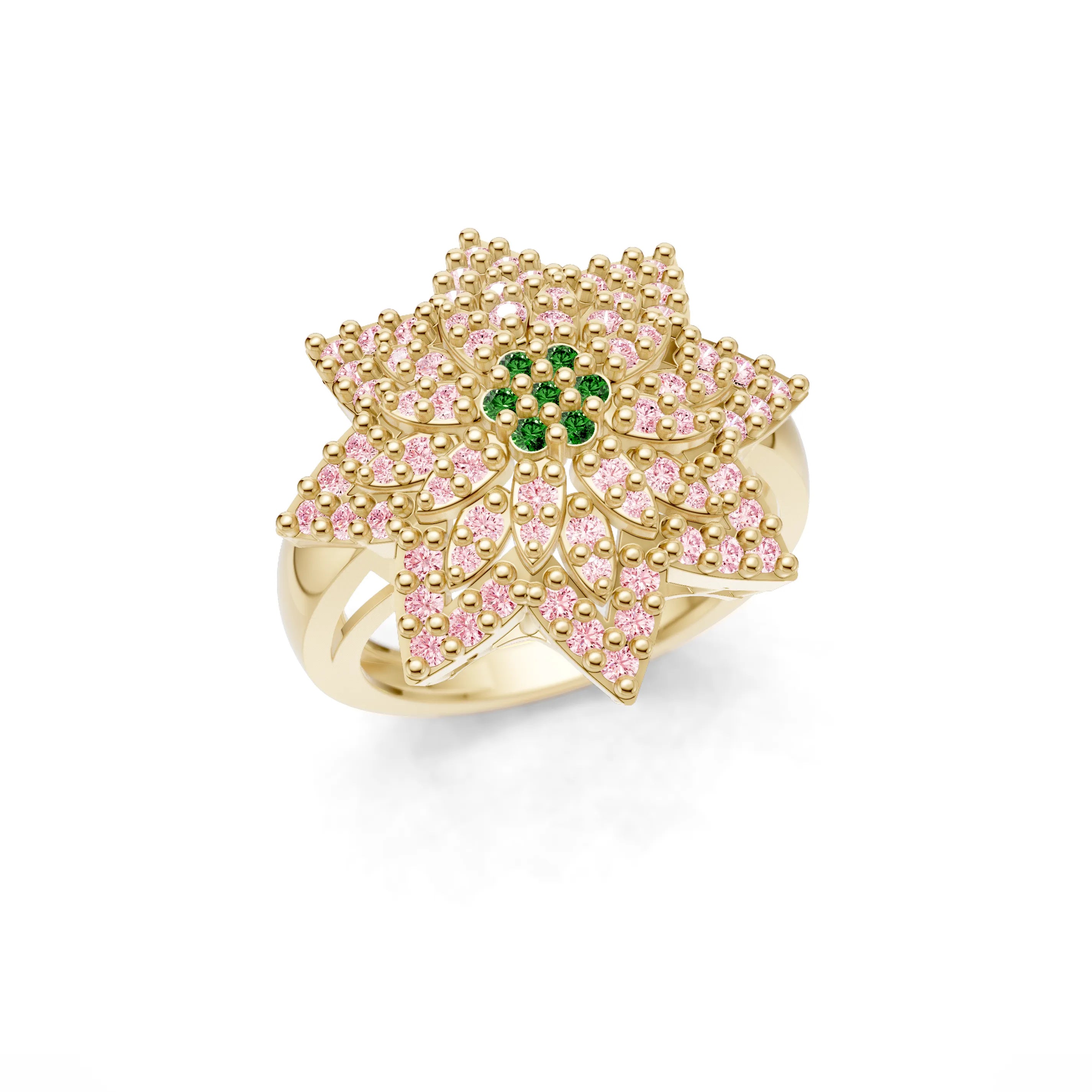 It's an exemplary special event accessory, ideal for wearing to a gala or any grand celebration. The floral motif ring resonates with the beauty of nature, transformed into an exquisite piece of design jewelry that's both fashionable and timeless.