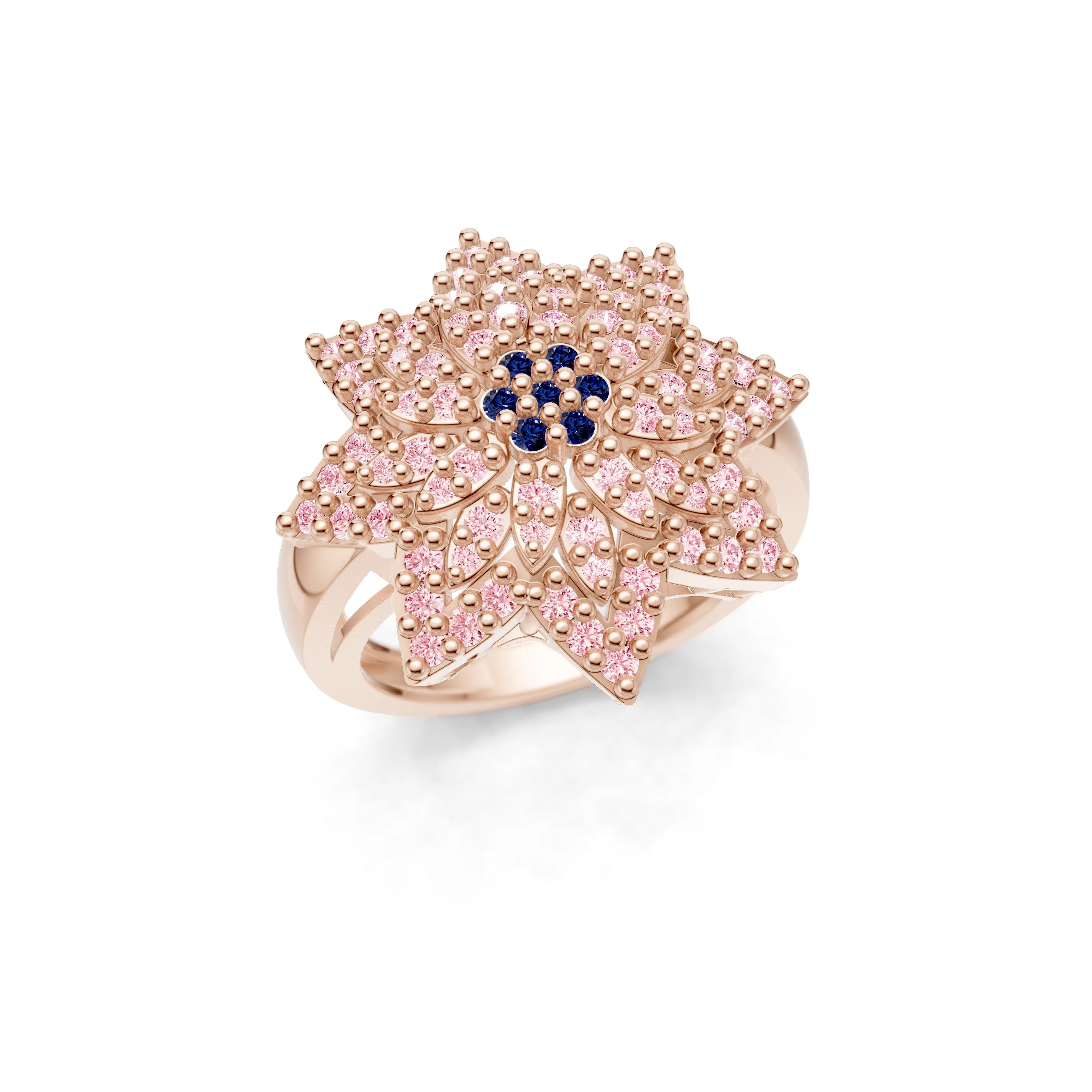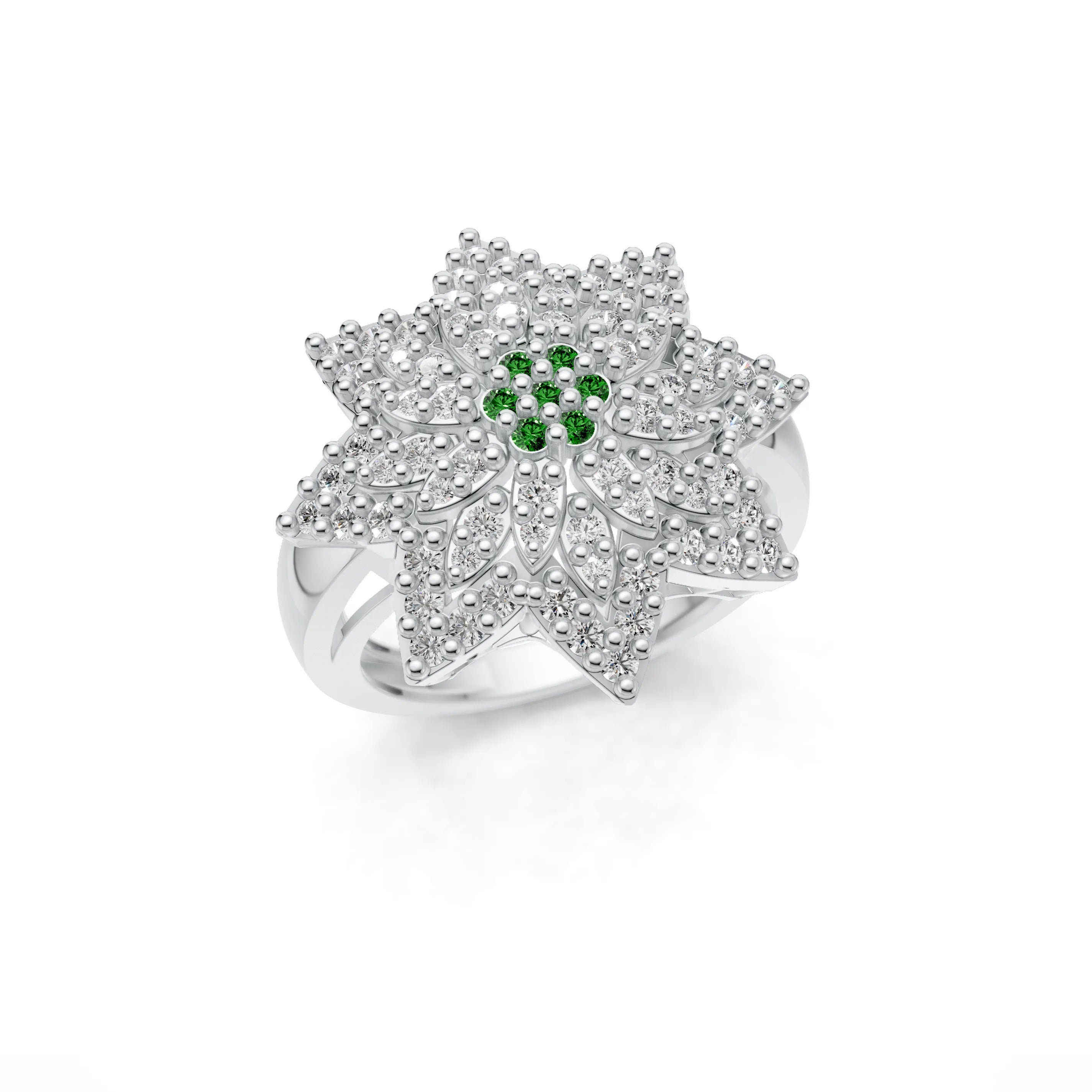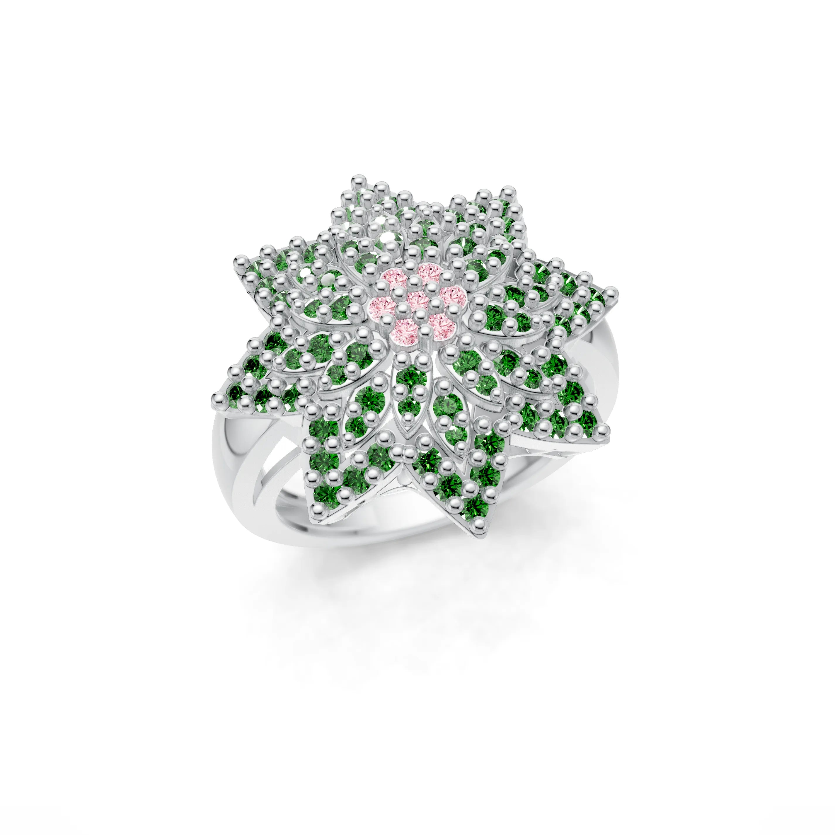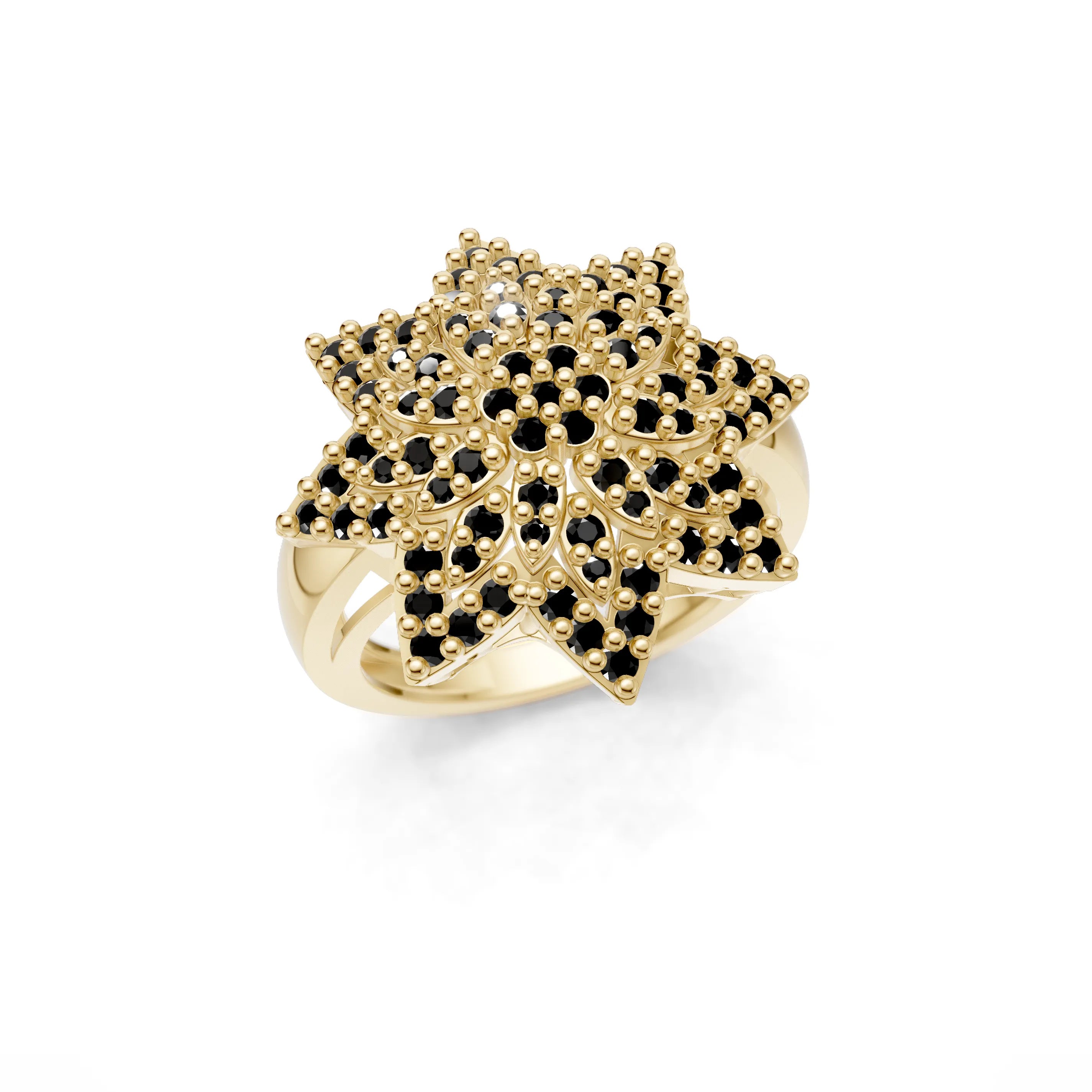 It's an exemplary special event accessory, ideal for wearing to a gala or any grand celebration. The floral motif ring resonates with the beauty of nature, transformed into an exquisite piece of design jewelry that's both fashionable and timeless.