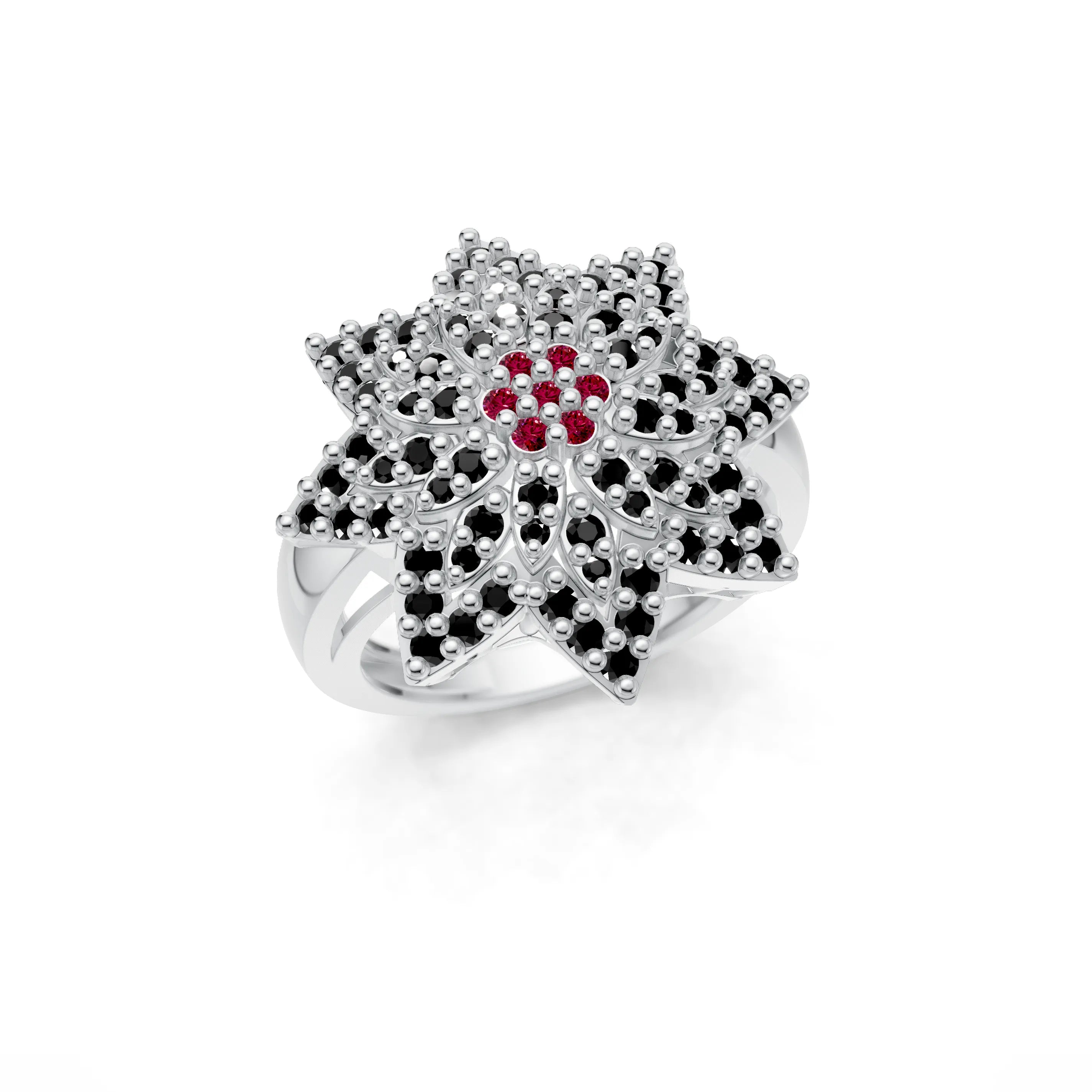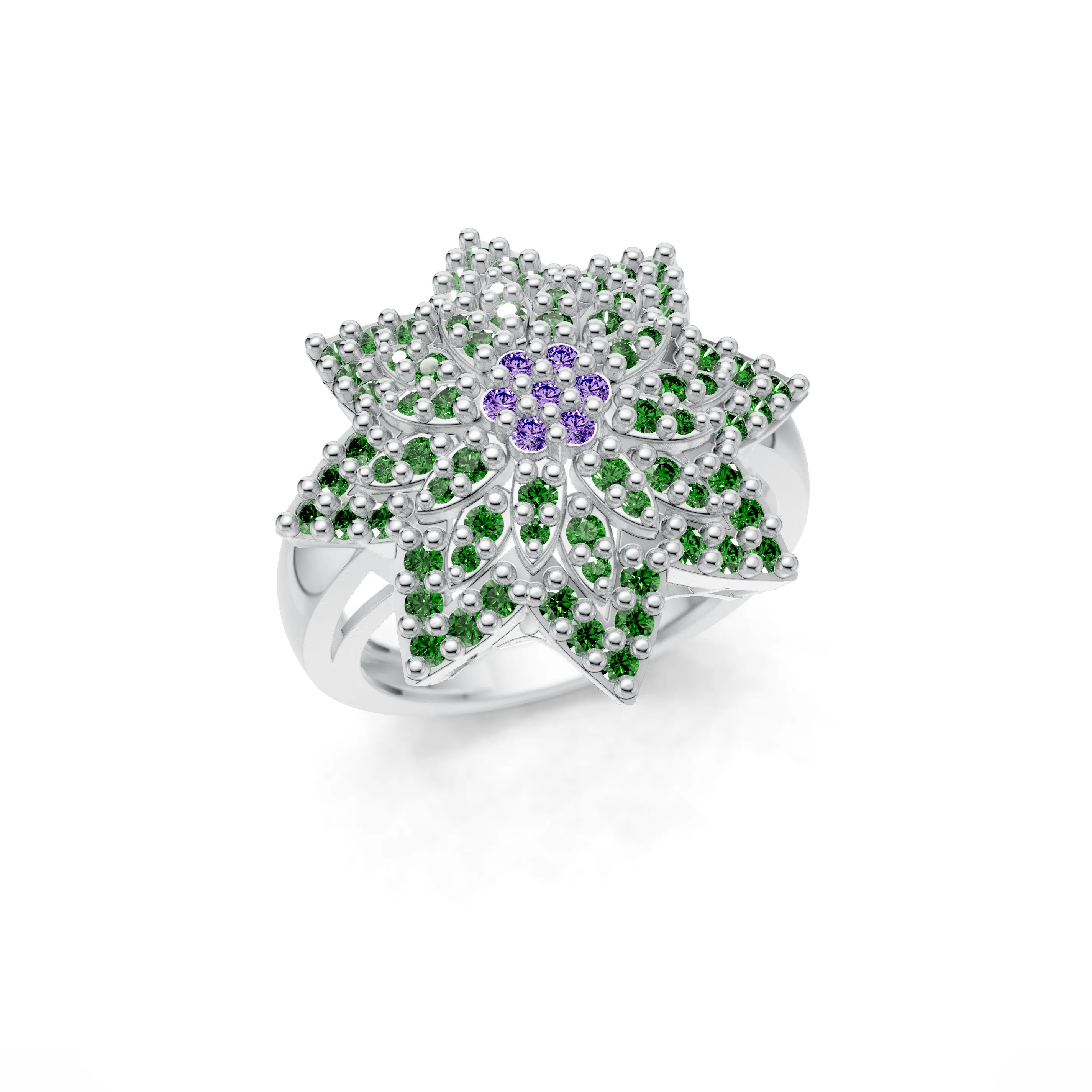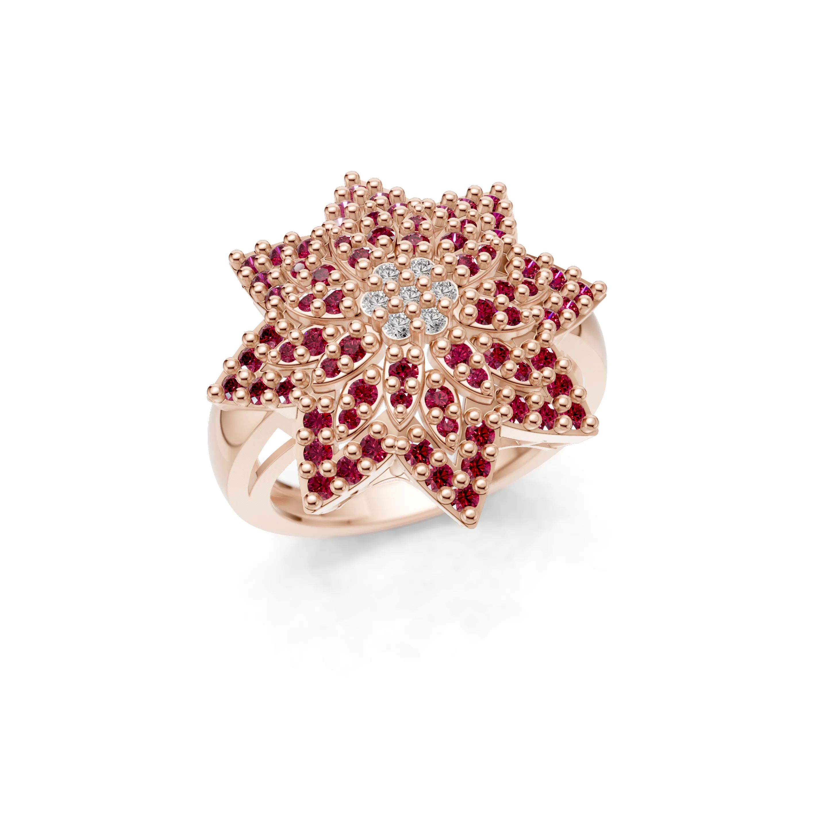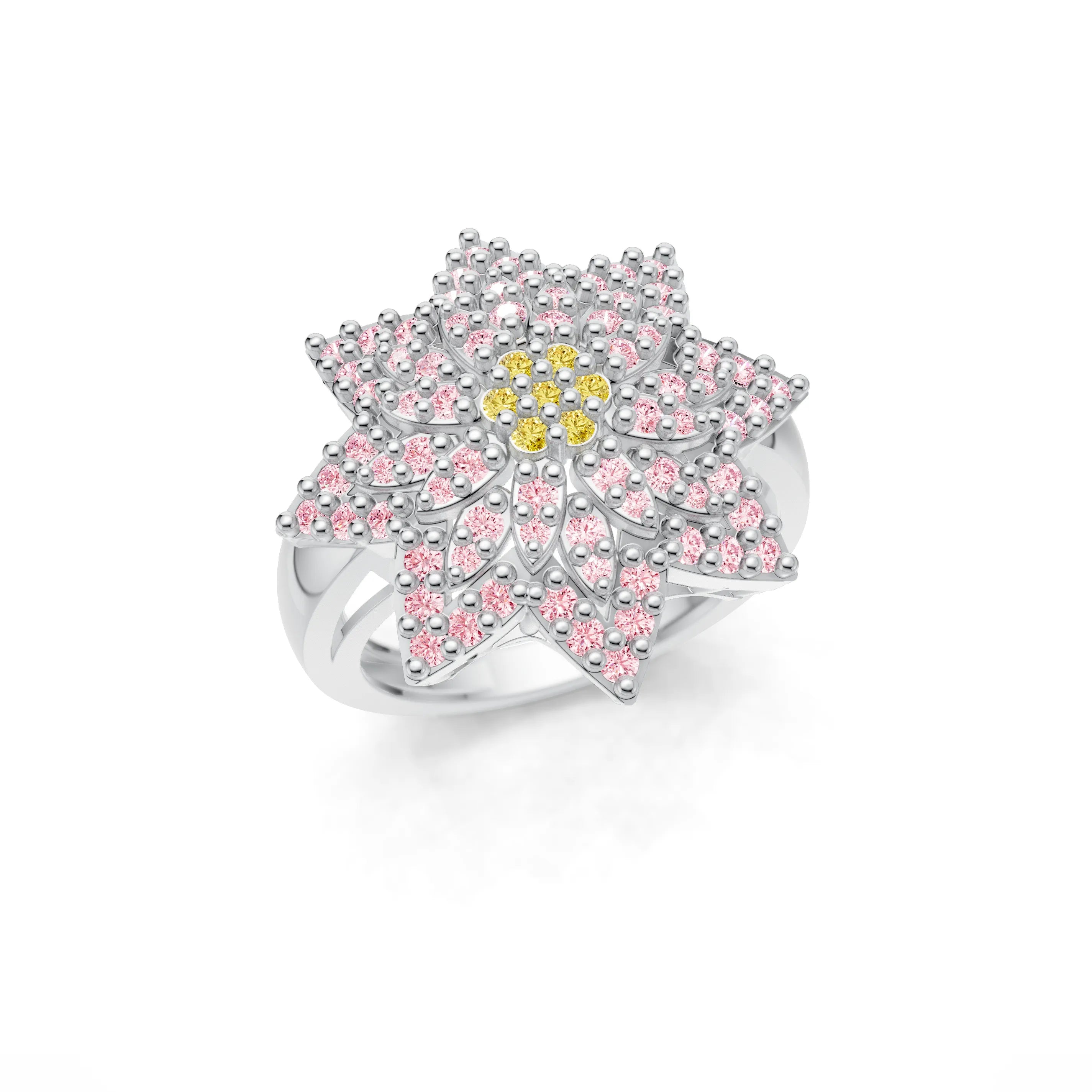 It's an exemplary special event accessory, ideal for wearing to a gala or any grand celebration. The floral motif ring resonates with the beauty of nature, transformed into an exquisite piece of design jewelry that's both fashionable and timeless.