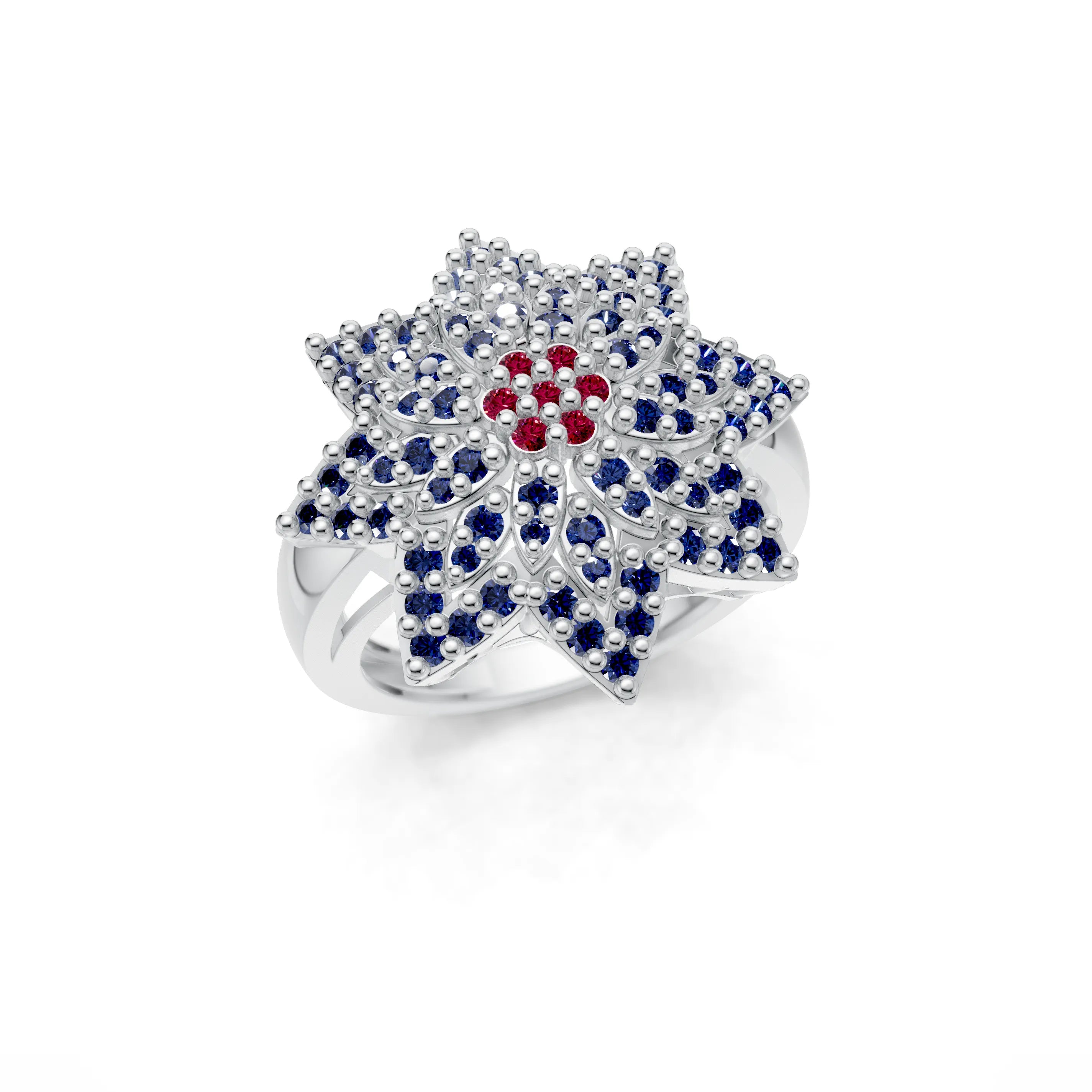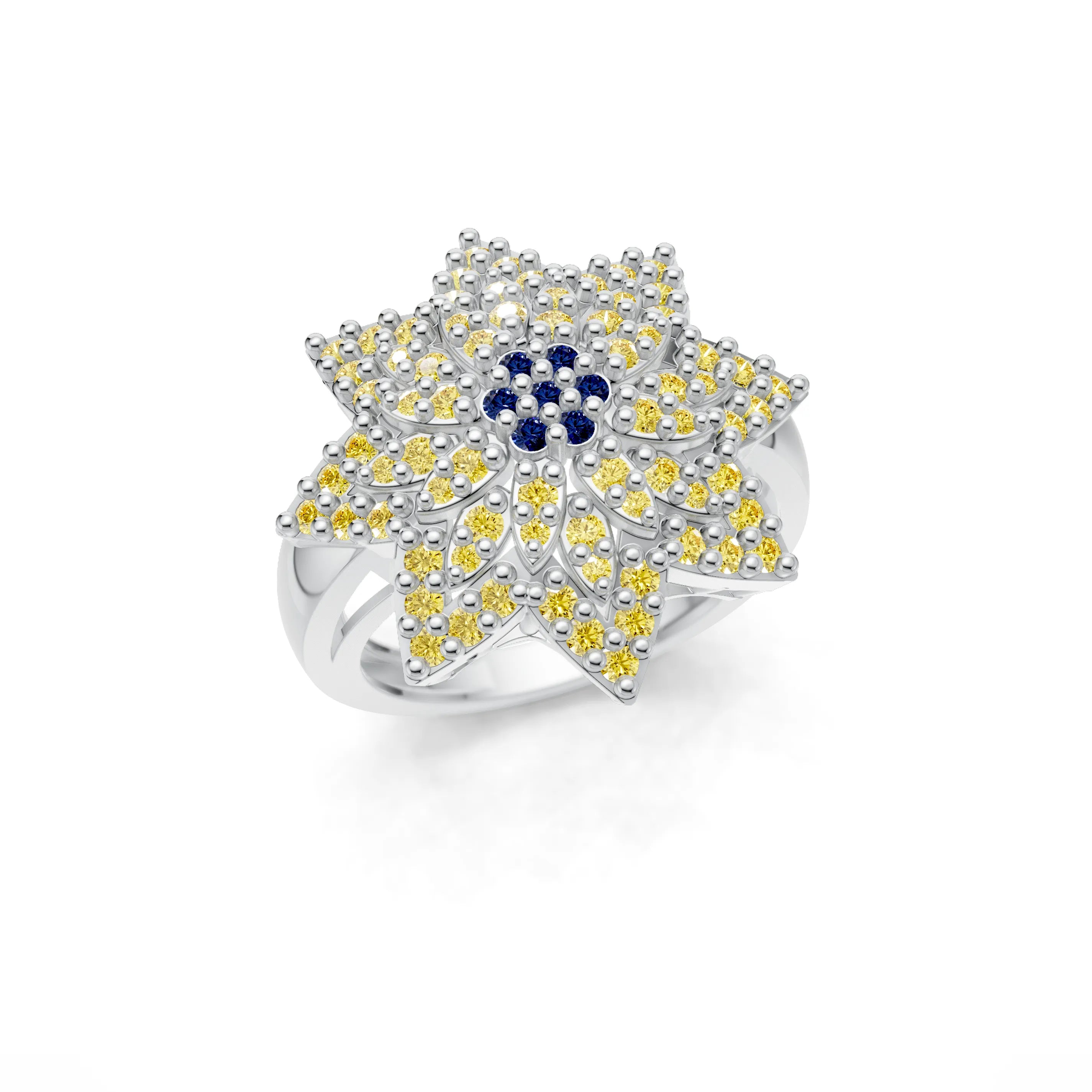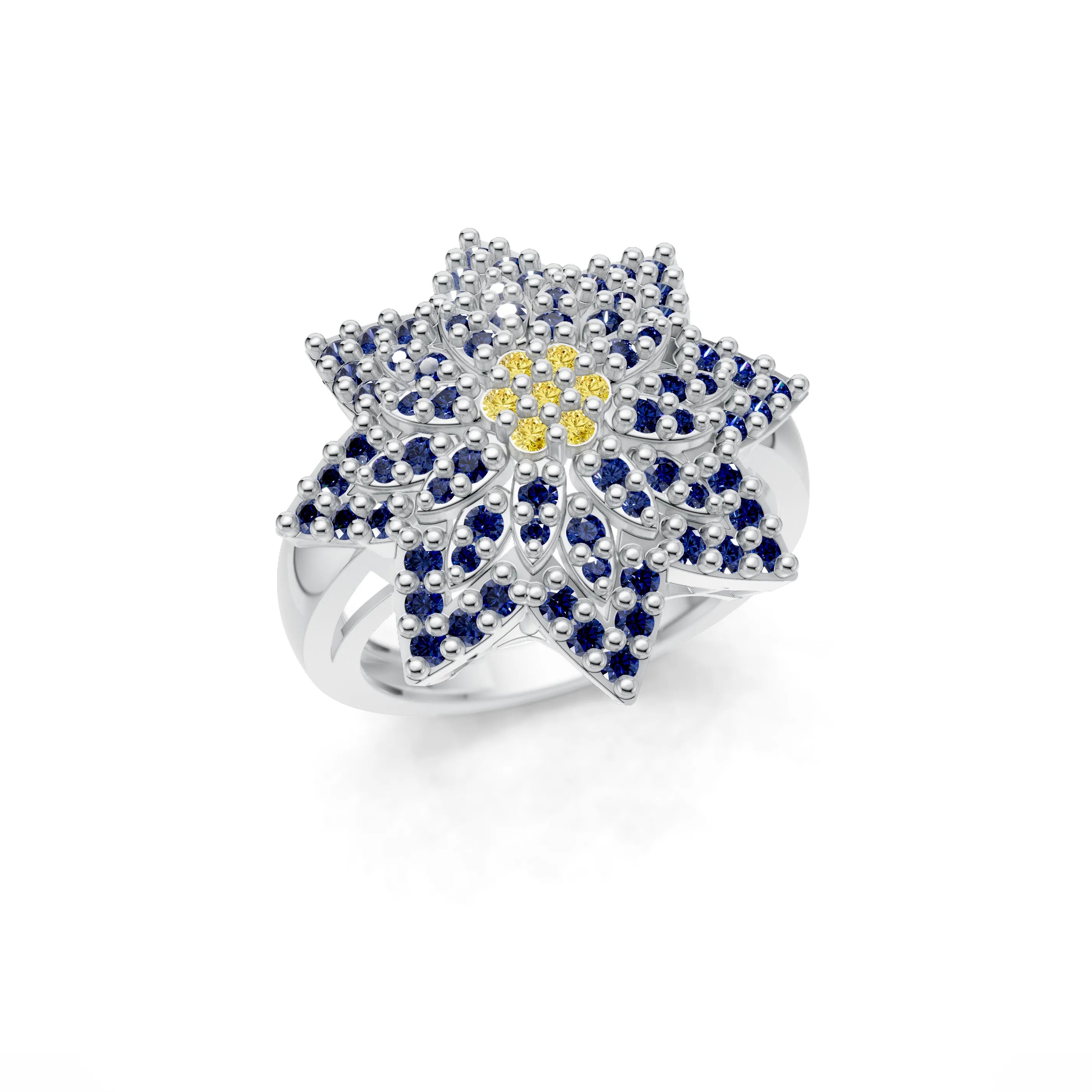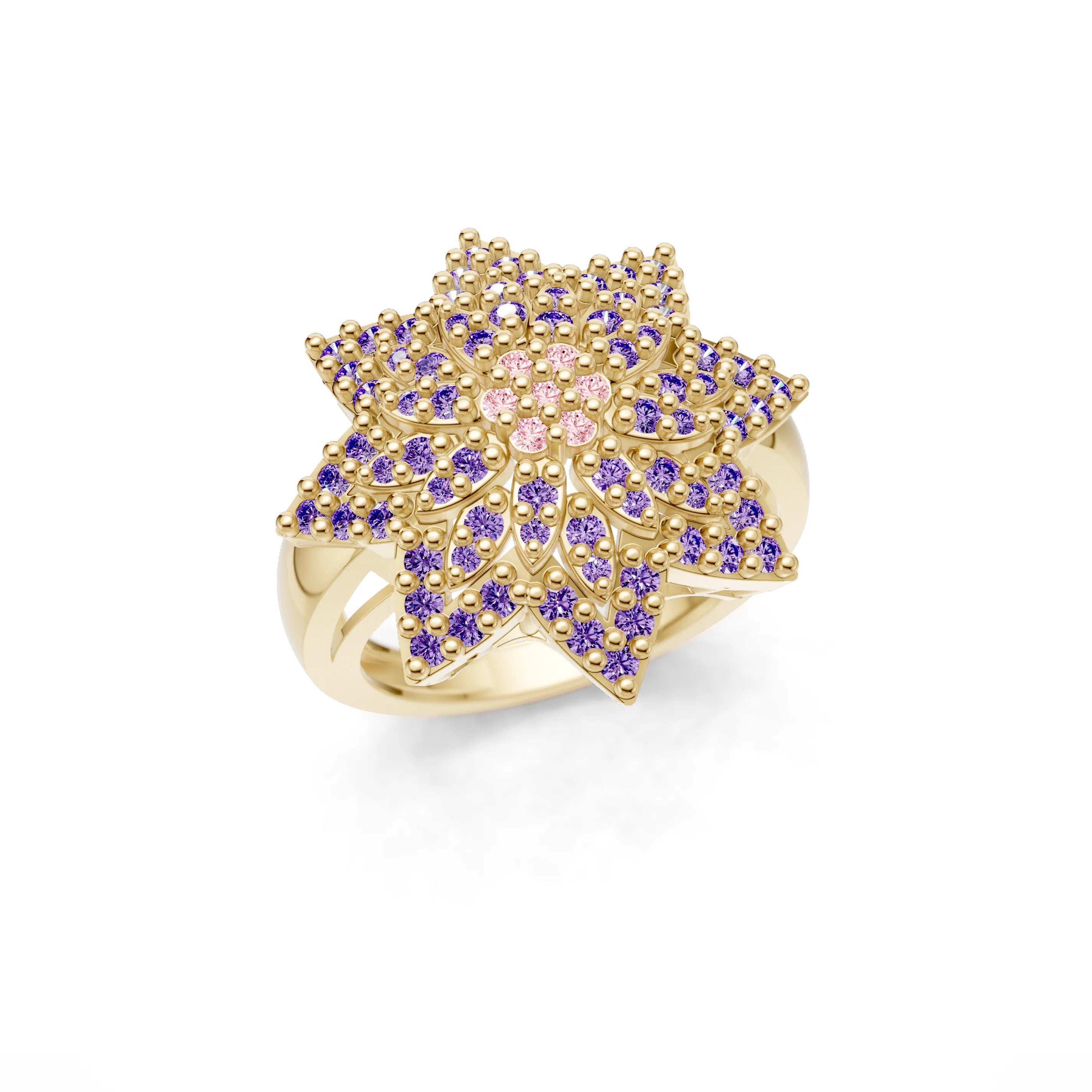 It's an exemplary special event accessory, ideal for wearing to a gala or any grand celebration. The floral motif ring resonates with the beauty of nature, transformed into an exquisite piece of design jewelry that's both fashionable and timeless.