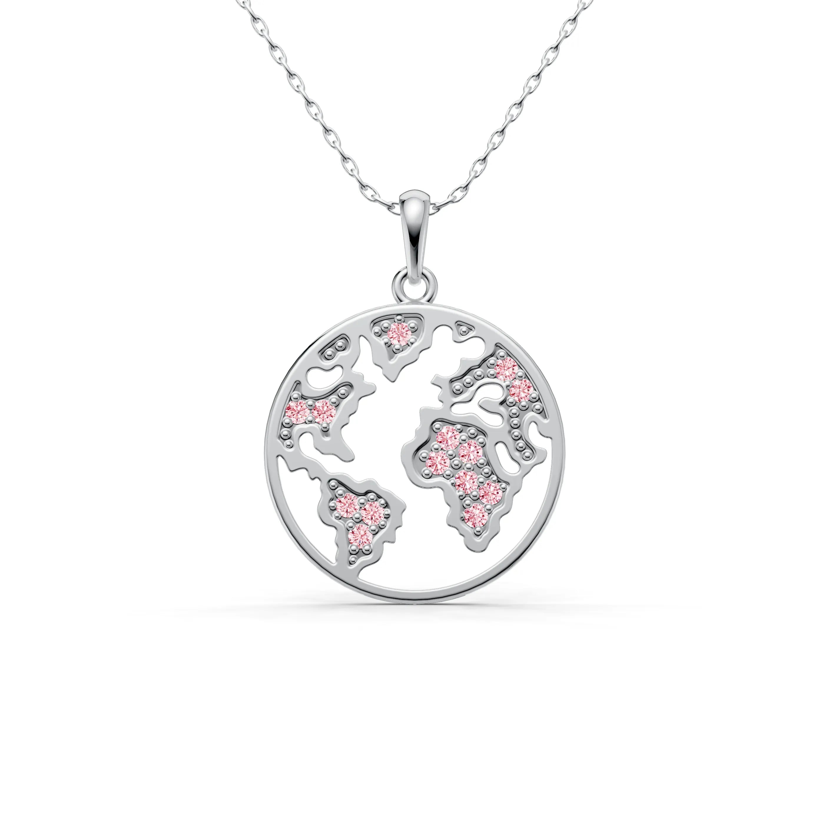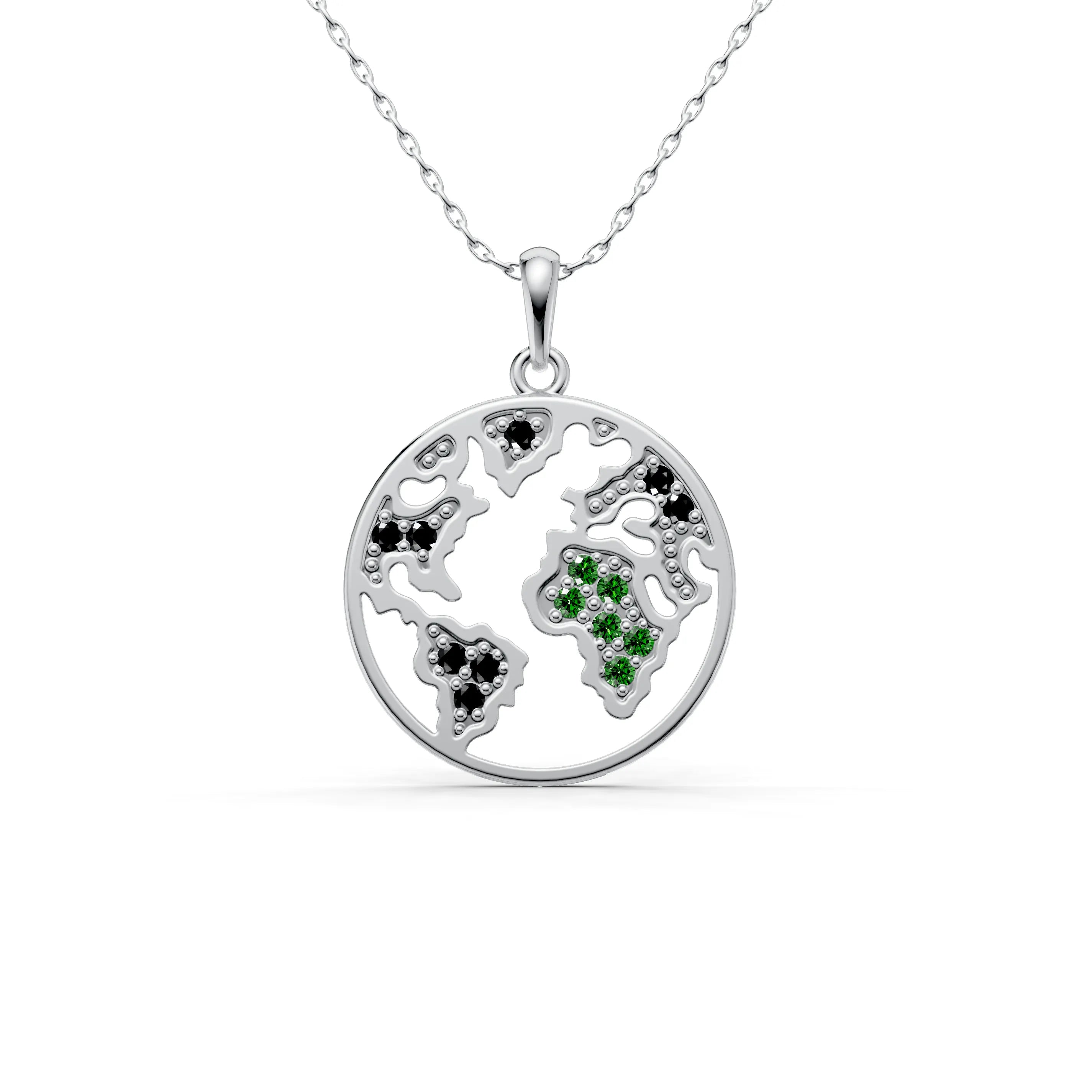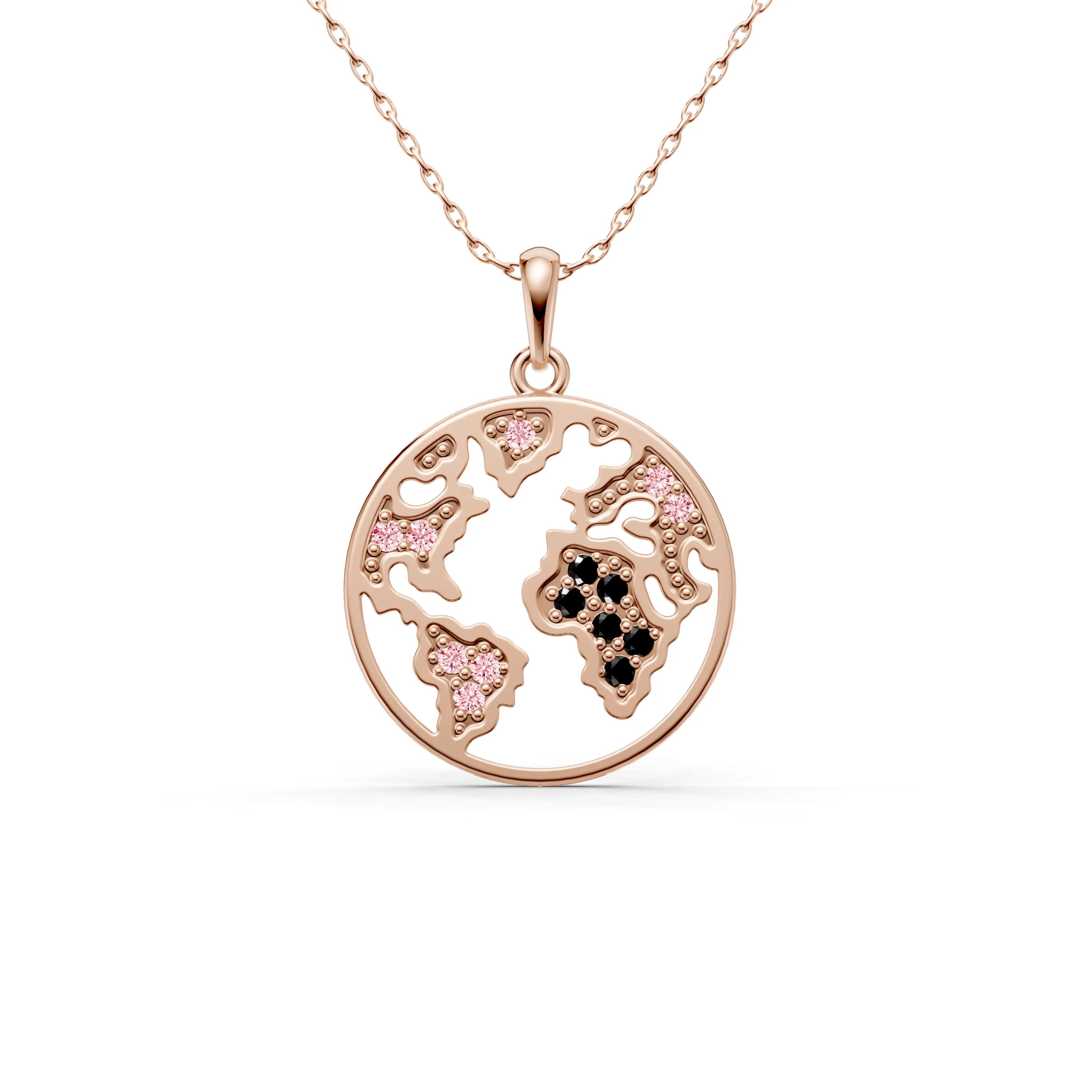 This pendant is a cosmopolitan treasure, perfect for the global traveler or any fashion-forward individual with an appreciation for global culture and unity. The shimmering stones add an element of luxury to the design, making it a sophisticated statement piece that can elevate any look, whether it's for business, casual, or formal wear.