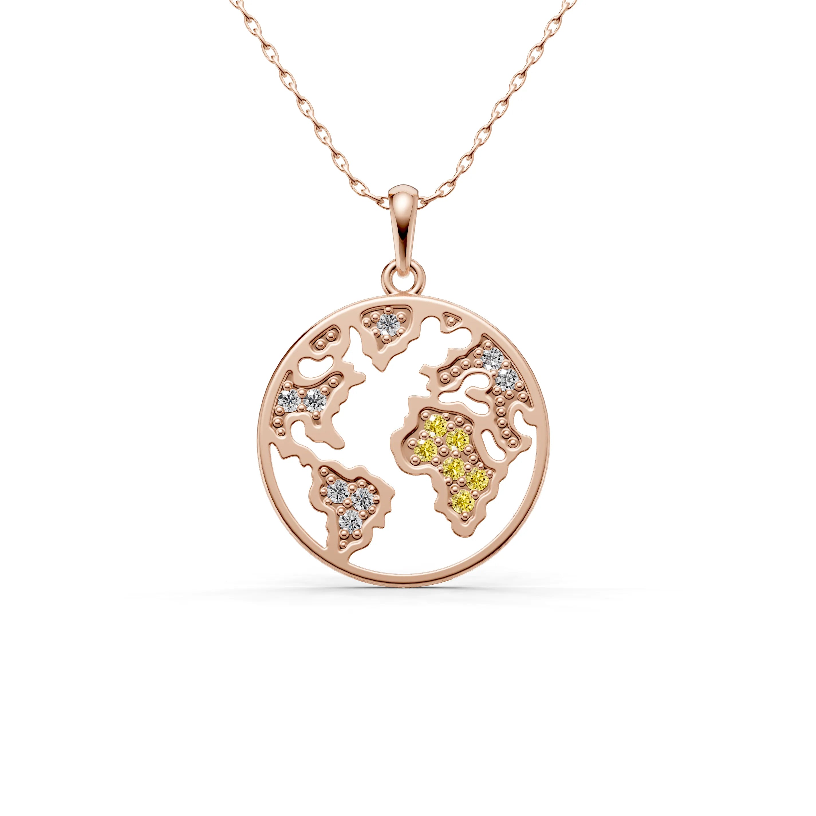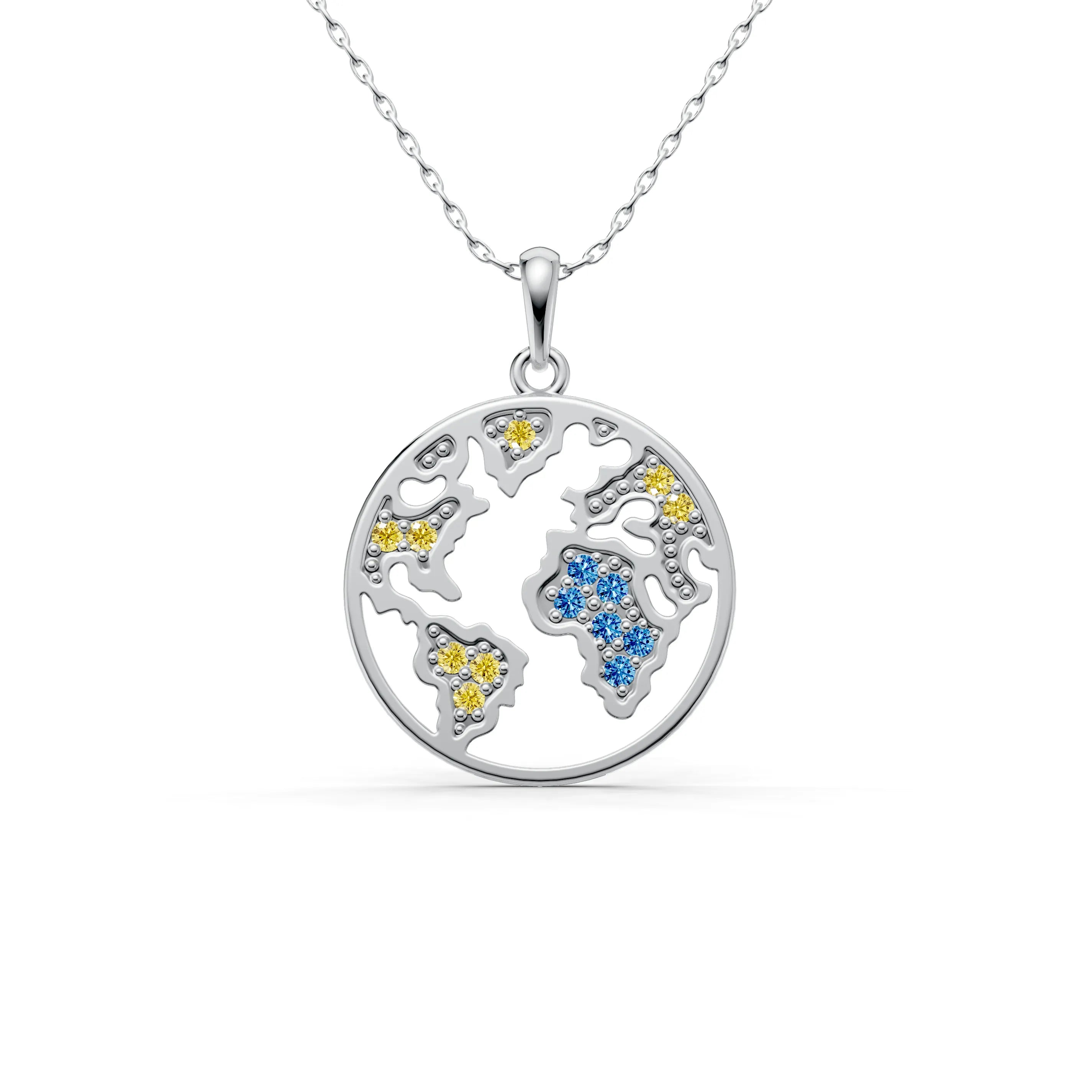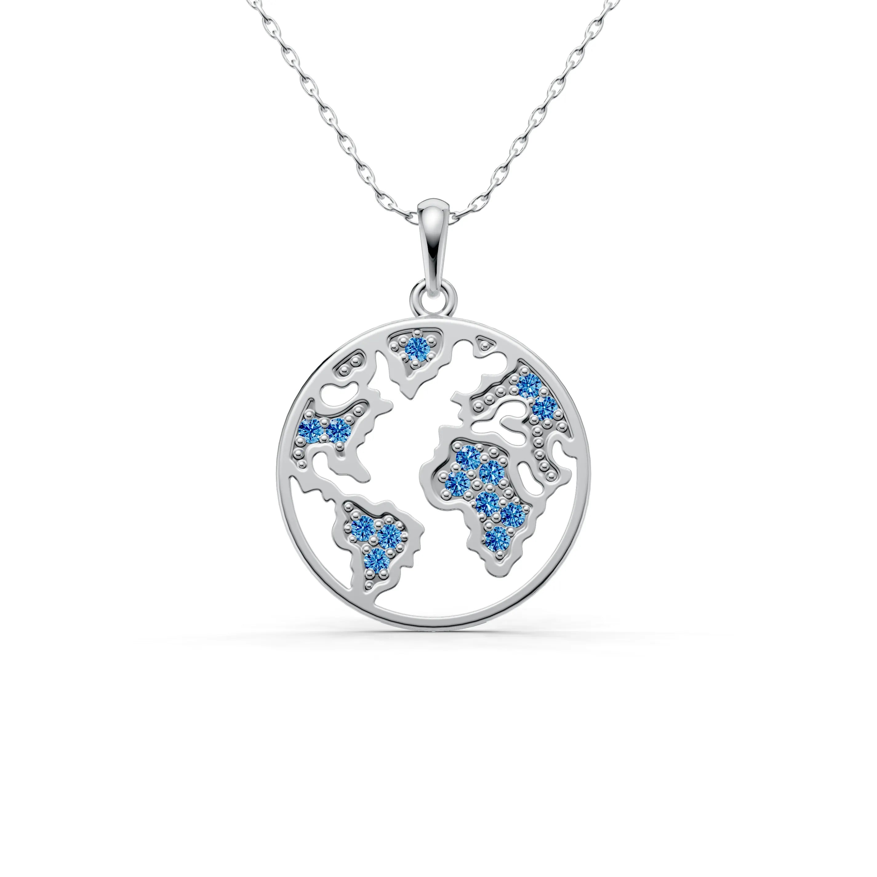 This pendant is a cosmopolitan treasure, perfect for the global traveler or any fashion-forward individual with an appreciation for global culture and unity. The shimmering stones add an element of luxury to the design, making it a sophisticated statement piece that can elevate any look, whether it's for business, casual, or formal wear.
