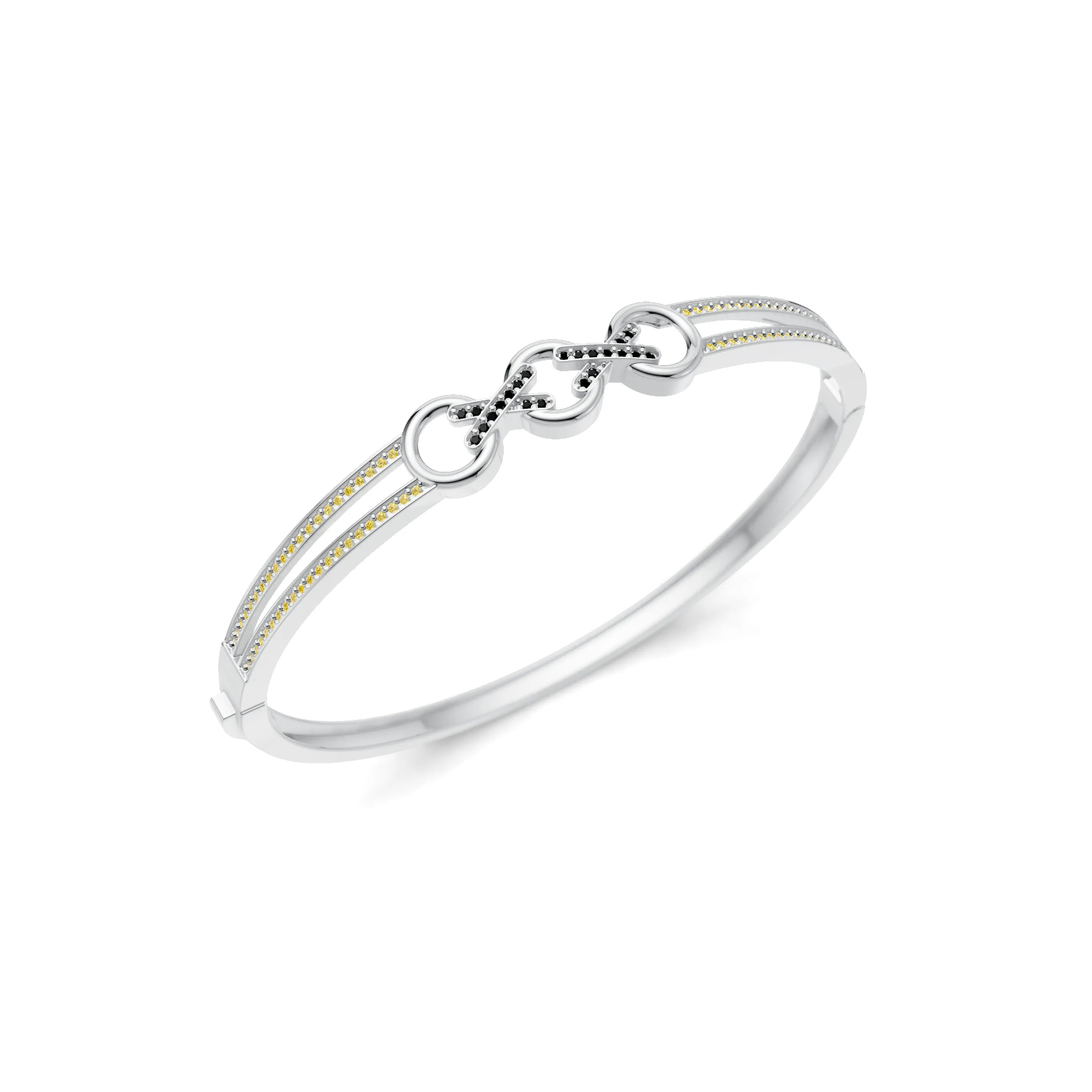 Crafted for the contemporary woman, this piece serves as a versatile accessory, equally at home in a professional setting or at an upscale social event. The bangle's elegant design lends itself to a range of styles, from the avant-garde to the timelessly classic, allowing for seamless transition from day to night wear.