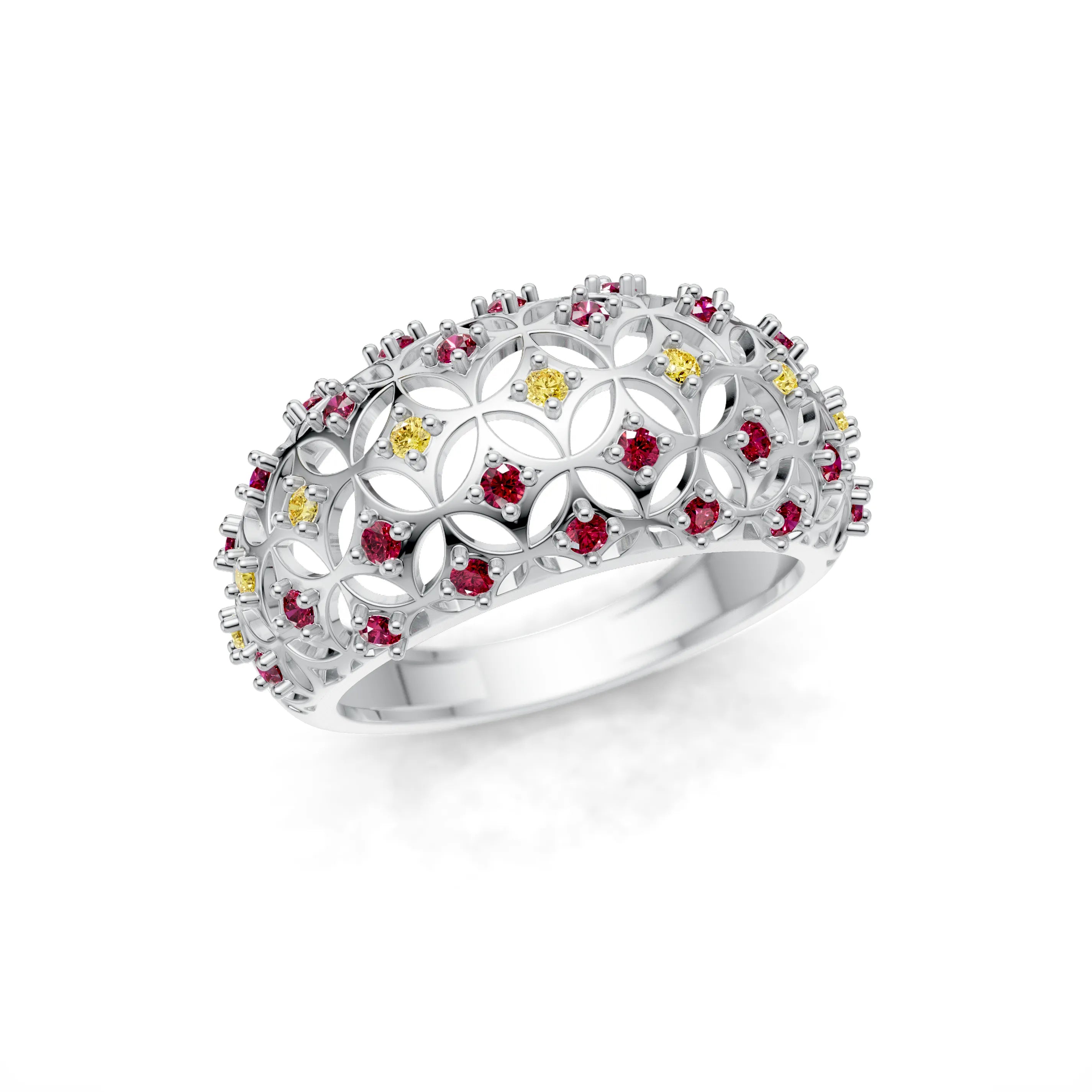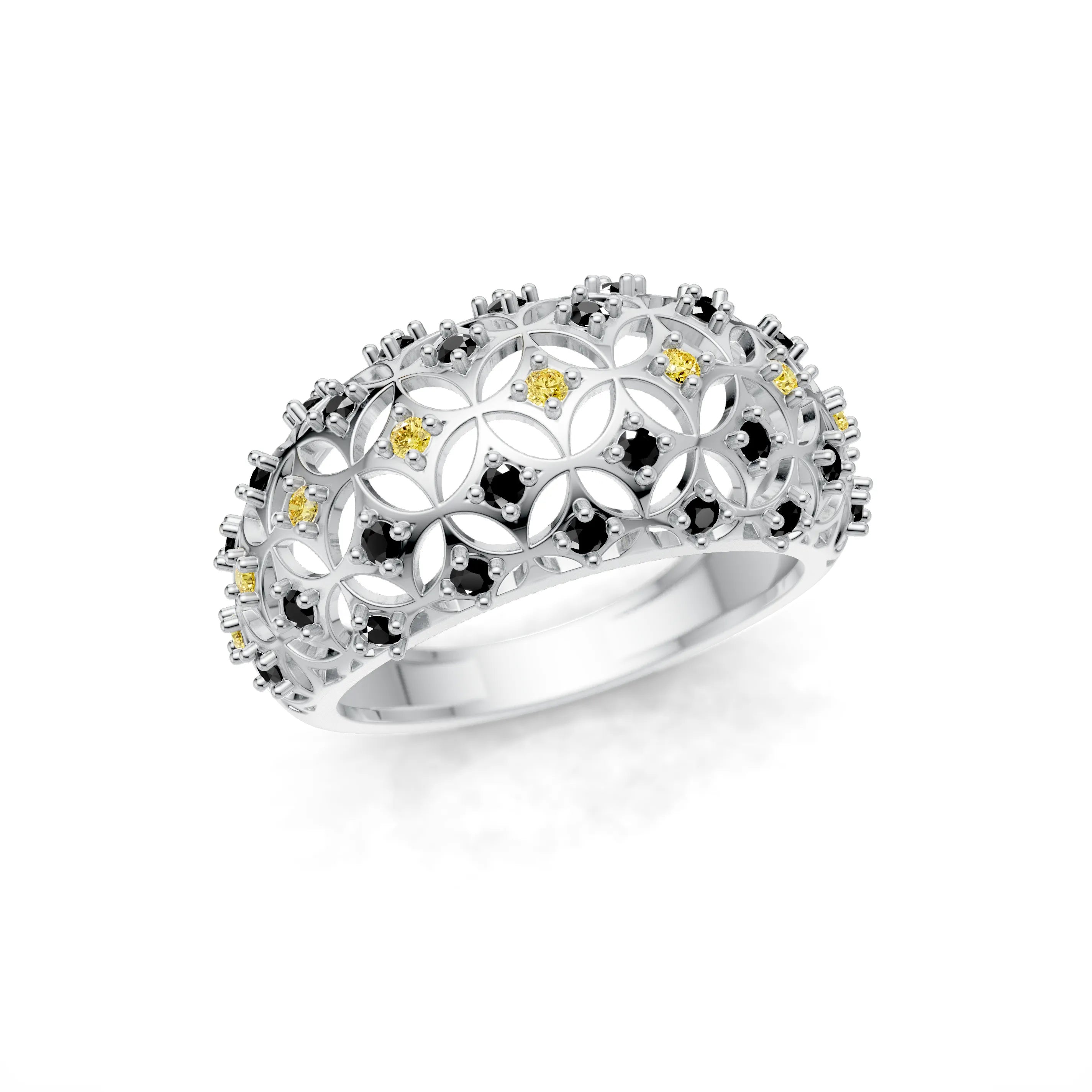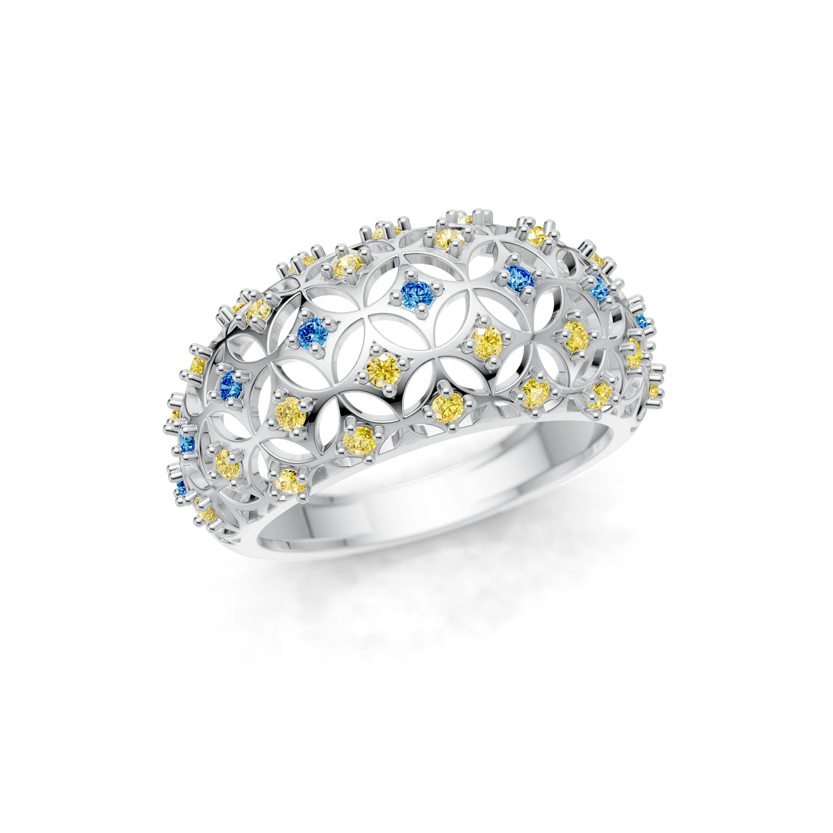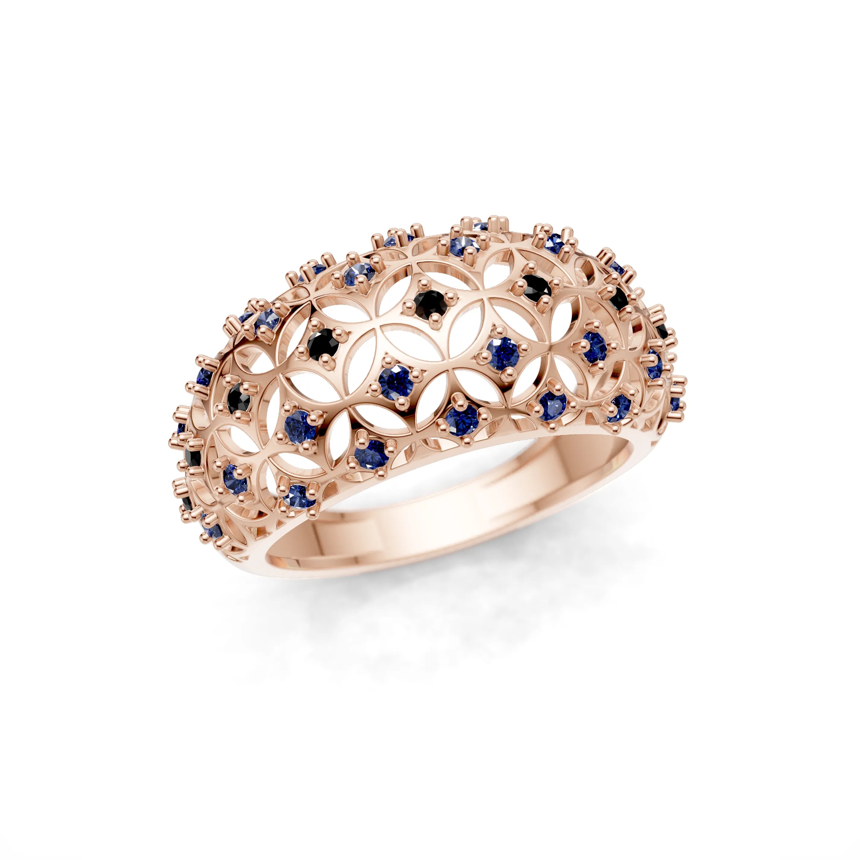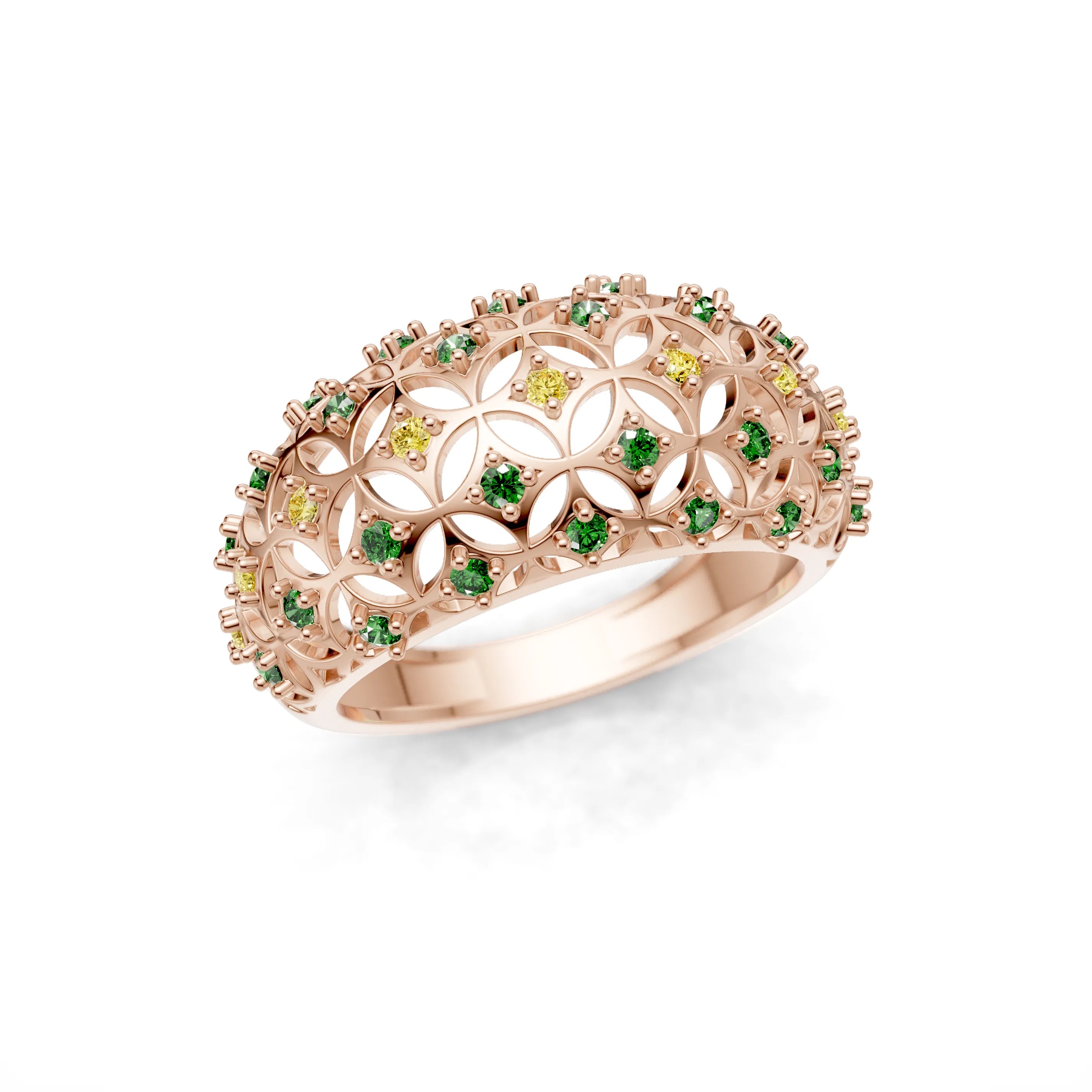 The "Golden Garland Sparkle Band" exquisitely melds the timeless appeal of a lattice design with the brilliance of modern craftsmanship. Intricate floral patterns, inspired by the elegance of heirloom jewellery, form the foundation of this band, creating a captivating display of golden artistry. Each intersection of this delicate trellis is highlighted by a shimmering gemstone, lending an air of vintage grace to this crossover ring.