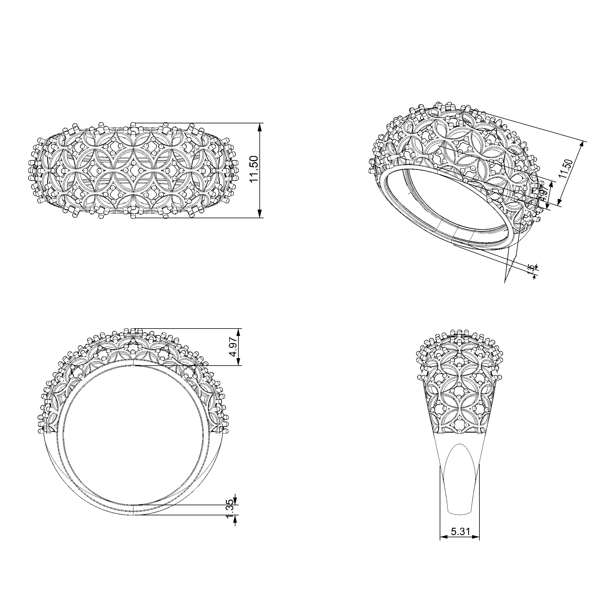 The ring's silhouette is a harmonious blend of past and present, featuring an infinity pave band that suggests unending sophistication. The crossover elements symbolise a path woven with precious moments, making this chic ring a treasure that's as meaningful as it is beautiful.