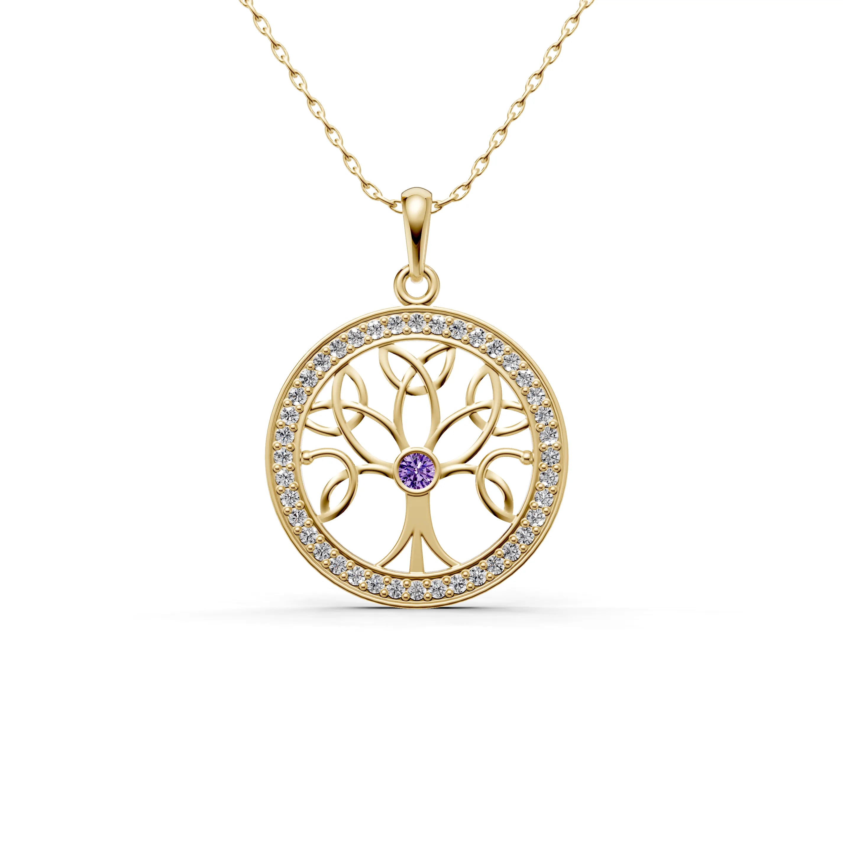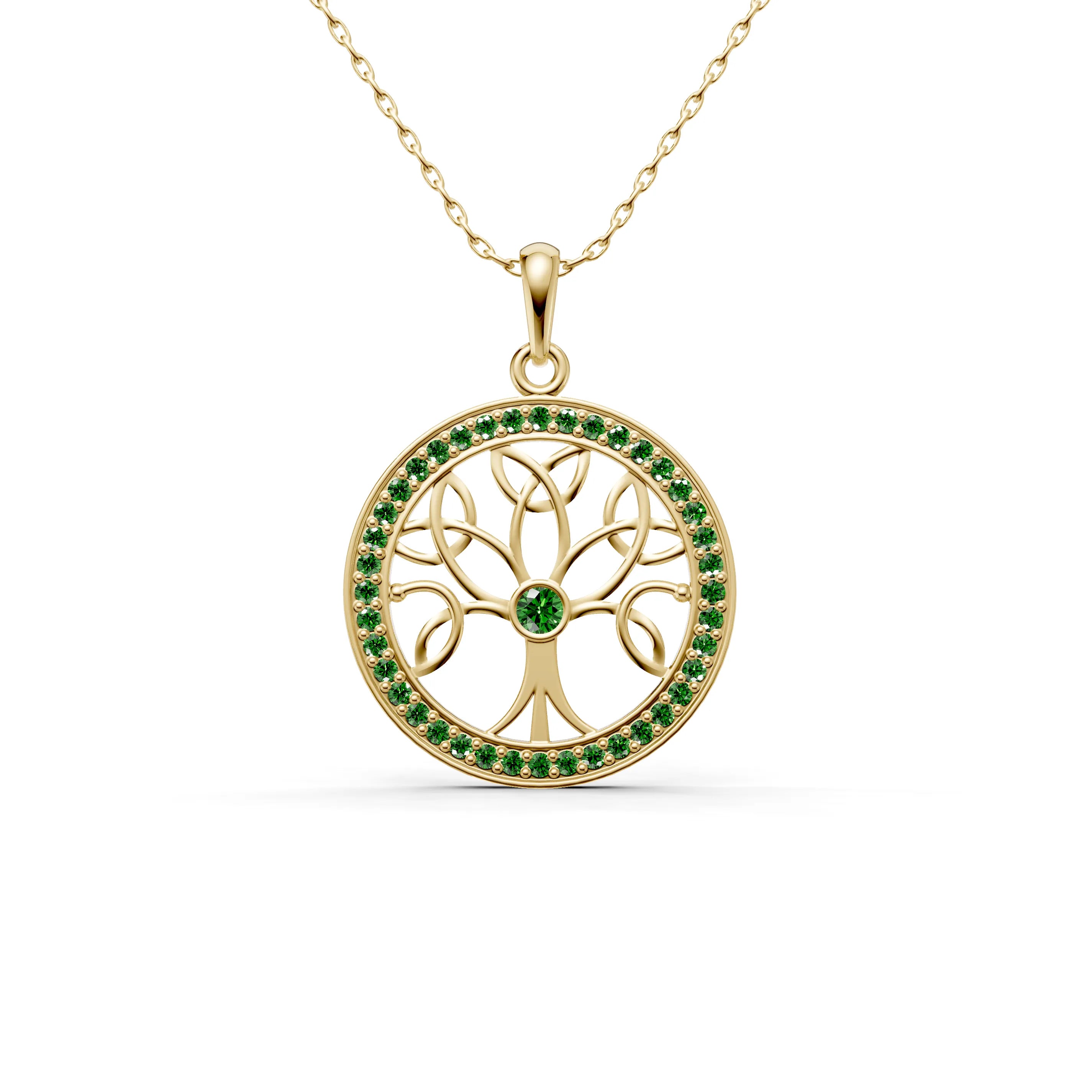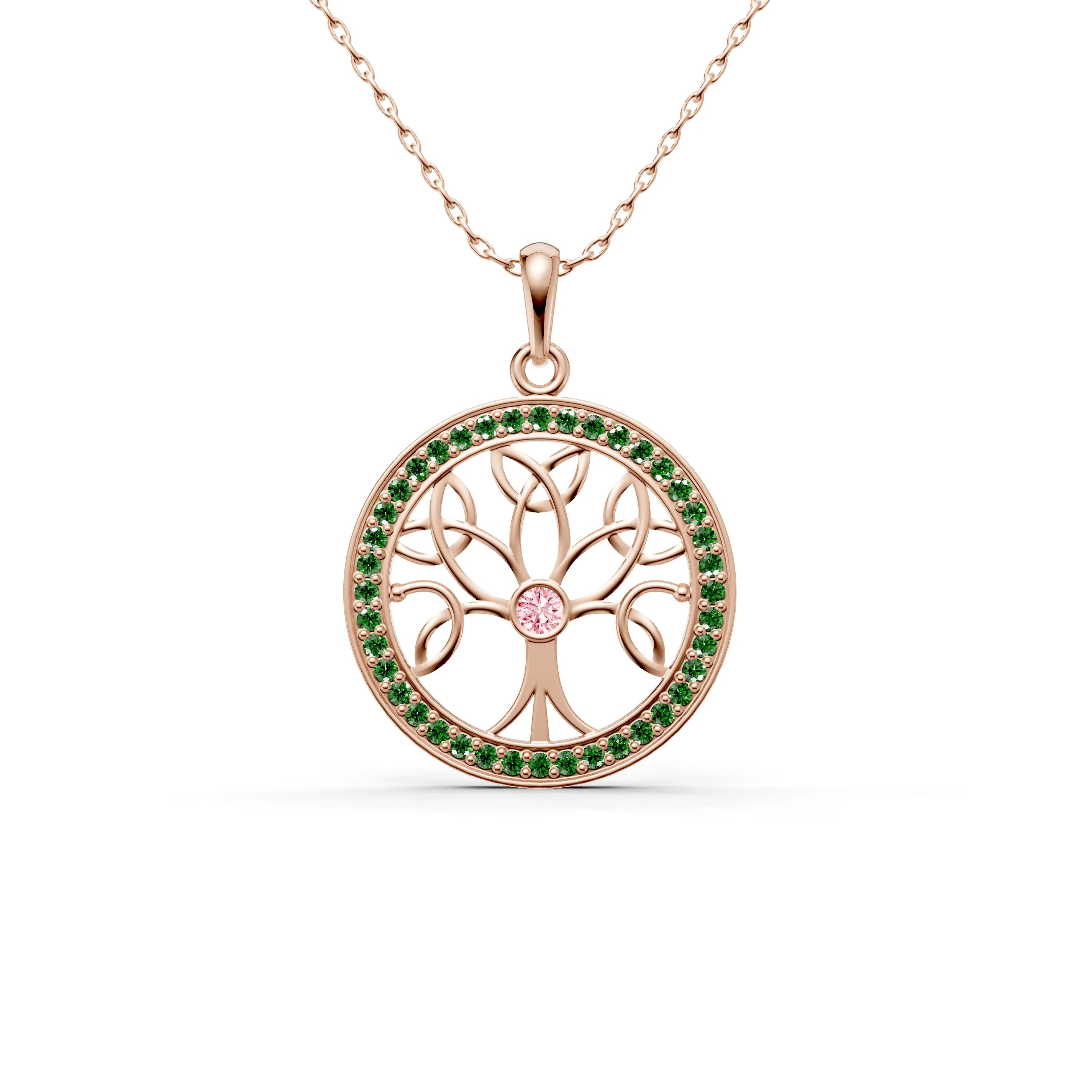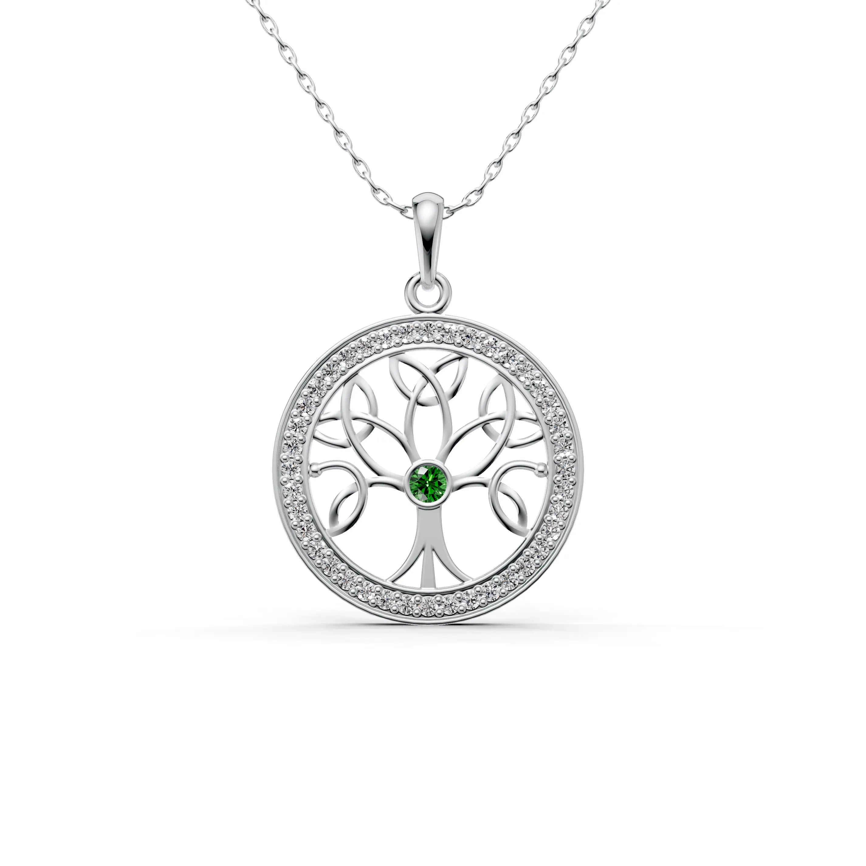 This tree of life pendant is a sophisticated piece, seamlessly blending the timeless allure of nature with a modern, luxurious appeal. The central tree charm is highlighted by a prominent stone, mirroring the life-giving sun at the center of our universe.