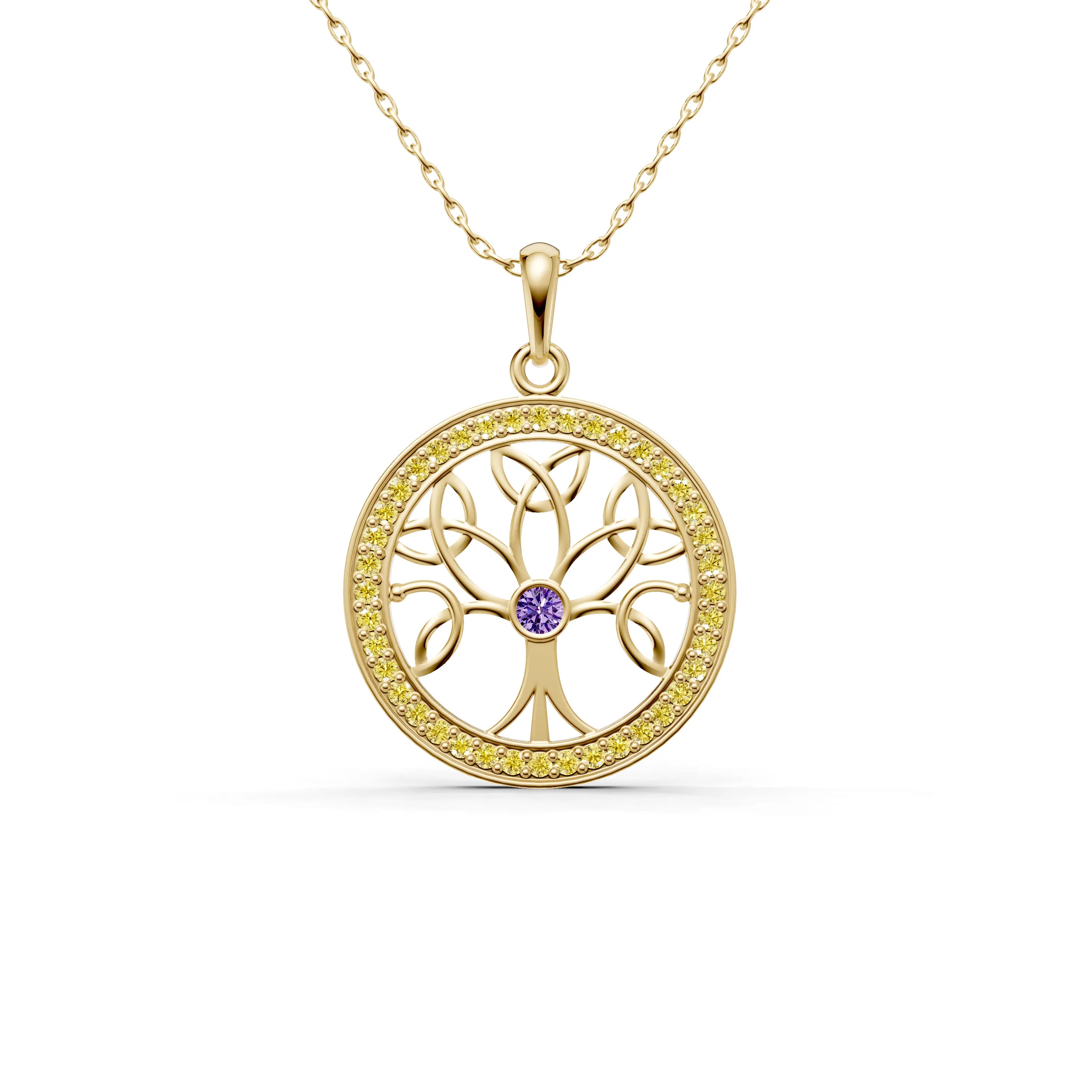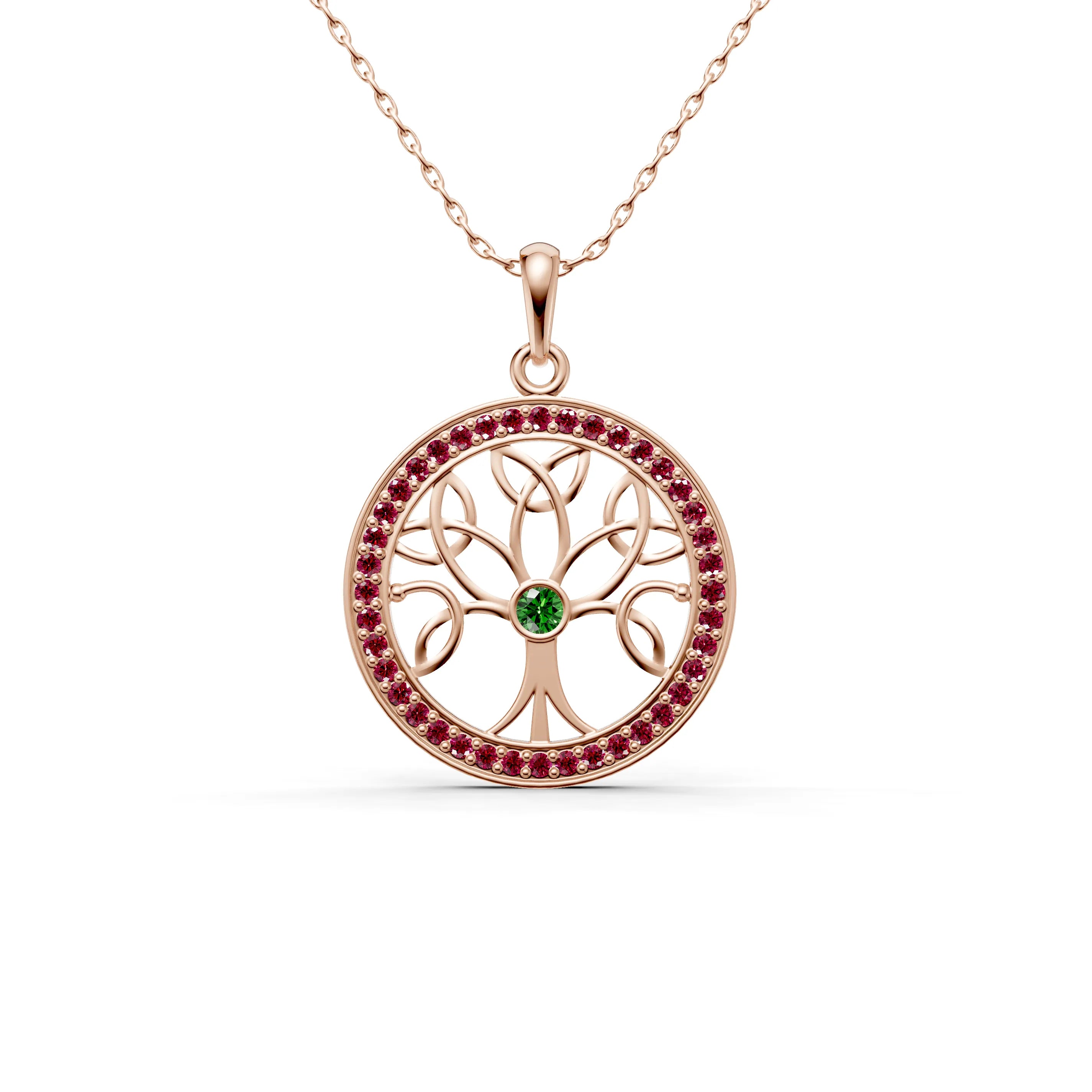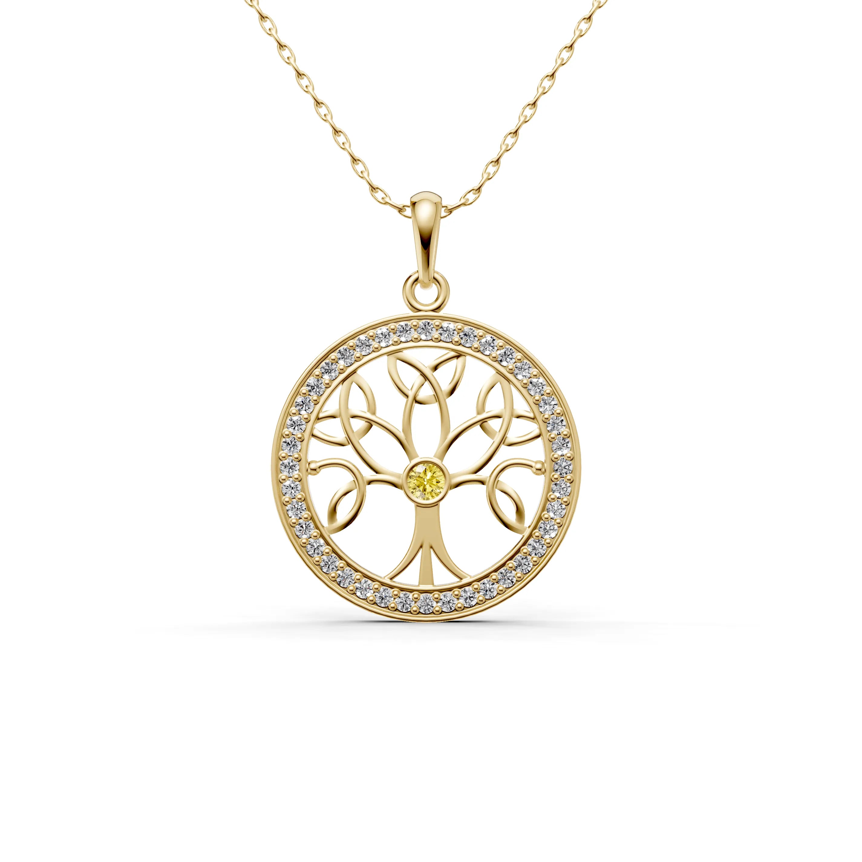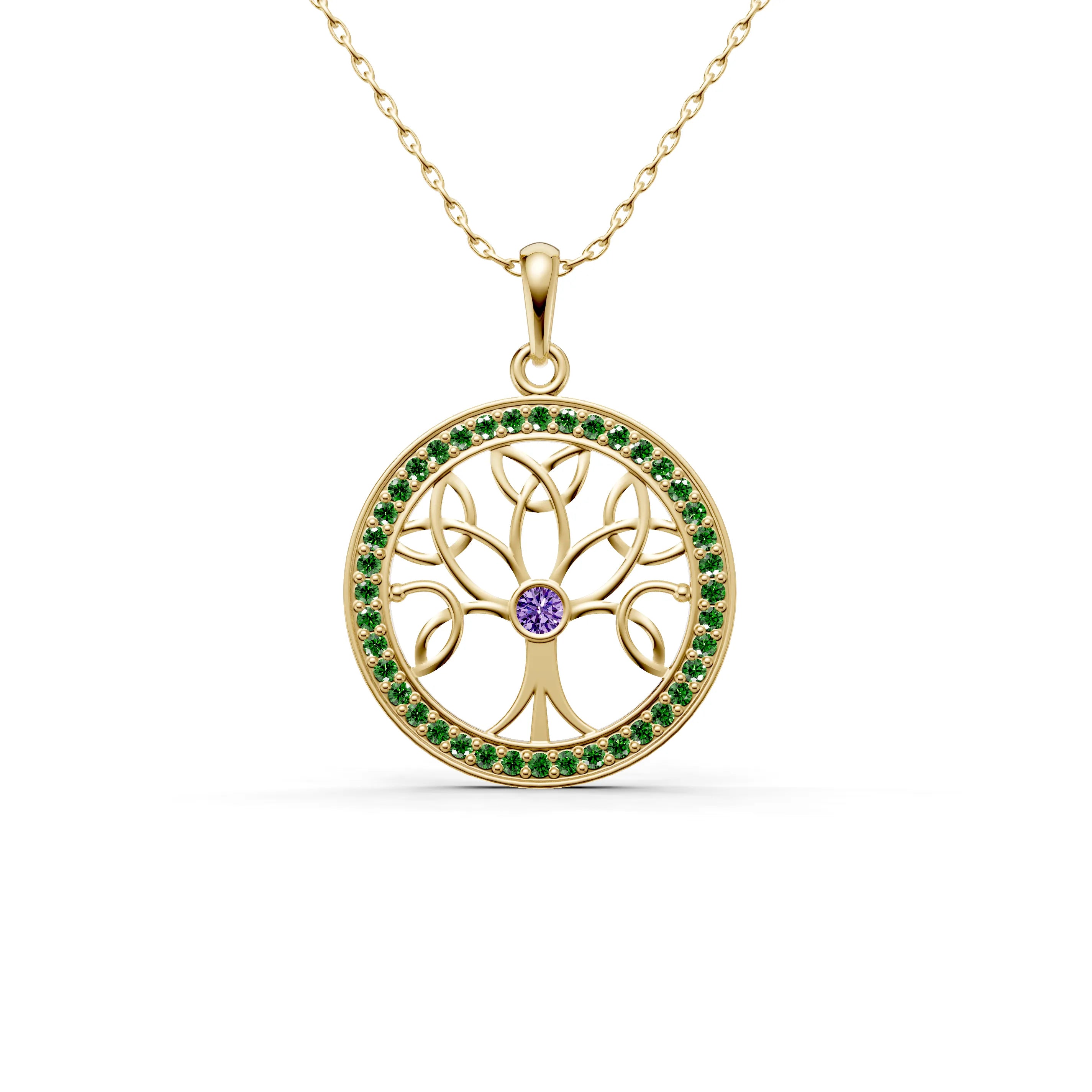 This tree of life pendant is a sophisticated piece, seamlessly blending the timeless allure of nature with a modern, luxurious appeal. The central tree charm is highlighted by a prominent stone, mirroring the life-giving sun at the center of our universe.