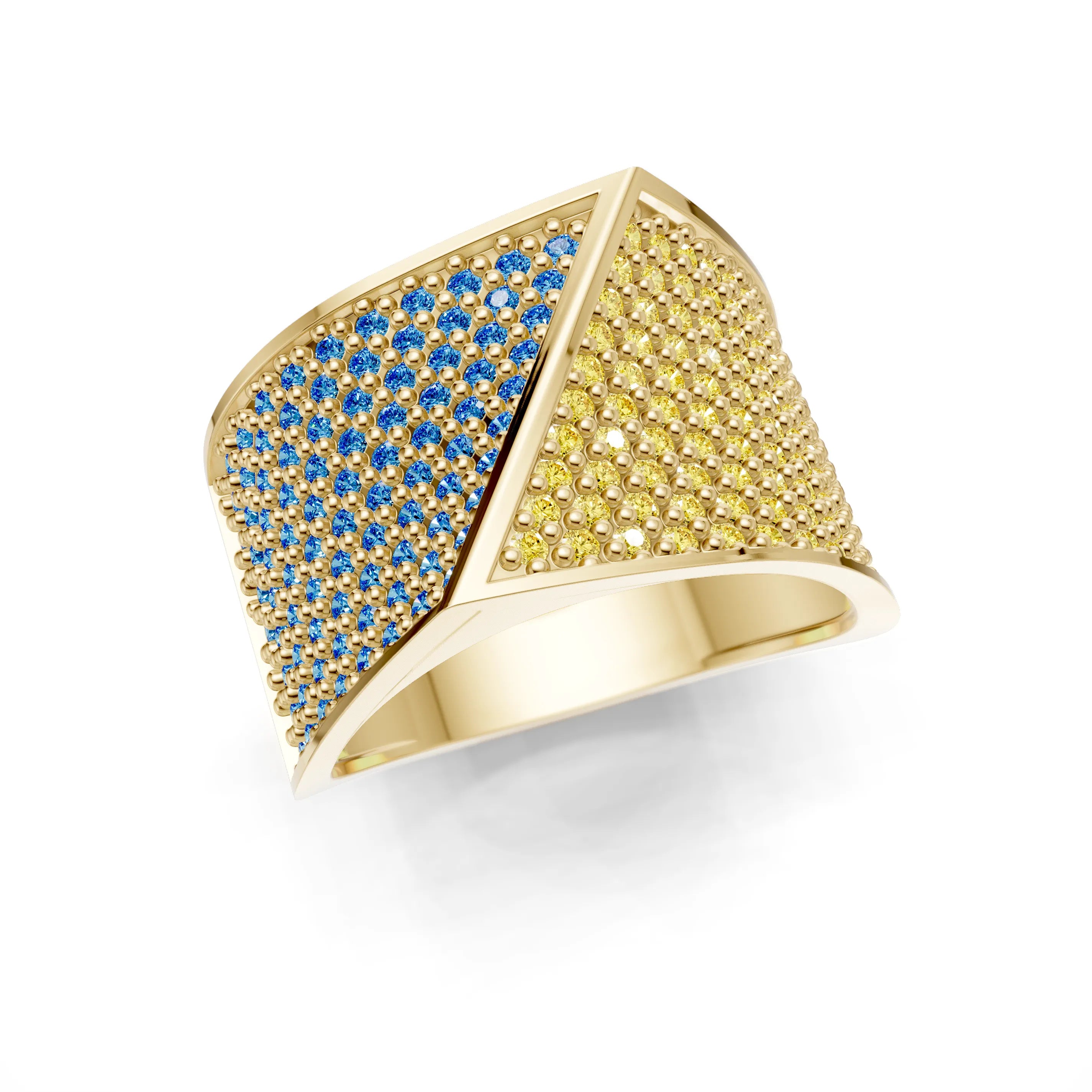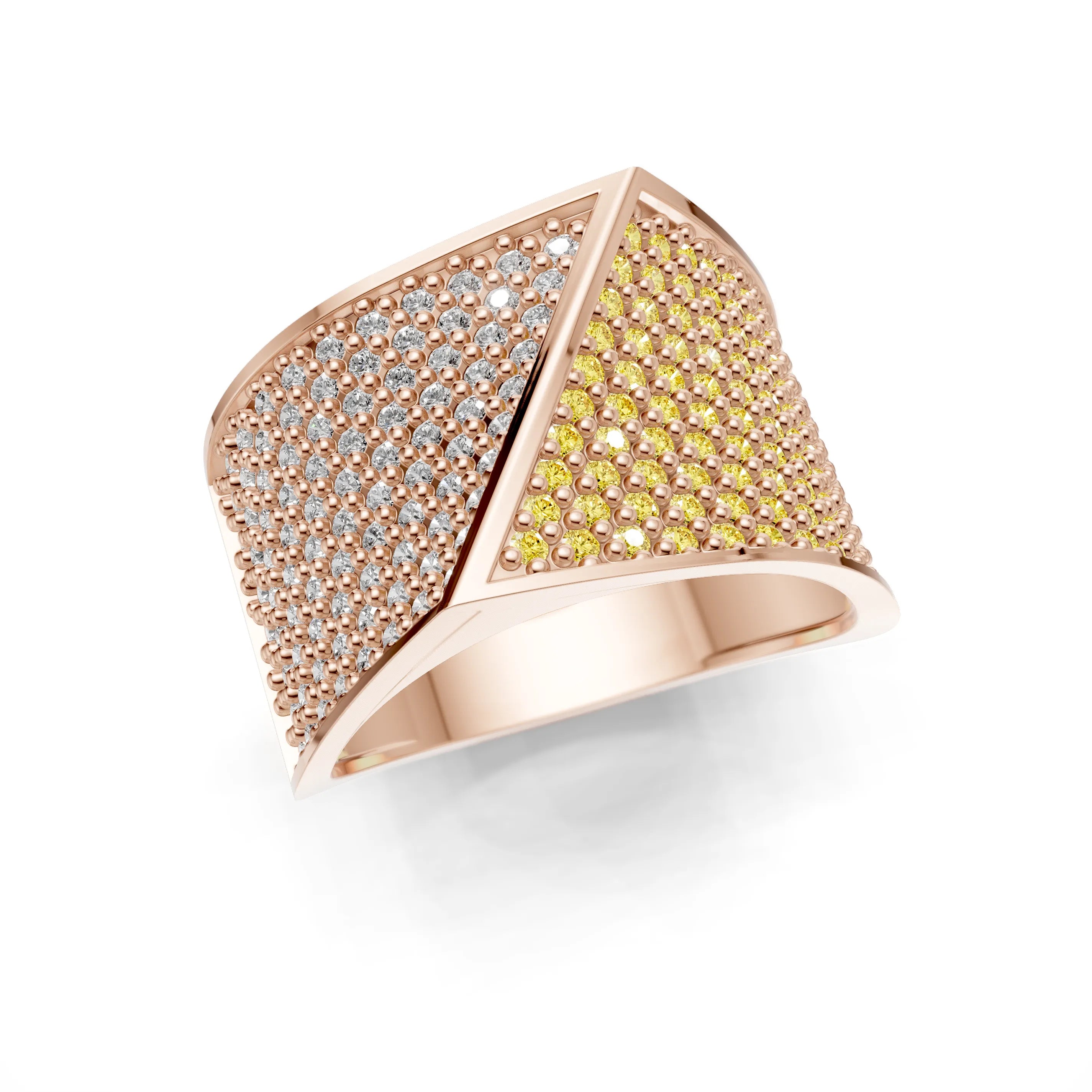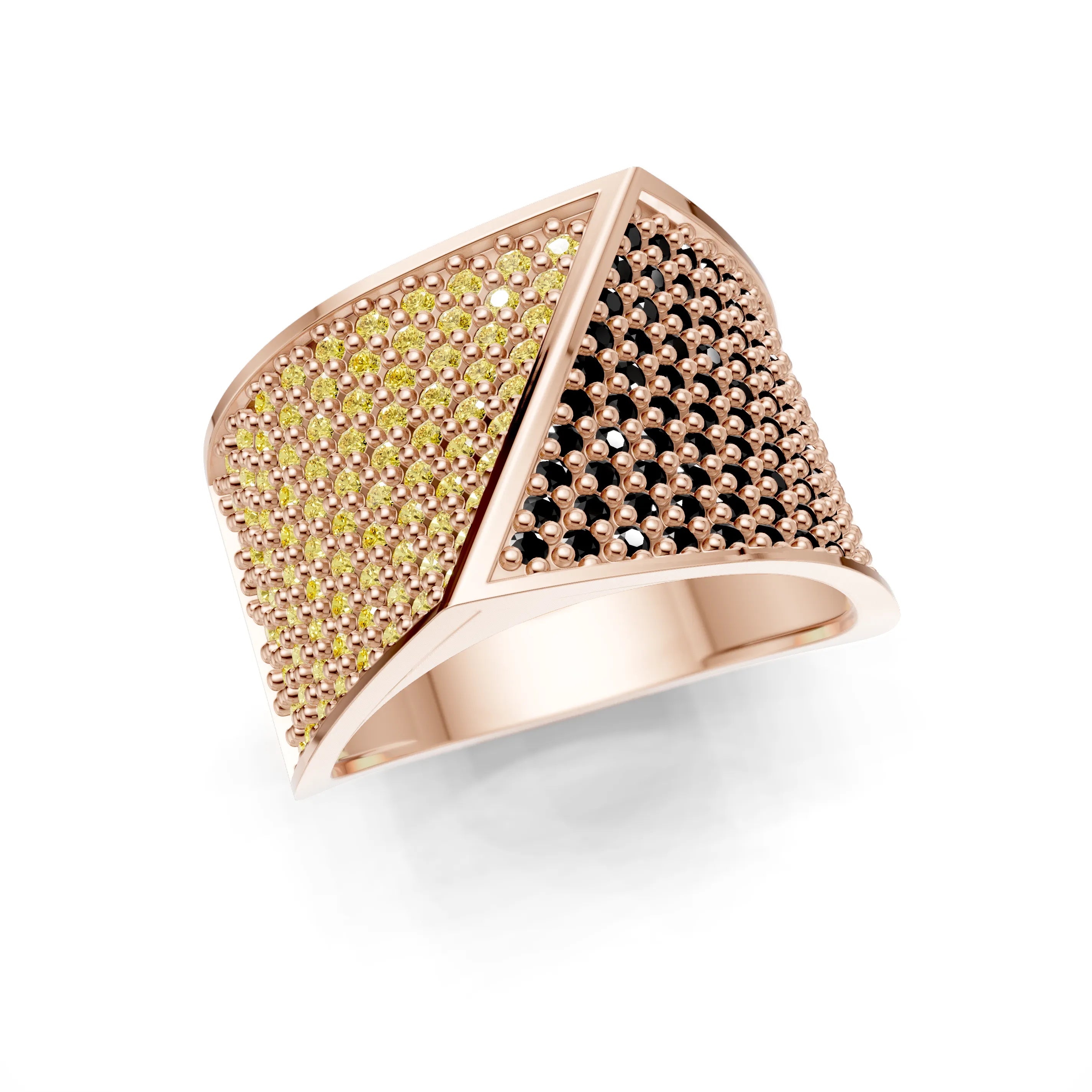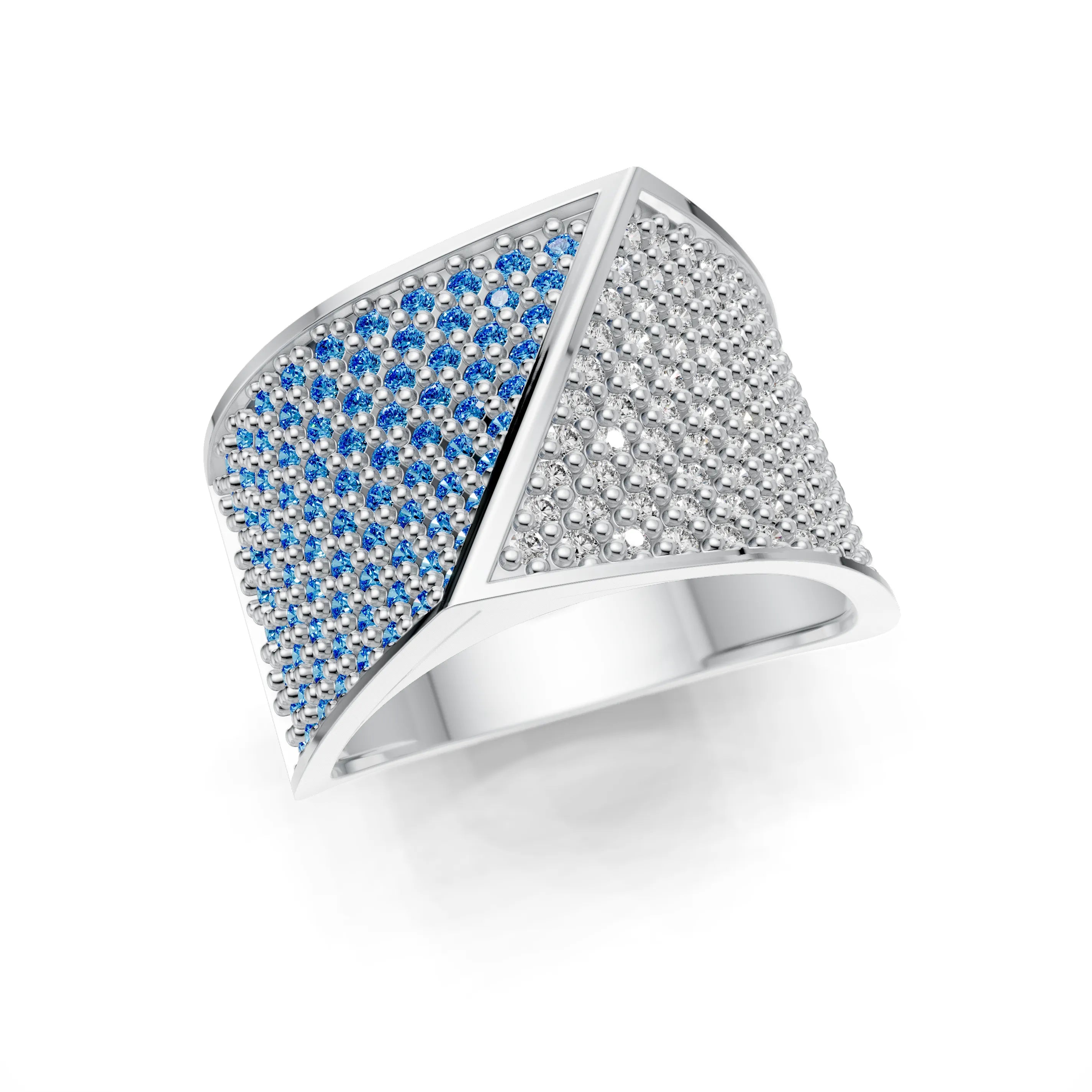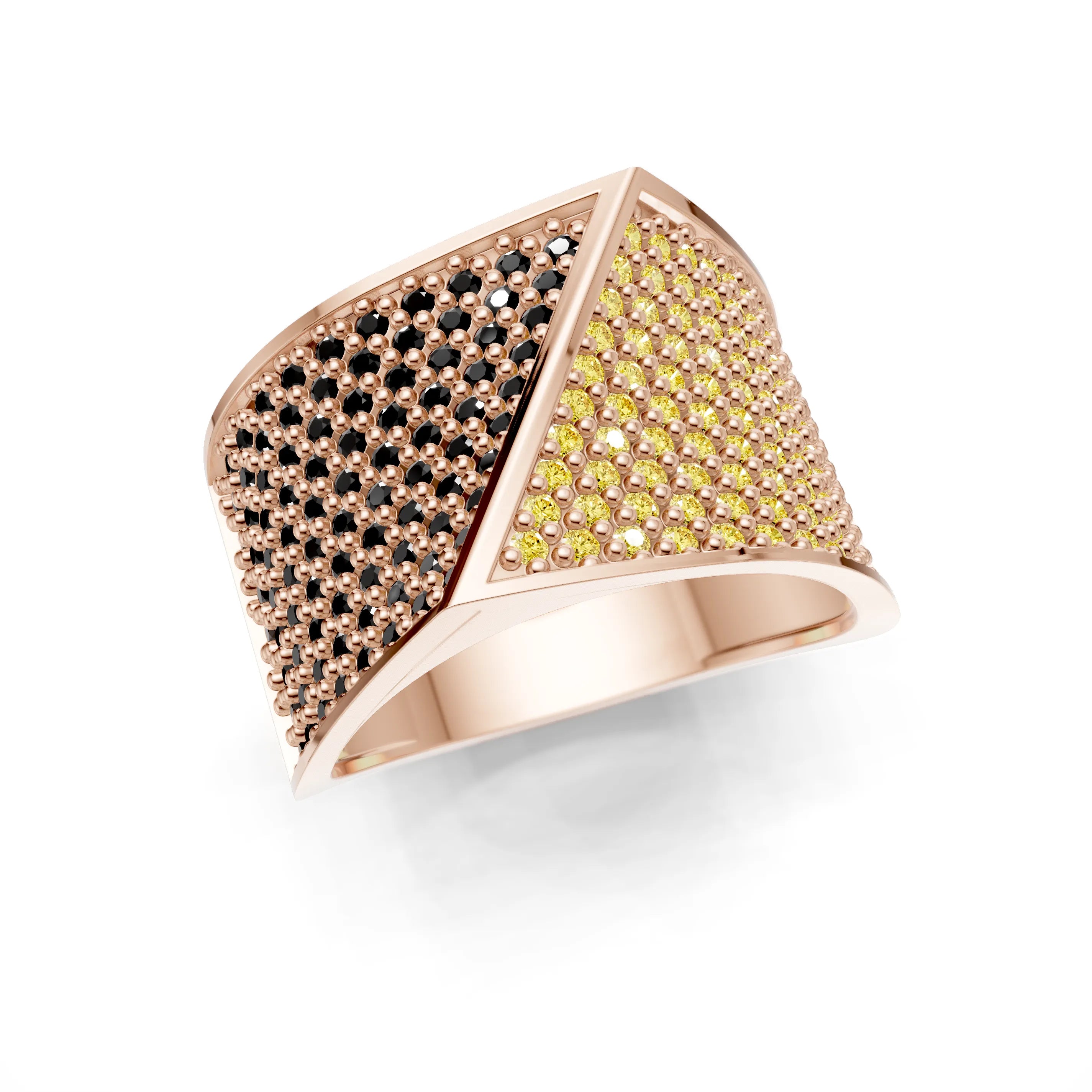 The ring's architectural structure is reminiscent of Art Deco inspiration, offering a modernist cocktail ring that's both opulent and uniquely non-traditional. It's an architectural luxury jewelry piece, fashioned for those who dare to showcase their edgy style with fine jewelry.