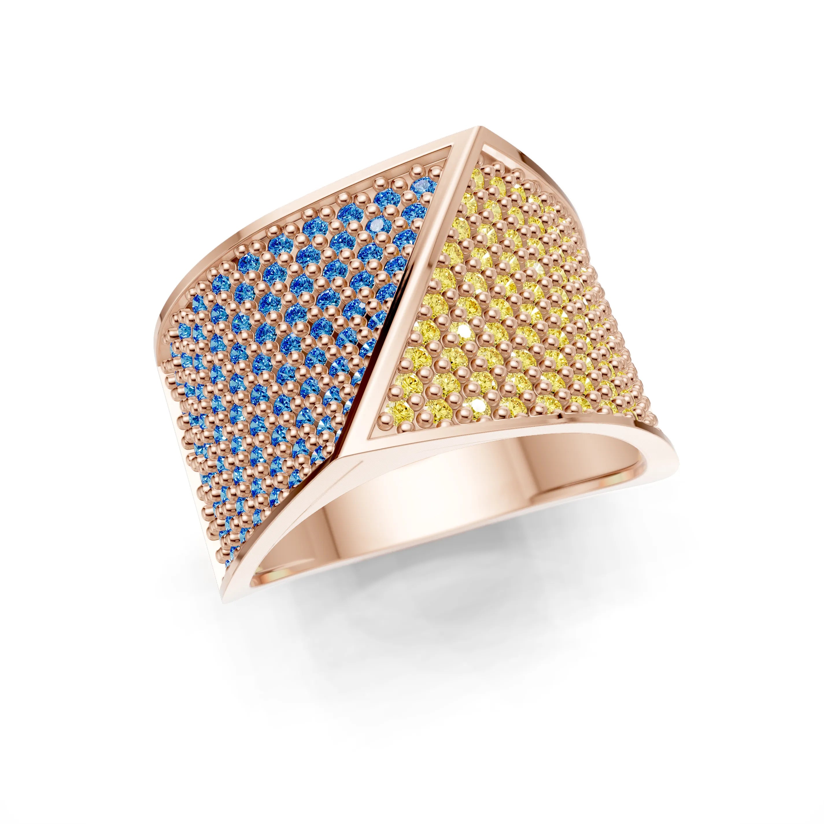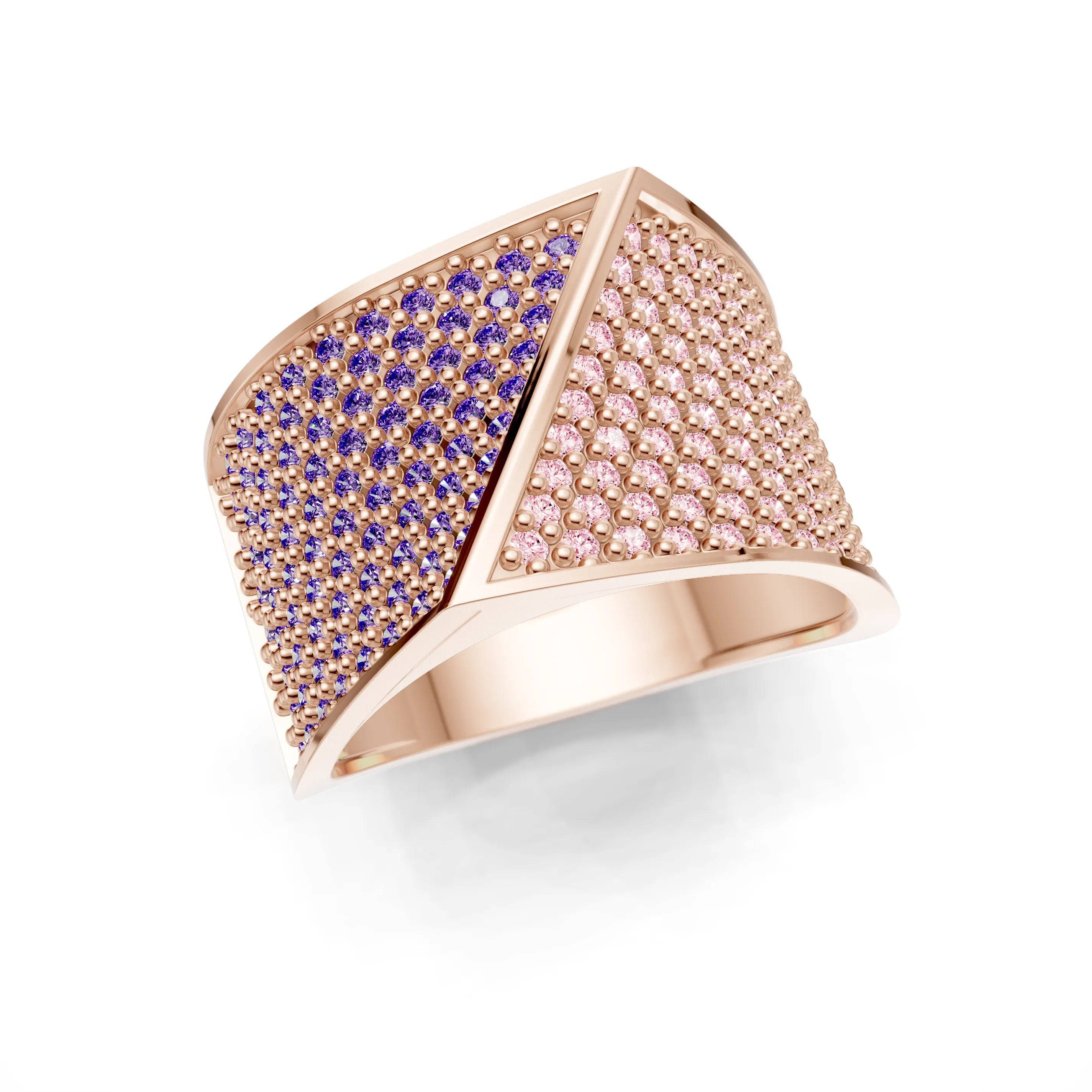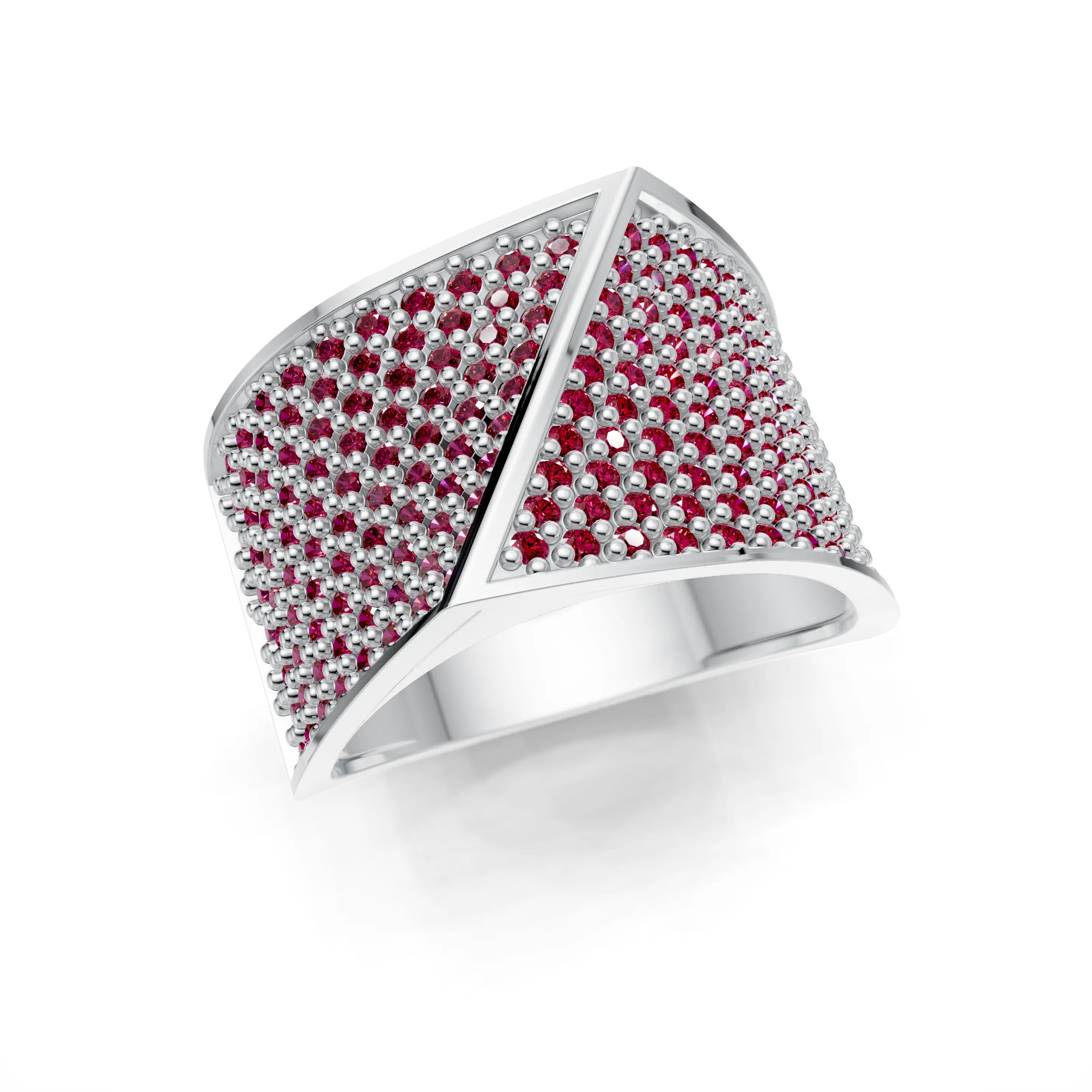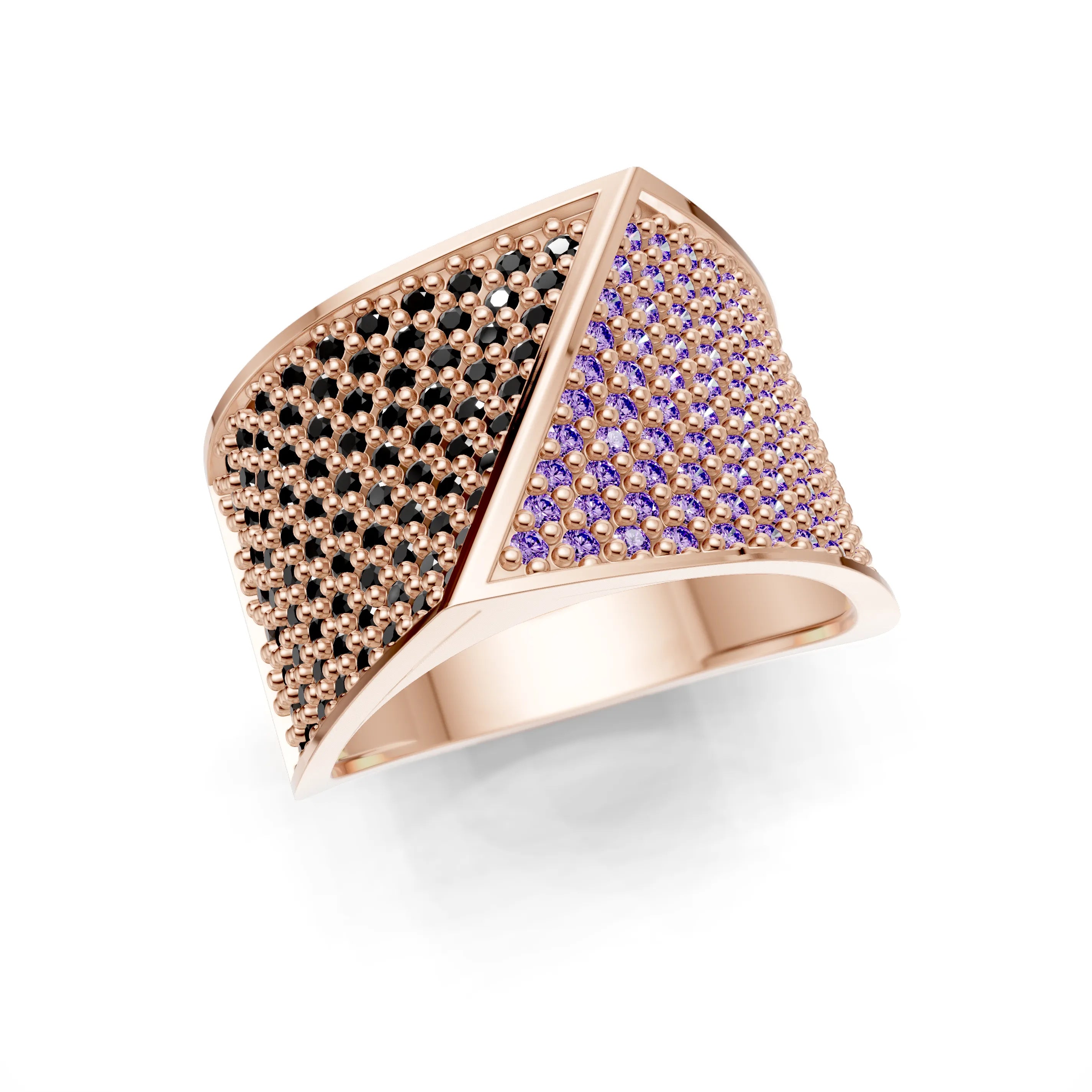 As a wide band ring, it makes a powerful elite fashion statement, suited for those occasions where making a memorable impression is key. Perfect for an evening of elegance or as a posh non-diamond gemstone accessory, it's a non-traditional bridal ring choice for the bride who stands out from the crowd. This non-diamond designer ring is for the individual with an eye for detail and a heart for the grandeur of bygone eras, reinvented for the modern age.