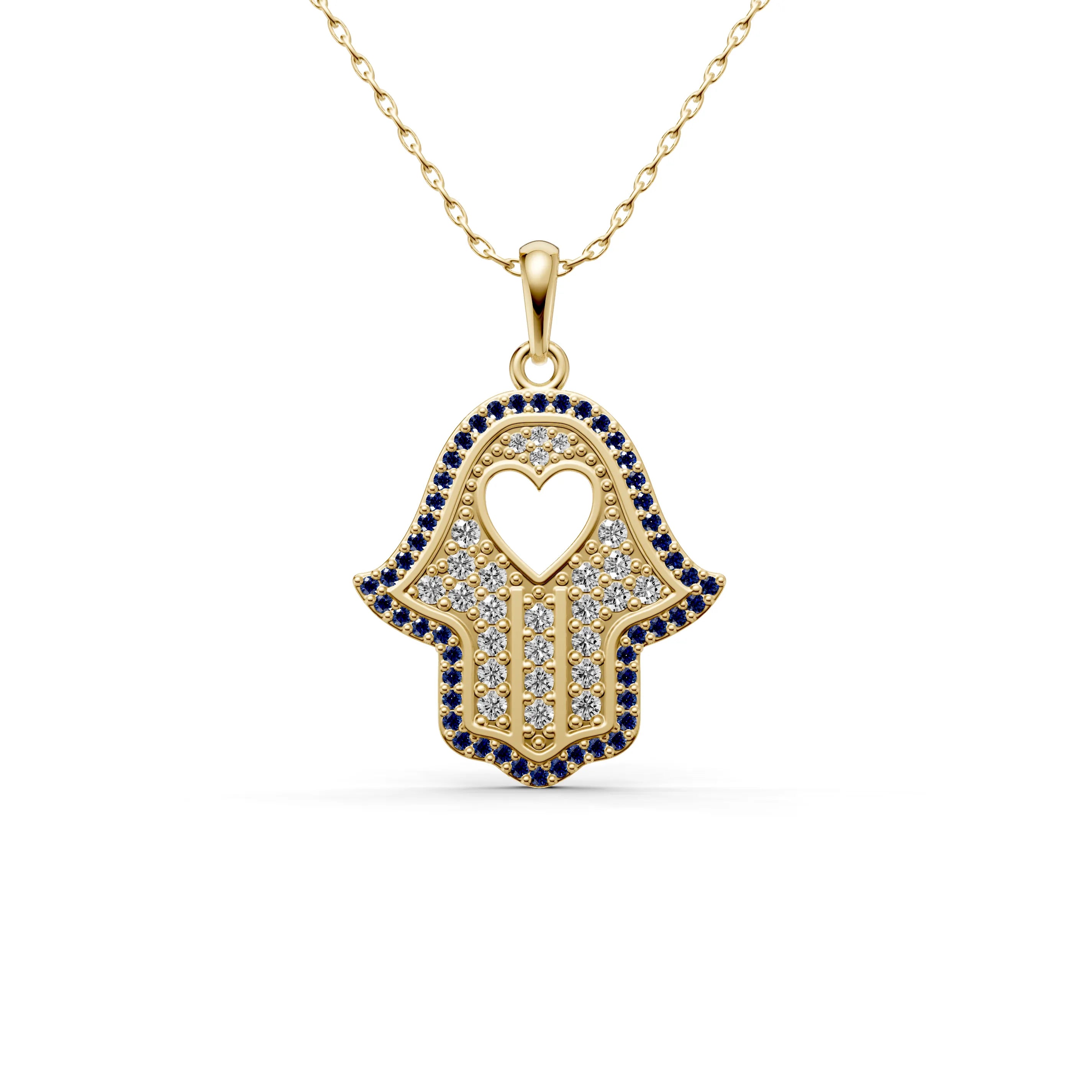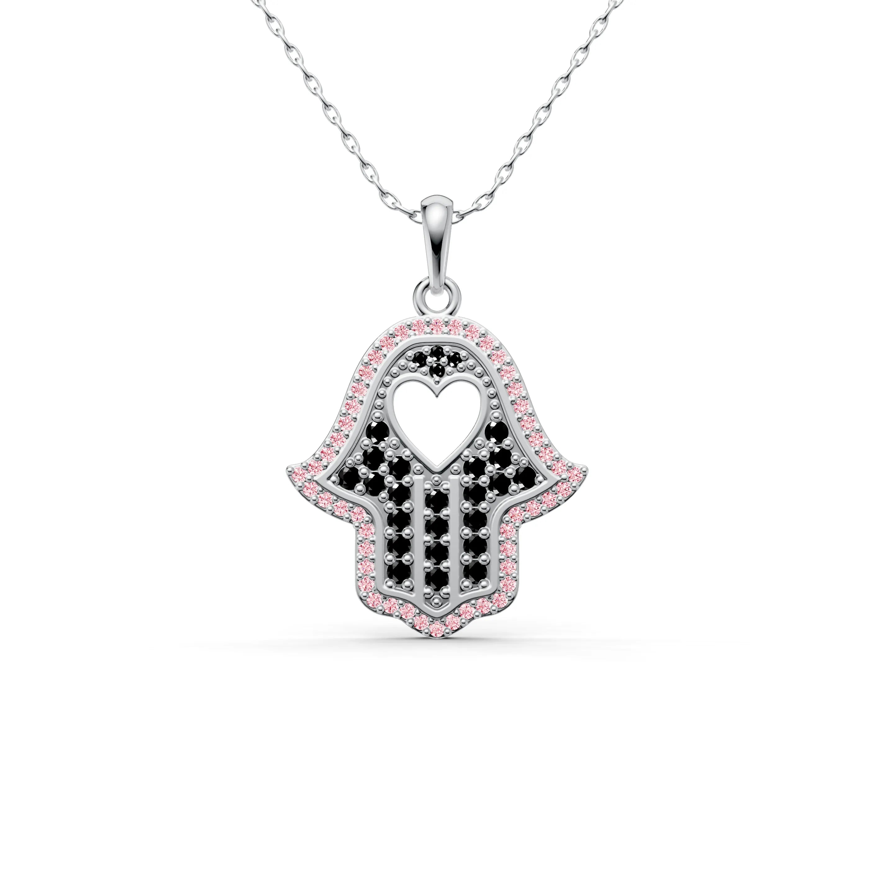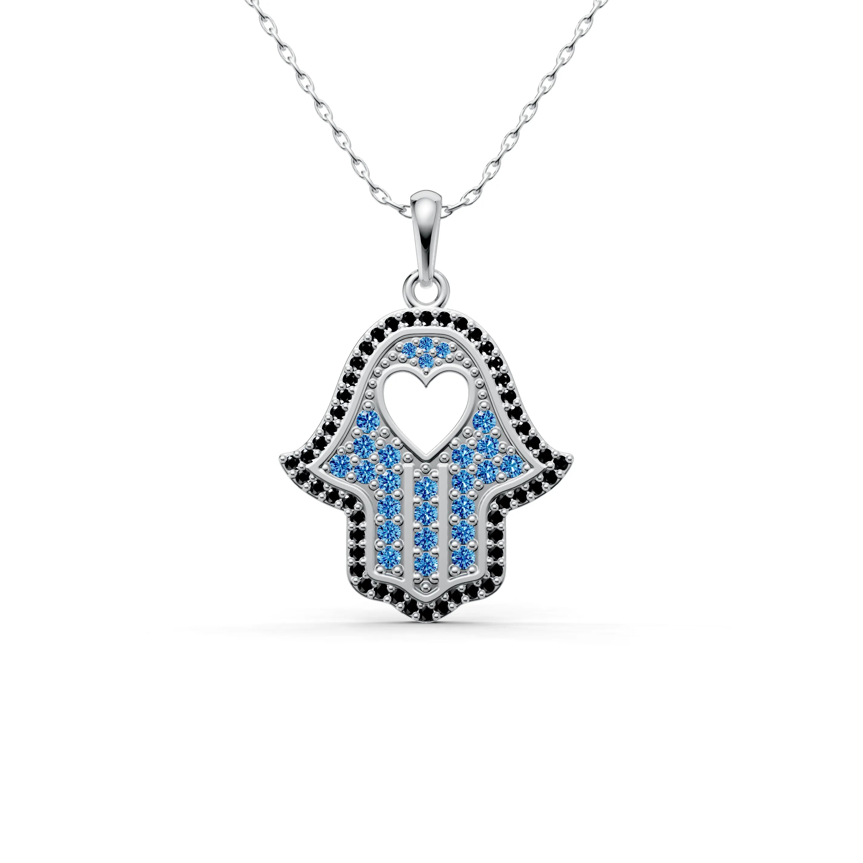 Behold the "Guardian Hamsa Hand Pendant," a symbol of protection and peace. This hamsa necklace, with its roots in ancient traditions, is a contemporary talisman designed to bring its wearer serenity and fortune. The hamsa hand necklace features the iconic hand-shaped symbol, which is universally recognized as a sign of protection, adorned with a heart at the center to represent love and compassion.