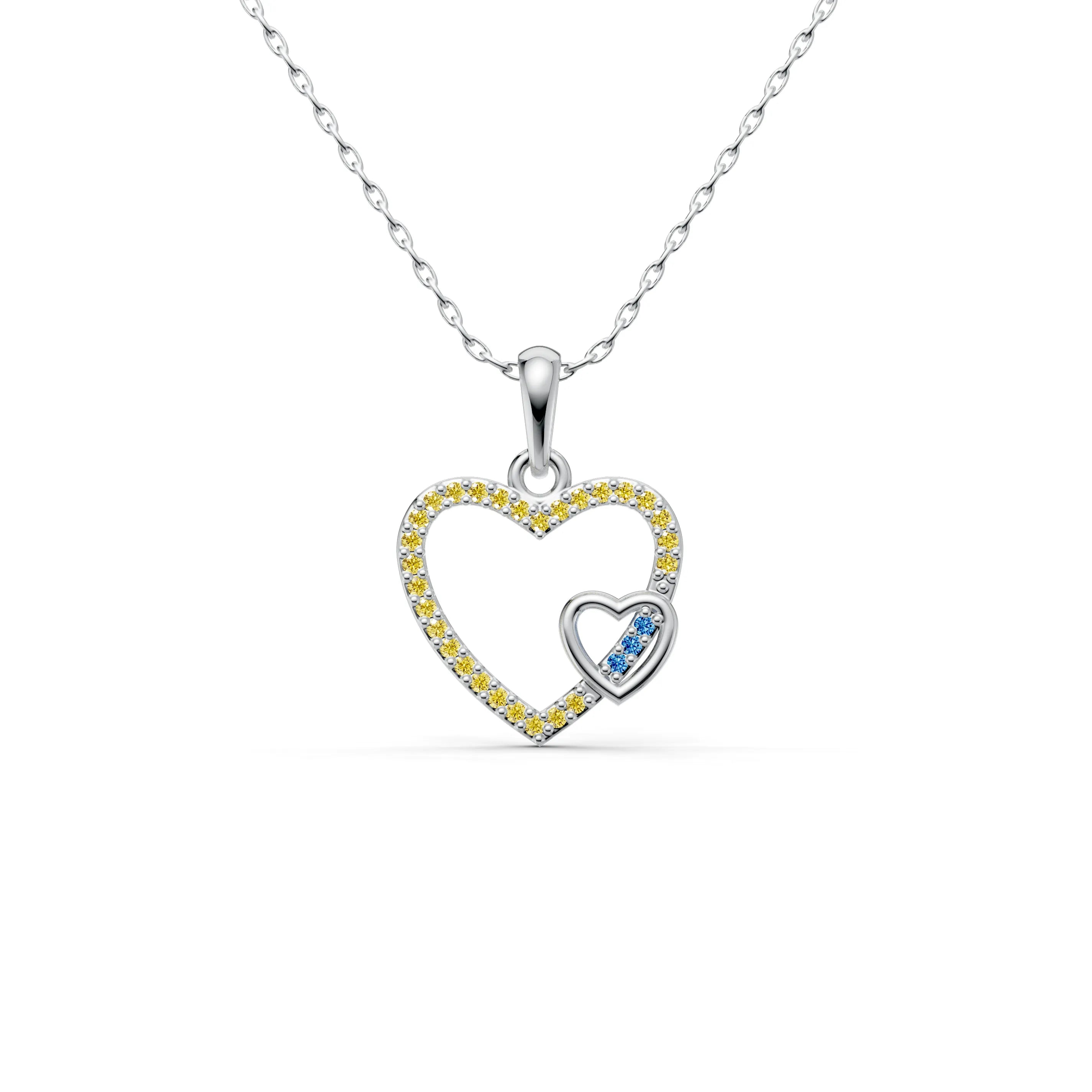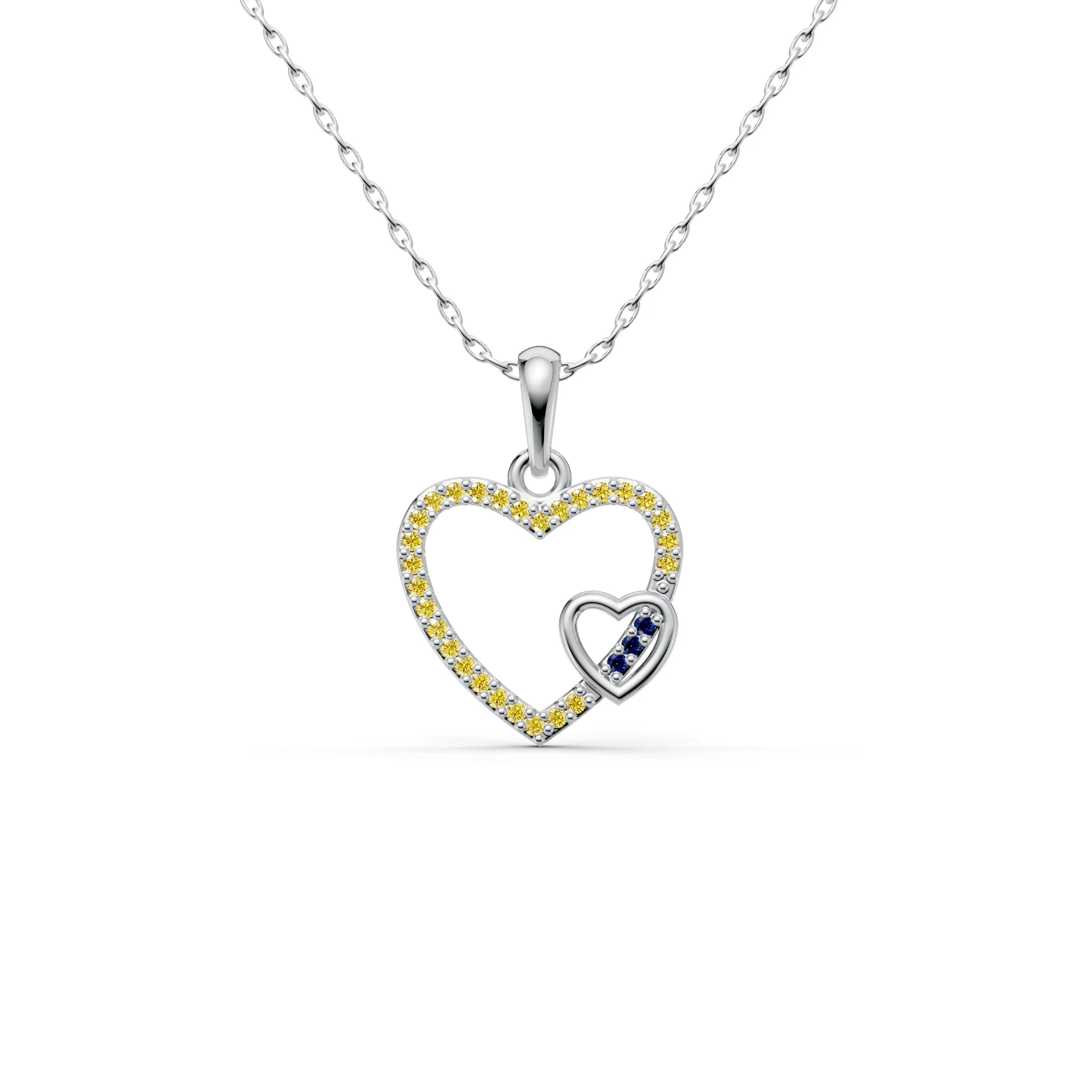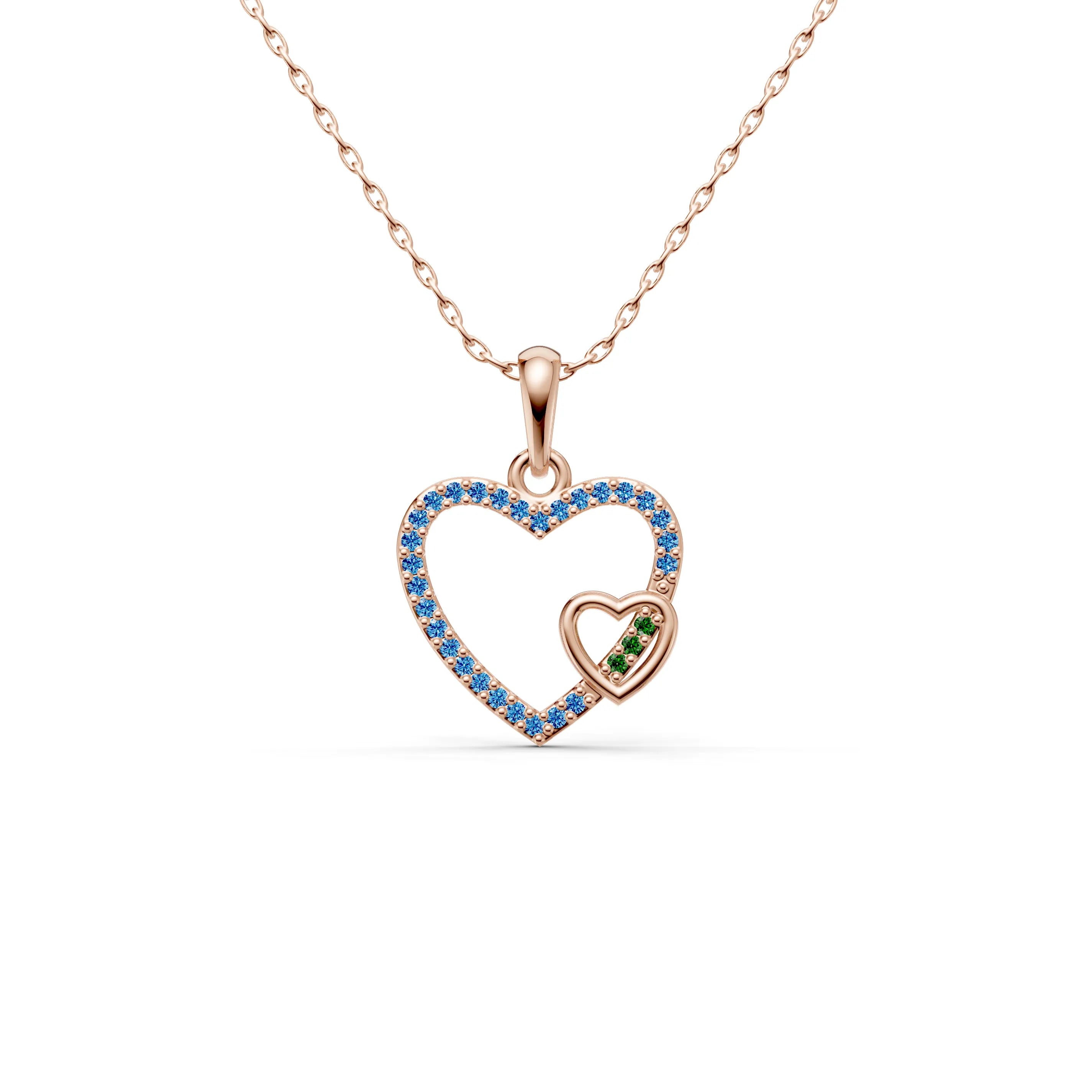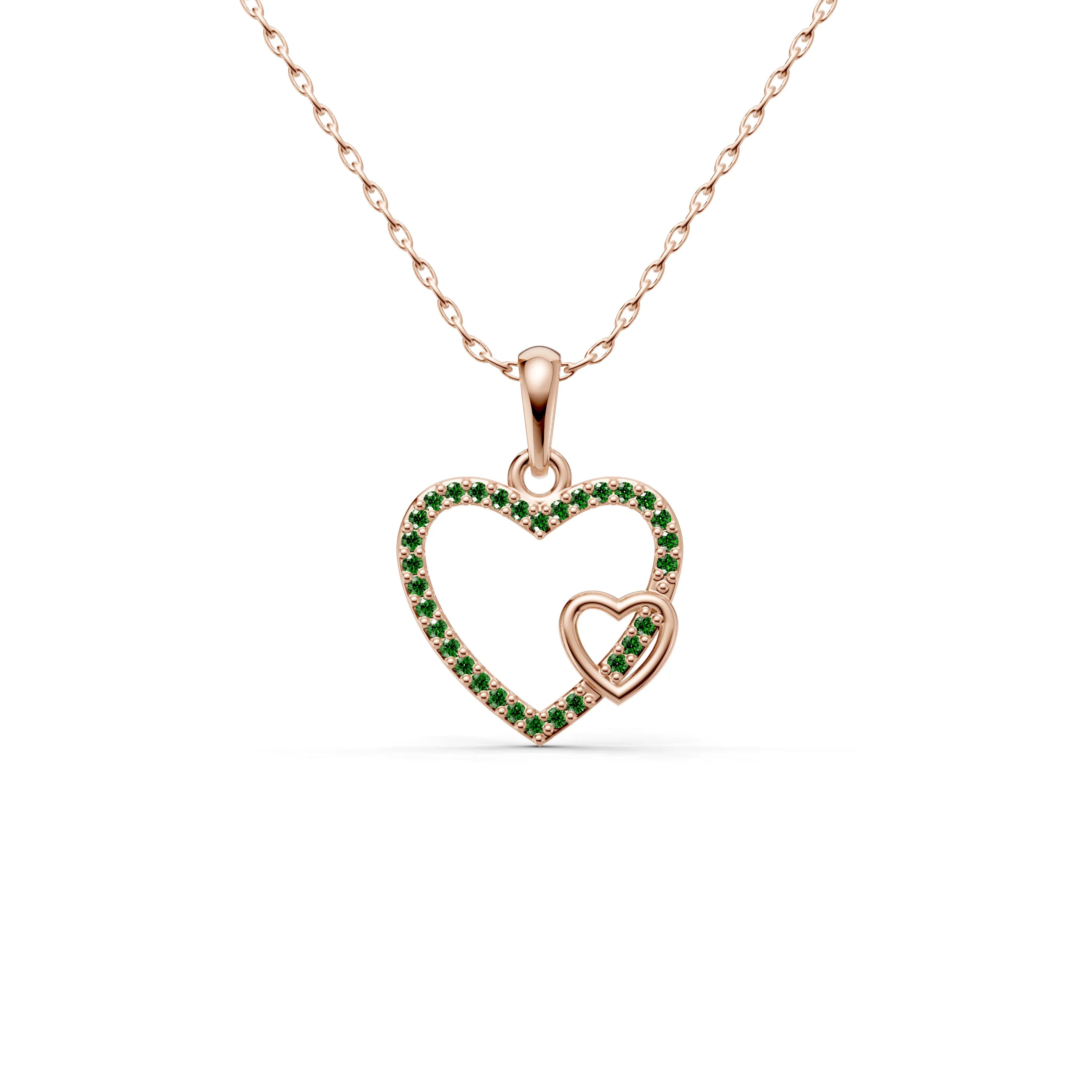 The "Harmony Hearts Pendant" is an exquisite golden necklace that symbolizes unity and the harmonious blending of two hearts. This love pendant necklace showcases a large heart enveloping a smaller heart, both elegantly crafted in a lustrous gold finish.