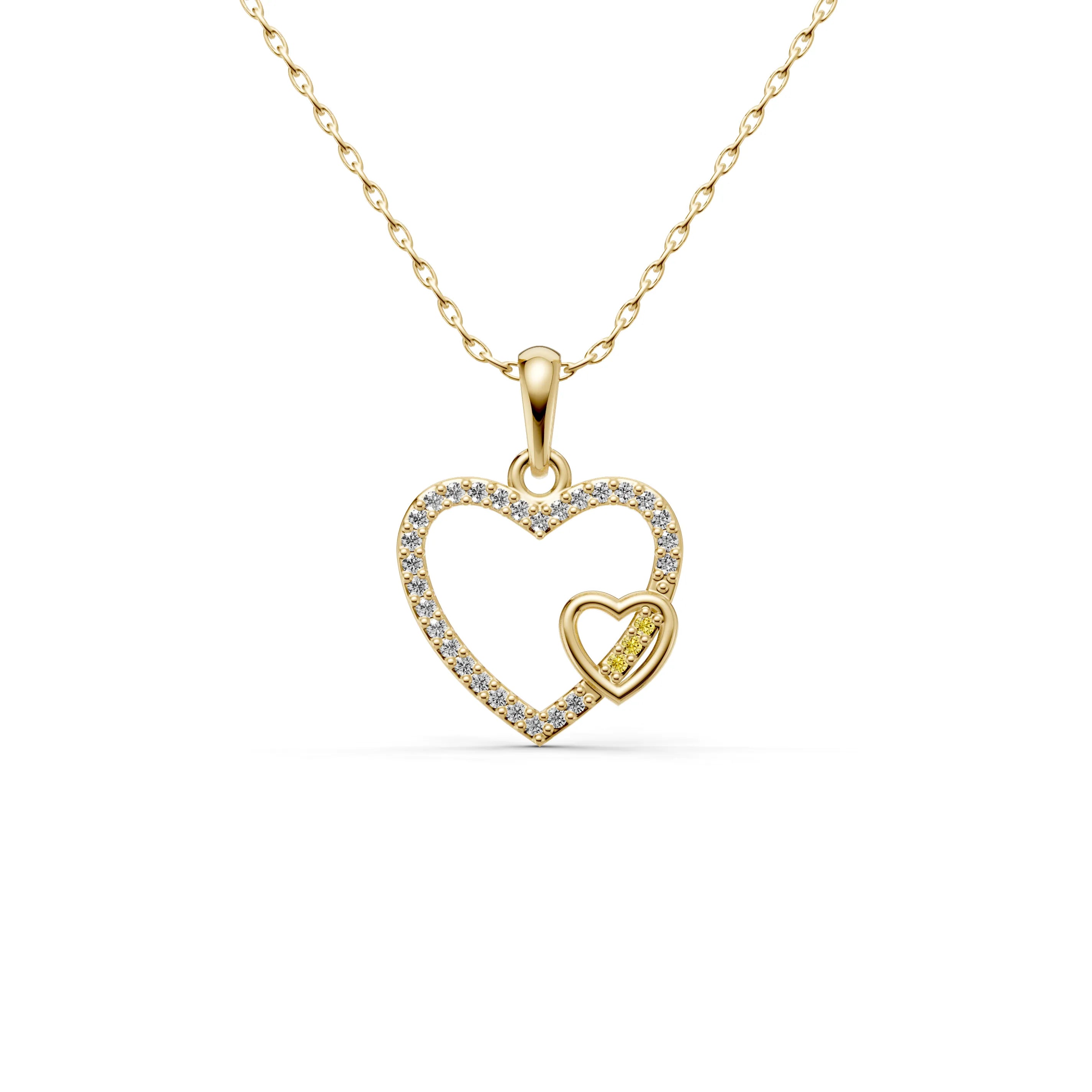 Draped on a fine golden chain, the pendant is a testament to the beauty of love in its many layers. It's a versatile piece that can be worn for both casual and formal occasions, adding a meaningful touch to any outfit.