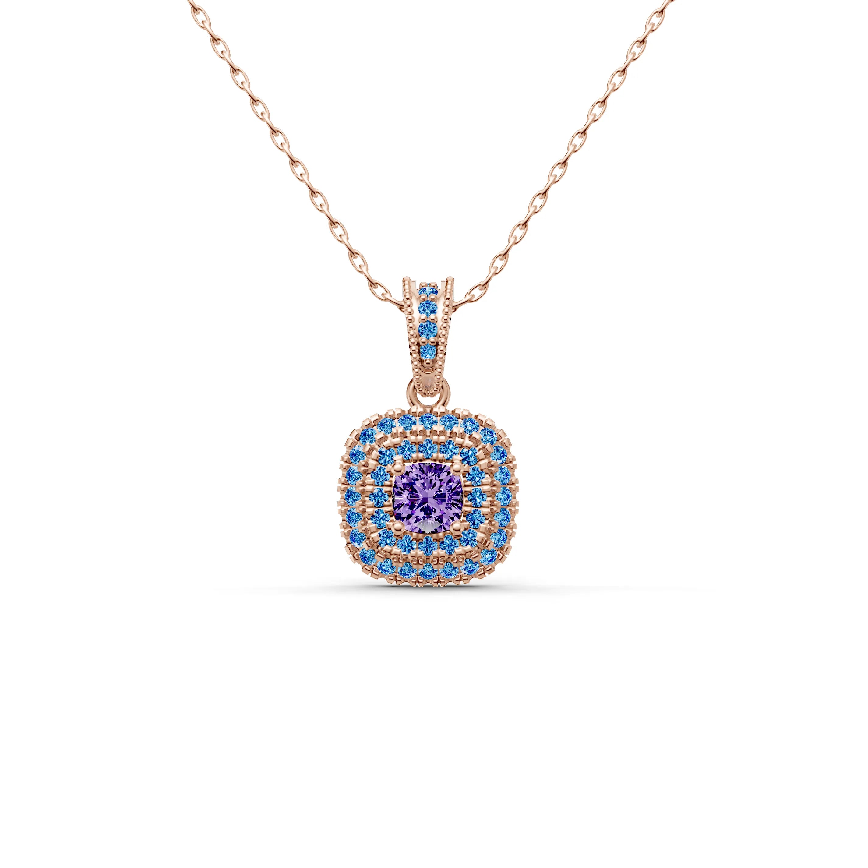 The "Luxe Square Halo Pendant" is a statement of refined beauty, offering a dazzling display of luxury in a compact design. This square pendant necklace is centered around a brilliant gemstone, cut to perfection and nestled within a square halo of micro-gemstones that create a radiant aura around the centerpiece.
