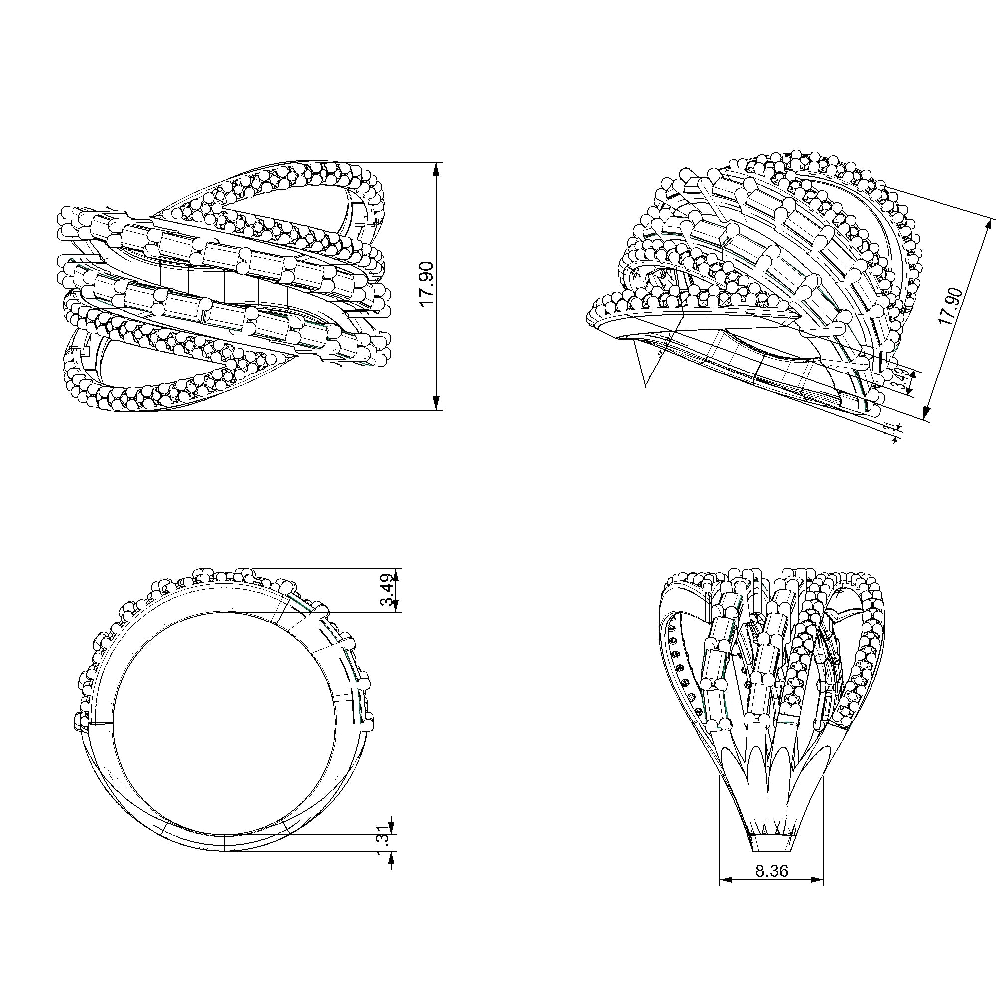 The "Metropolitan Allure Gemstone Ring" is a modern masterpiece, exemplifying the beauty of architectural design in fine jewellery. The crossover baguette ring features linear accents of precisely set stones, interlaced with rows of pave that shimmer with urban sophistication.