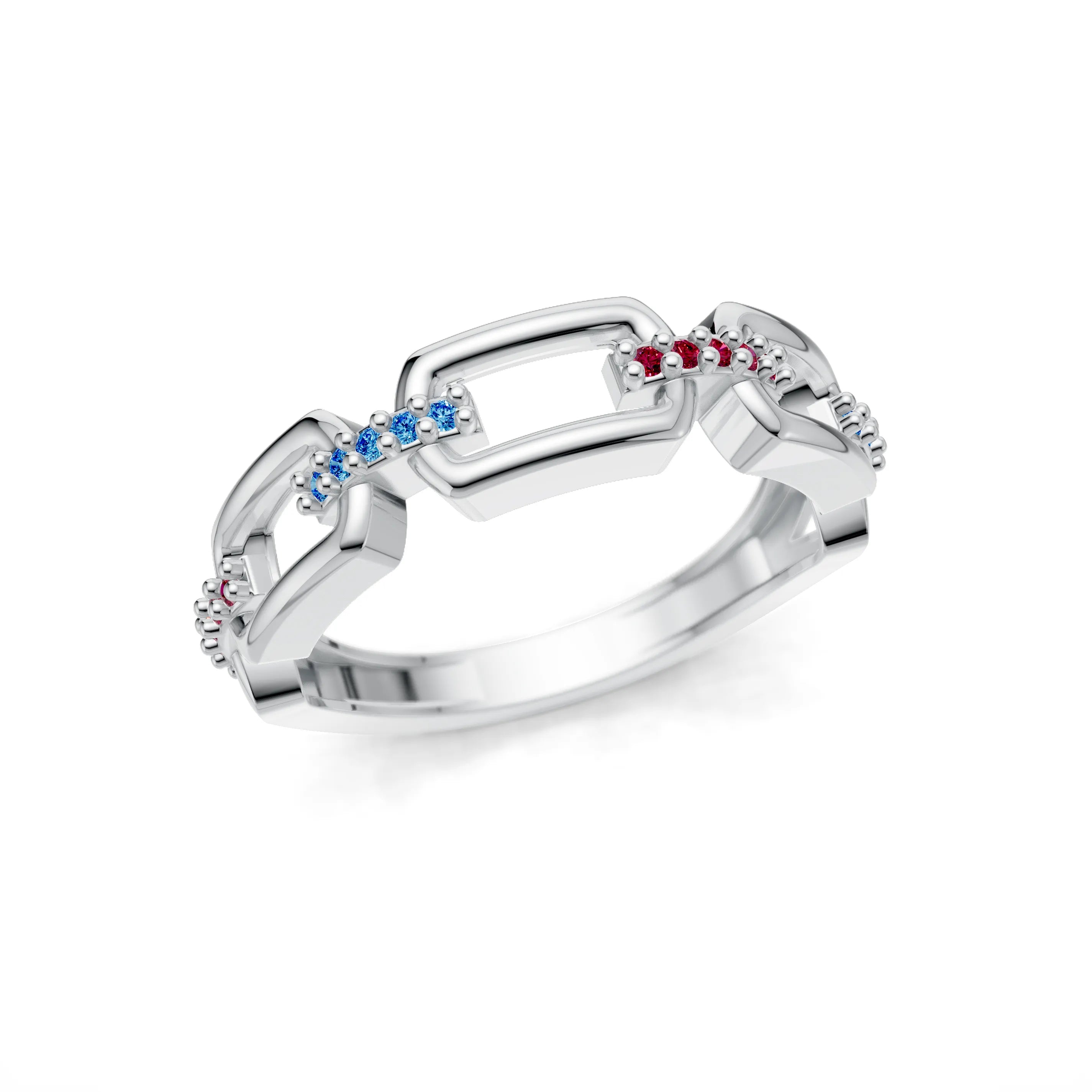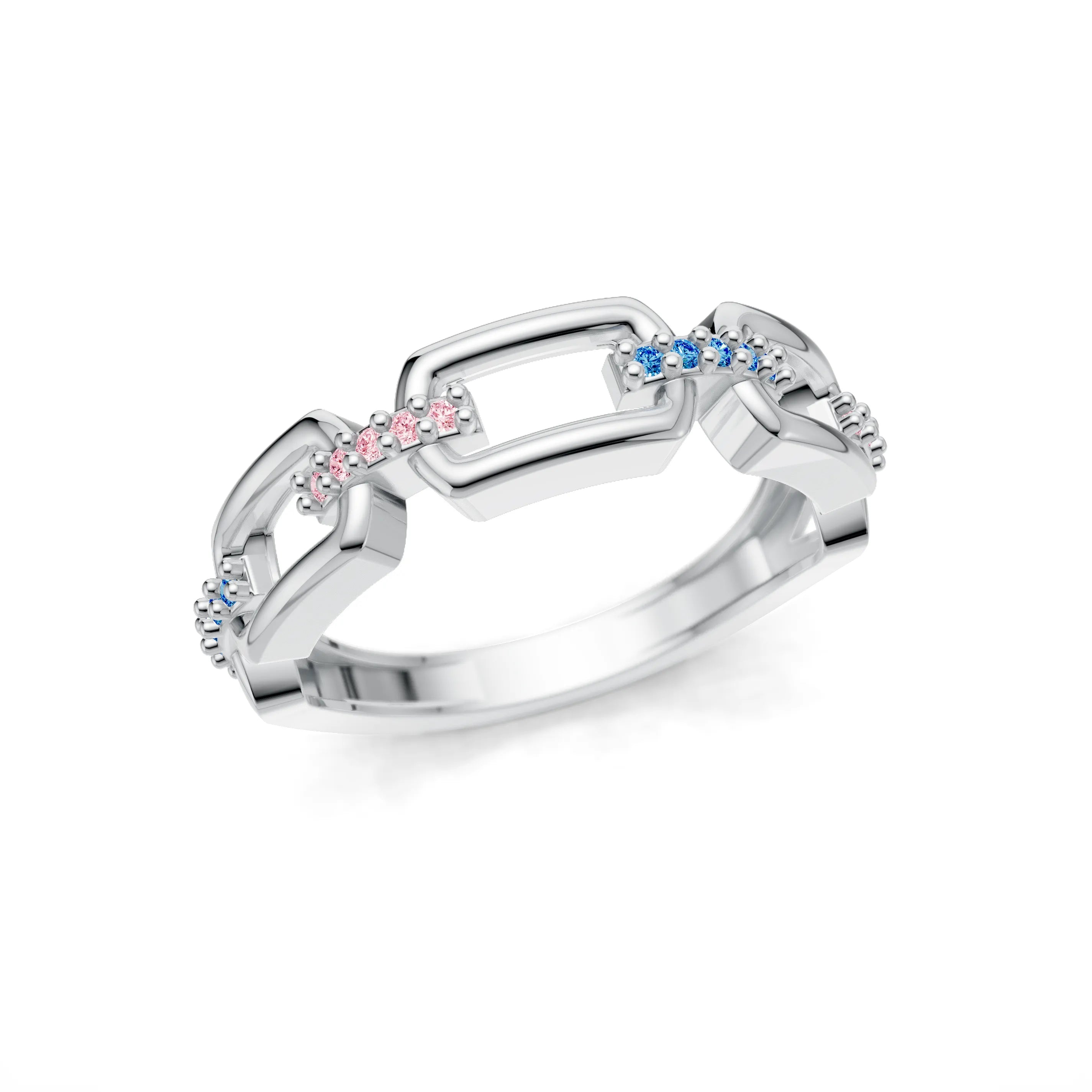 The "Modernist Spark Link Ring" is a bold statement of contemporary design and timeless romance. This captivating ring features strong geometric lines and a series of interconnecting links, each reflecting the strength and durability of a bond that is built to last.