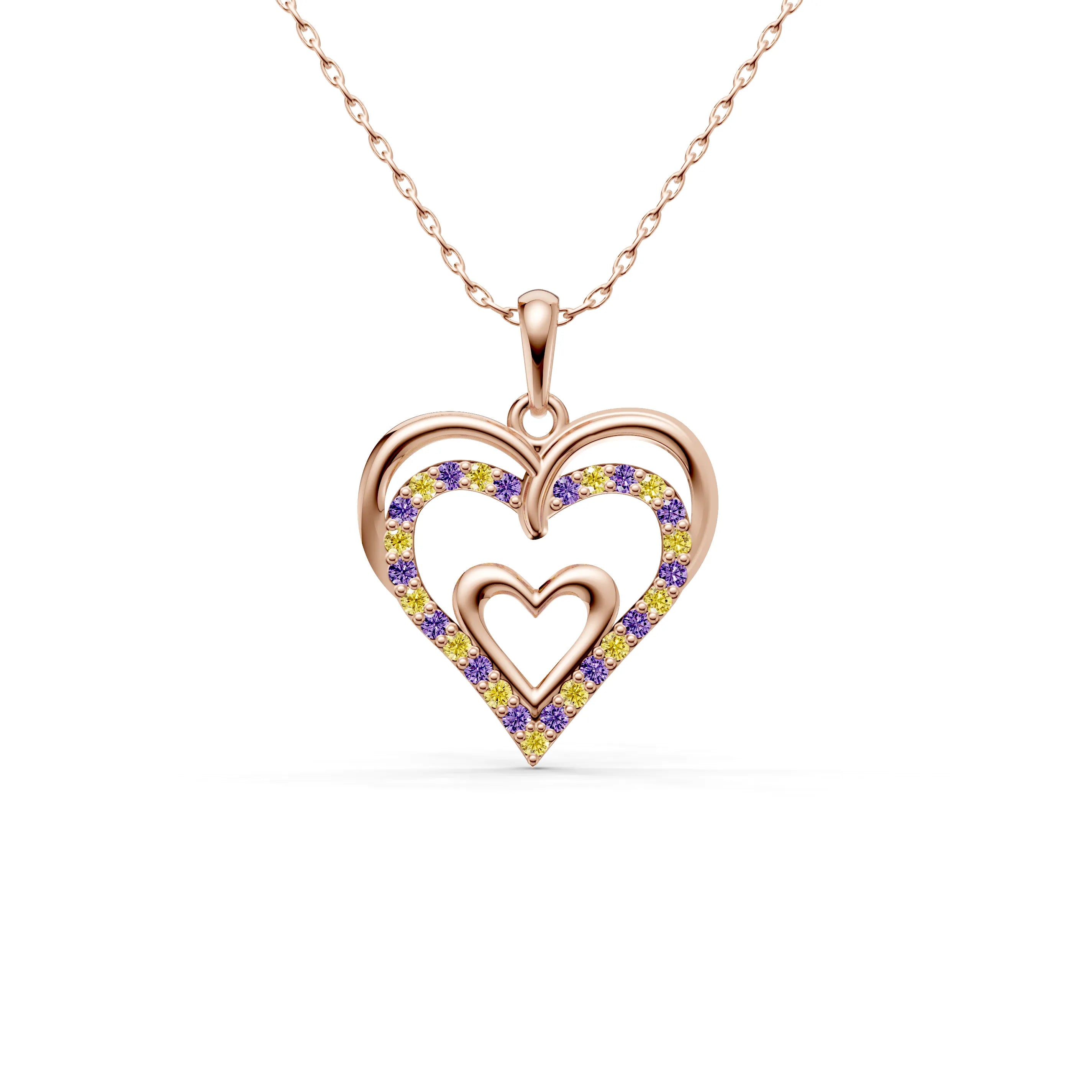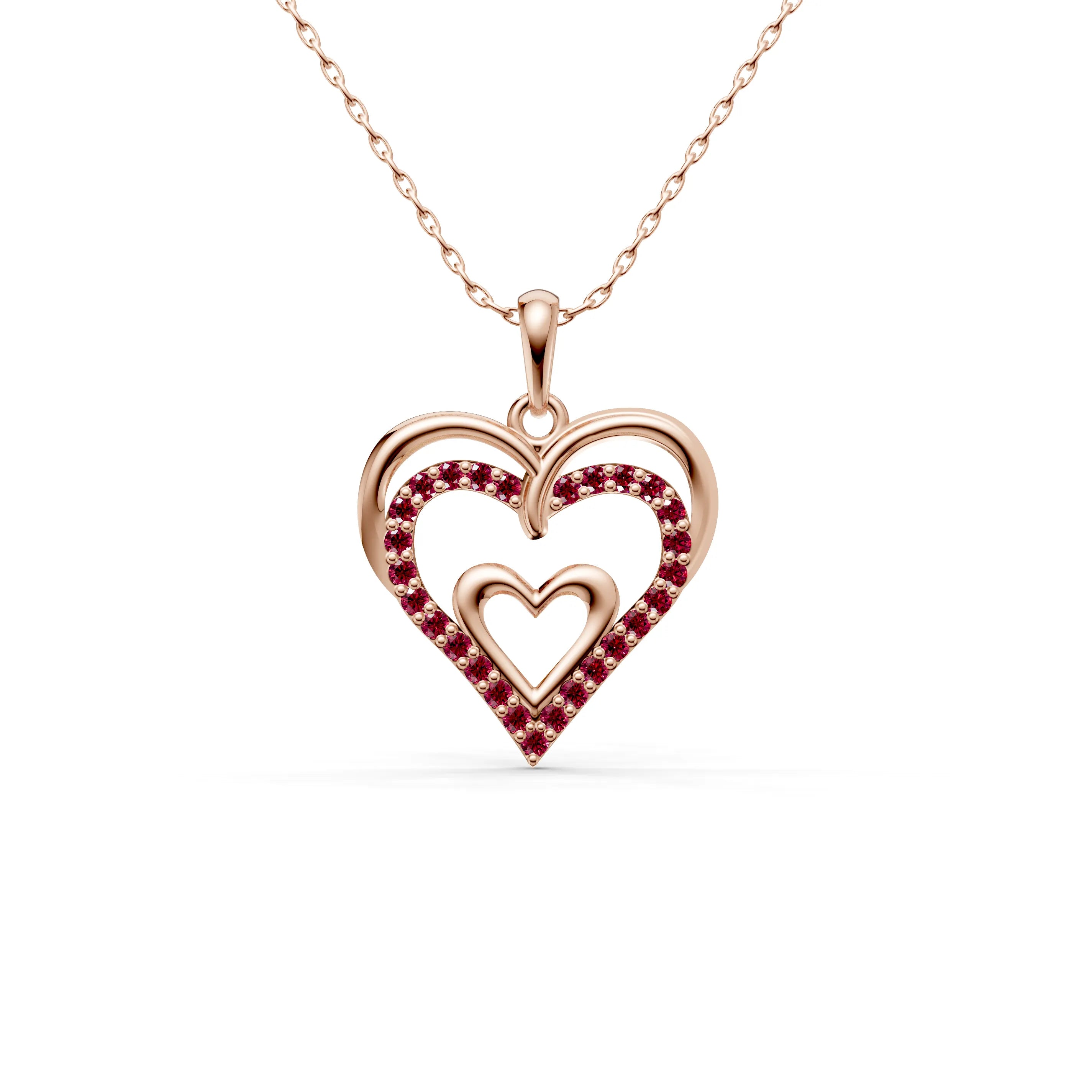 The "Nested Hearts Gleam Pendant" presents a captivating display of layered romance and elegance. This love heart necklace features a trio of hearts gracefully nestled within one another, symbolizing the growing and encompassing nature of love. The outermost heart is adorned with a glittering array of stones, creating a sparkling border that highlights the polished gold of the inner hearts.