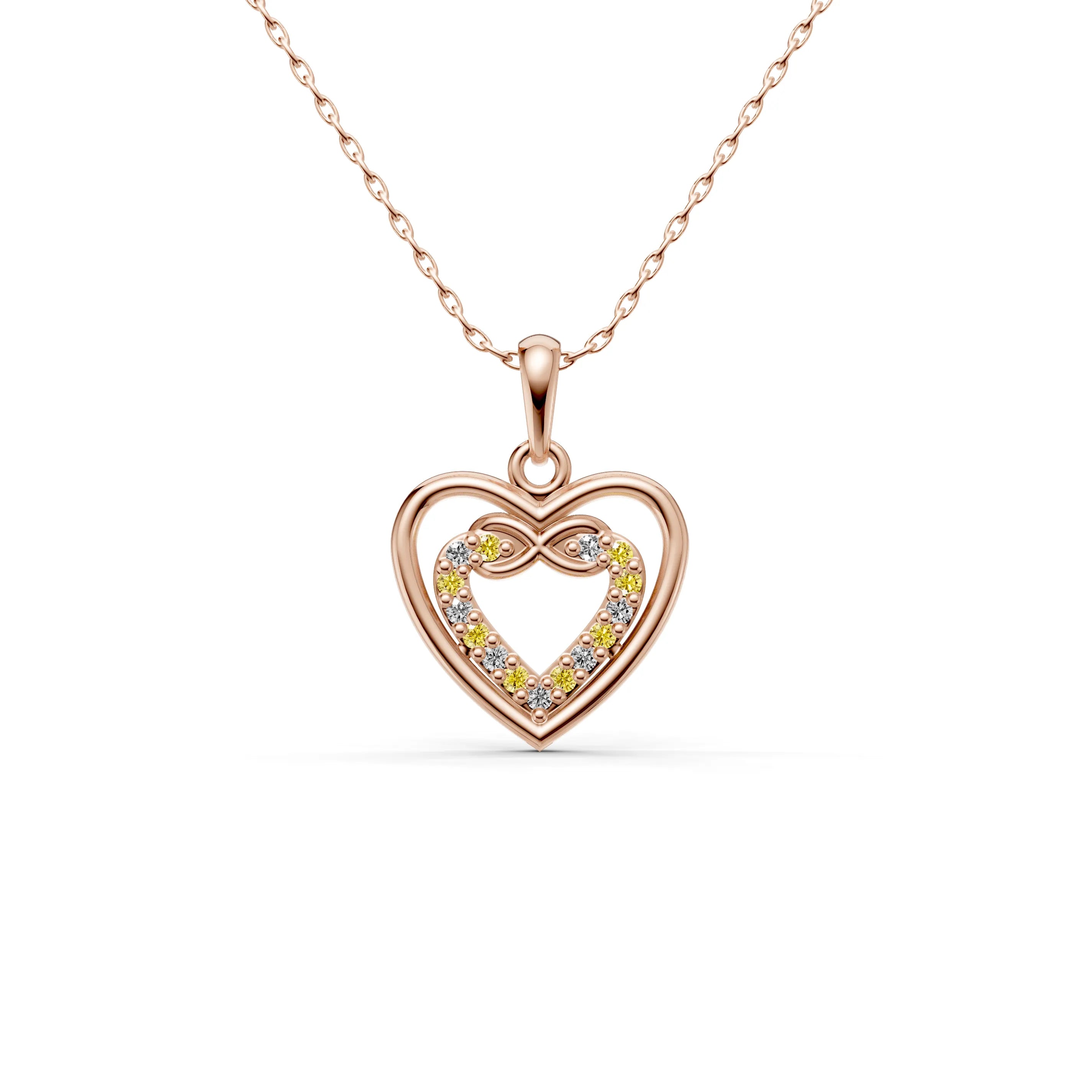 The "Nested Hearts Infinity Pendant" captures the timeless essence of enduring love with its enchanting double heart design. This heart pendant necklace features a captivating outer heart that gracefully encircles an inner heart, symbolizing the infinity of love. The inner heart is beautifully highlighted with stones that bring a dazzling brilliance to the piece, akin to the sparkling light of unwavering affection.