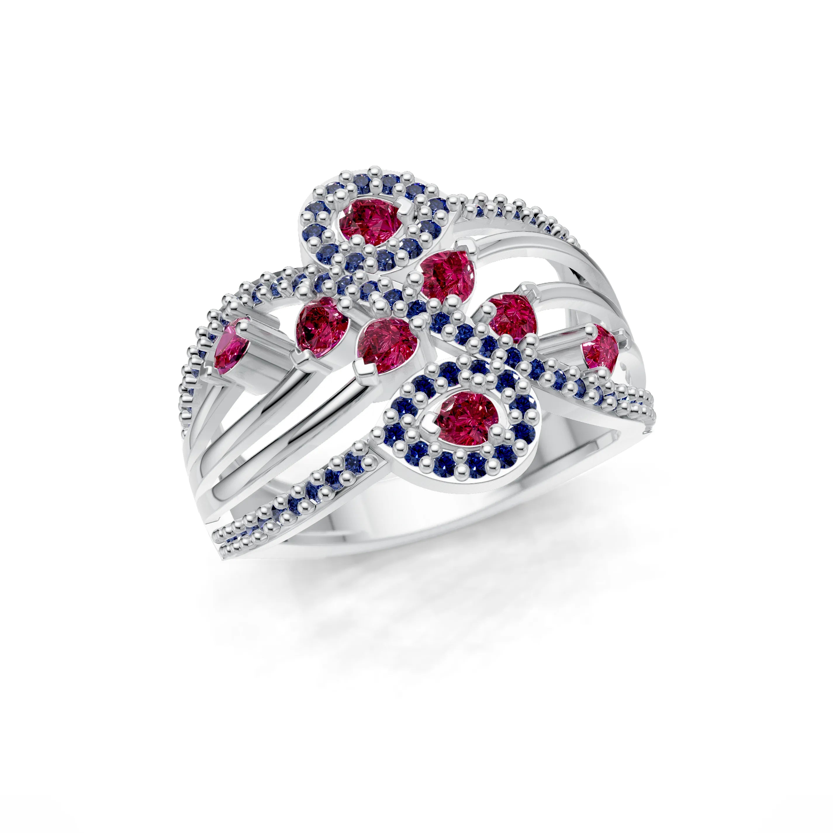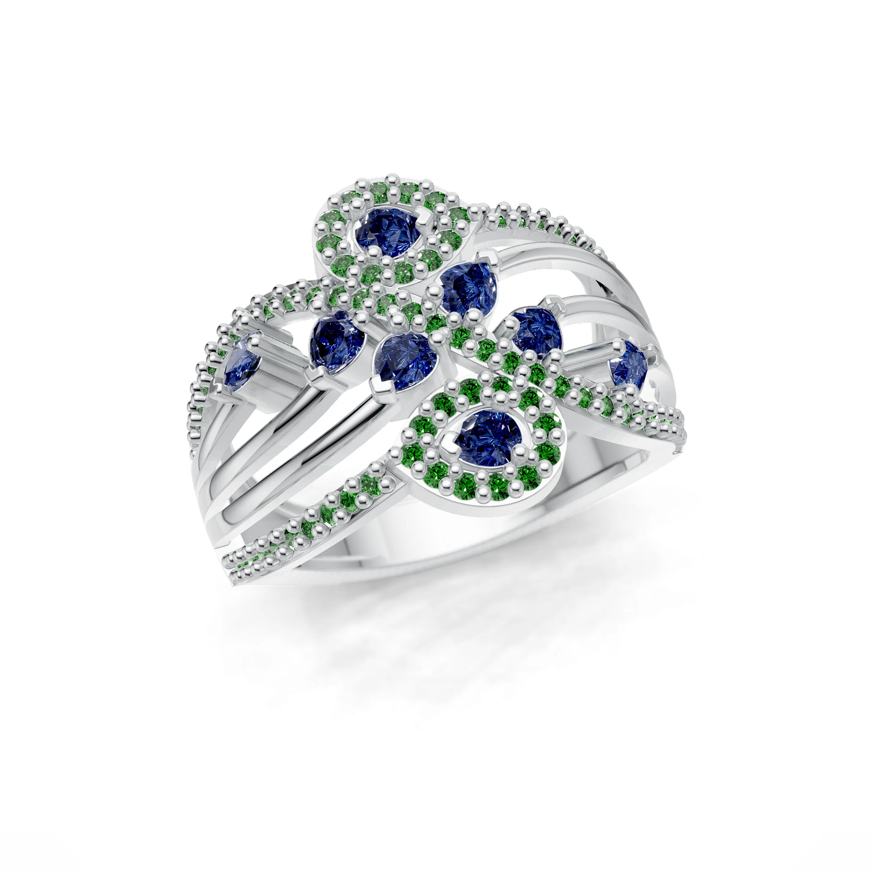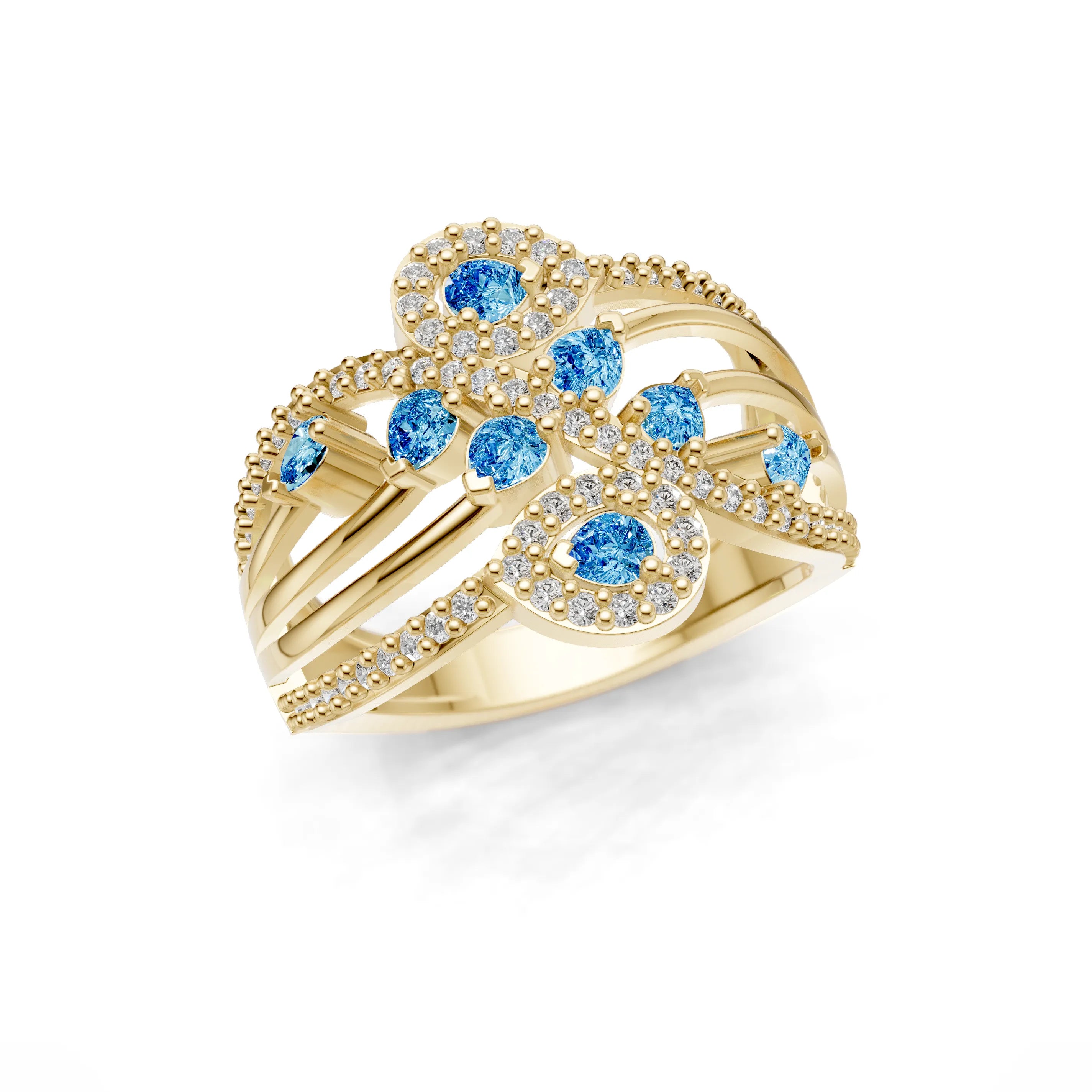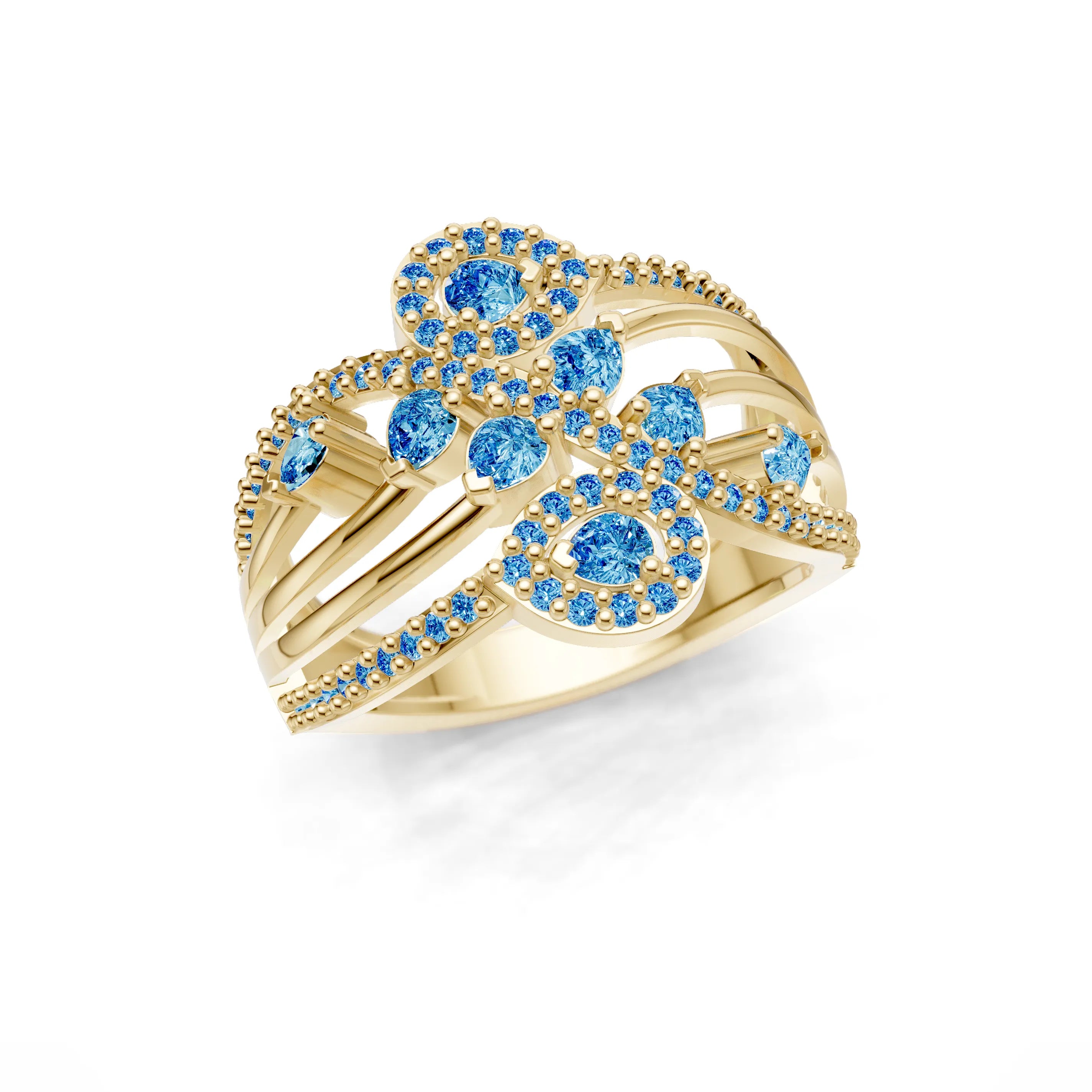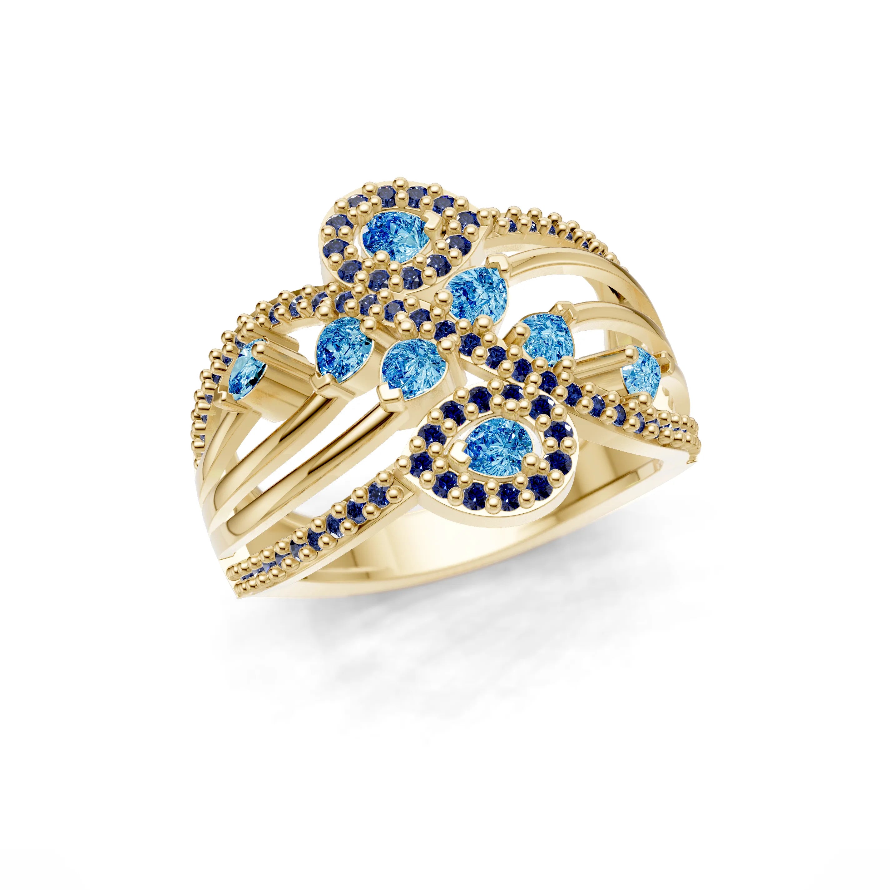 As a golden ring, it radiates warmth and opulence, making it a perfect accompaniment to any attire. Its unique gemstone arrangement makes it an excellent statement piece for those who dare to wear something out of the ordinary yet utterly captivating.