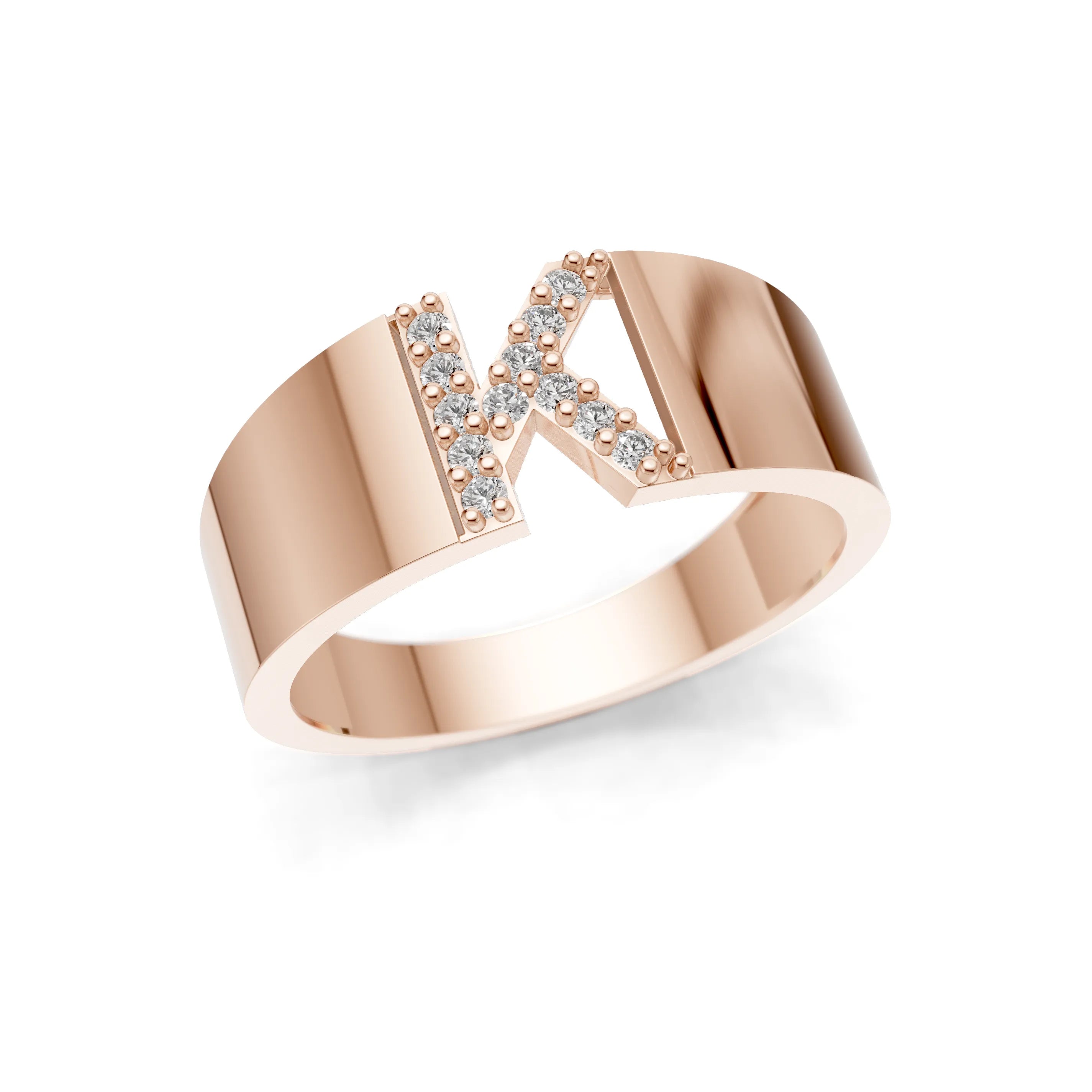 Settings and Styles: Prong Setting: Enhances light reflection for dazzling brilliance. Bezel Setting: Provides a sleek and secure design, perfect for everyday elegance. Split Shank: Features a band that splits at the shoulders, adding a touch of contemporary flair. Vintage Style: Combines intricate details and milgrain edges for a classic, timeless look. Solitaire Style: Focuses all attention on the initial "K" and its surrounding gemstones, a true statement piece. Occasions and Versatility: Designed for both men and women, the Refined Initial "K" Gold Signet Ring is perfect for celebrating anniversaries, milestone birthdays, graduations, personal achievements, and special events. Its versatile design makes it suitable for everyday wear, formal occasions, casual outings, and sophisticated gatherings, adding a touch of luxury to any ensemble. This ring is a testament to refined taste and individual style, making it a cherished addition to any jewellery collection.