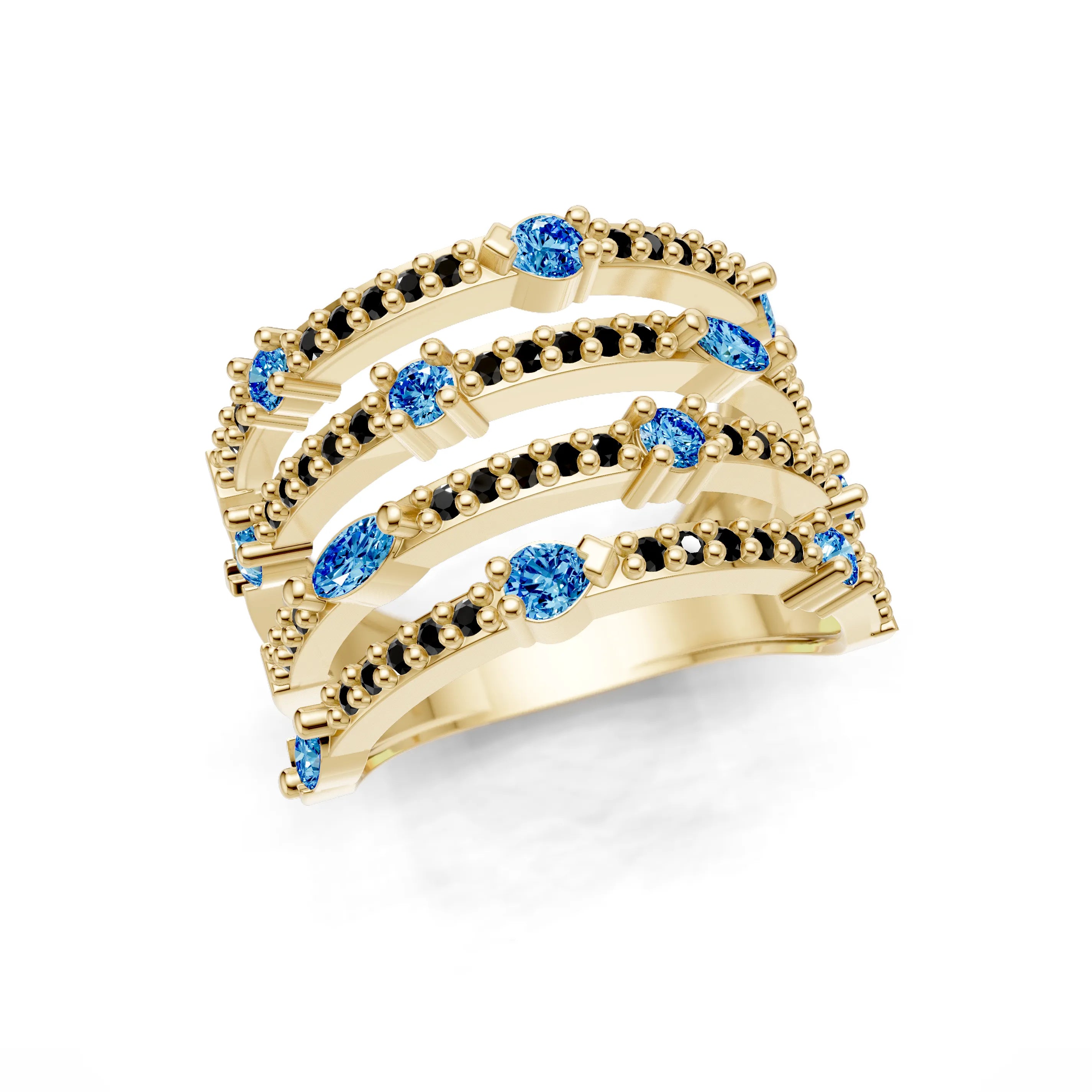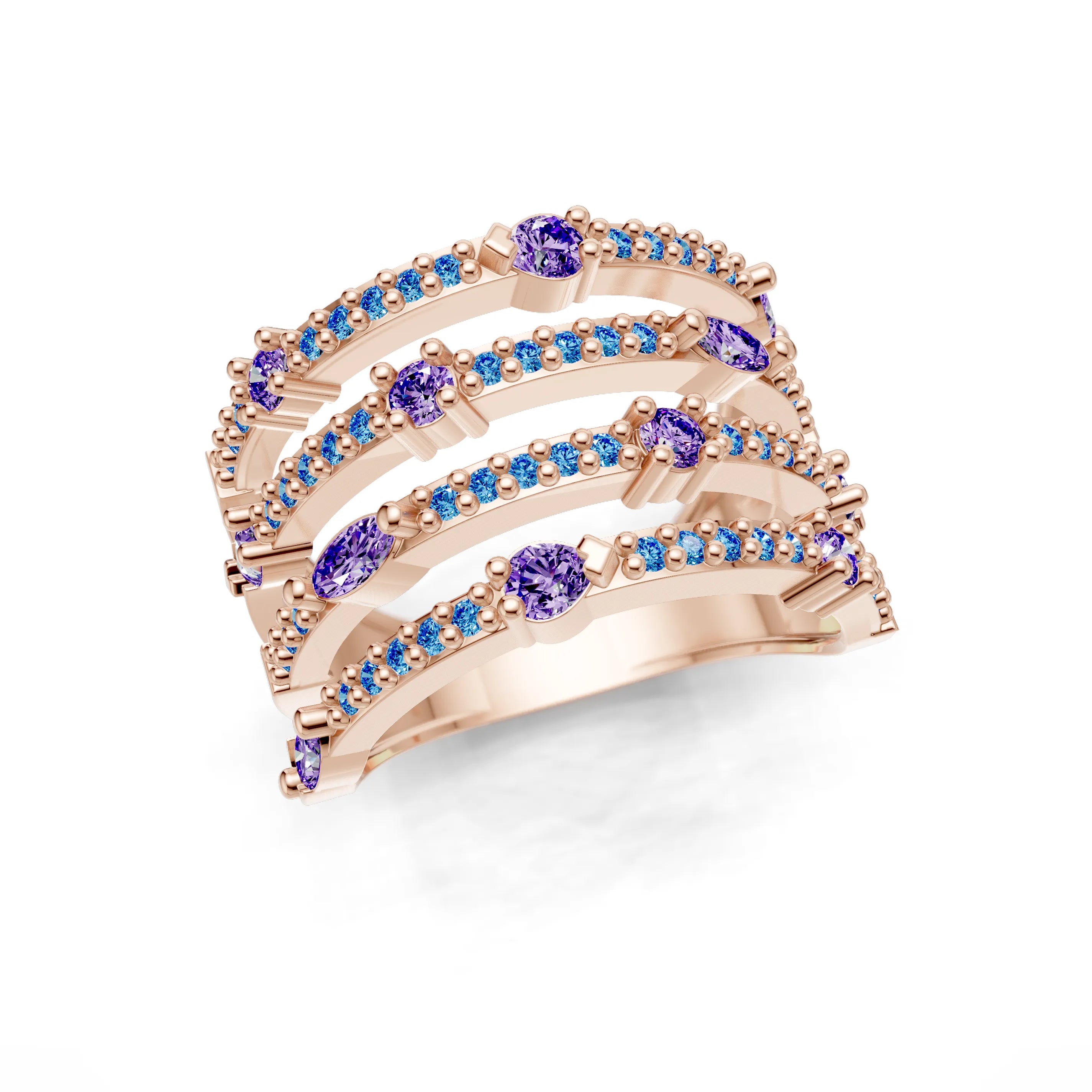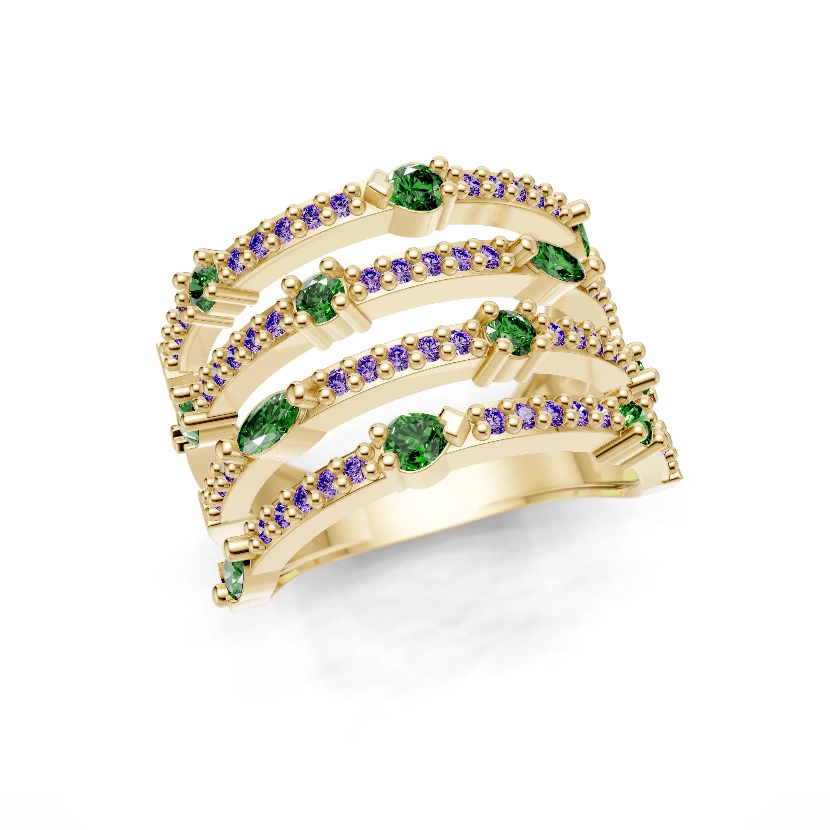 Each tier of this gemstone ring is intricately detailed, offering depth and a multifaceted sparkle that catches the light with every movement. It's a statement jewelry piece that commands attention, suitable for those special occasions where you want to stand out such as an evening gala or a wedding reception.