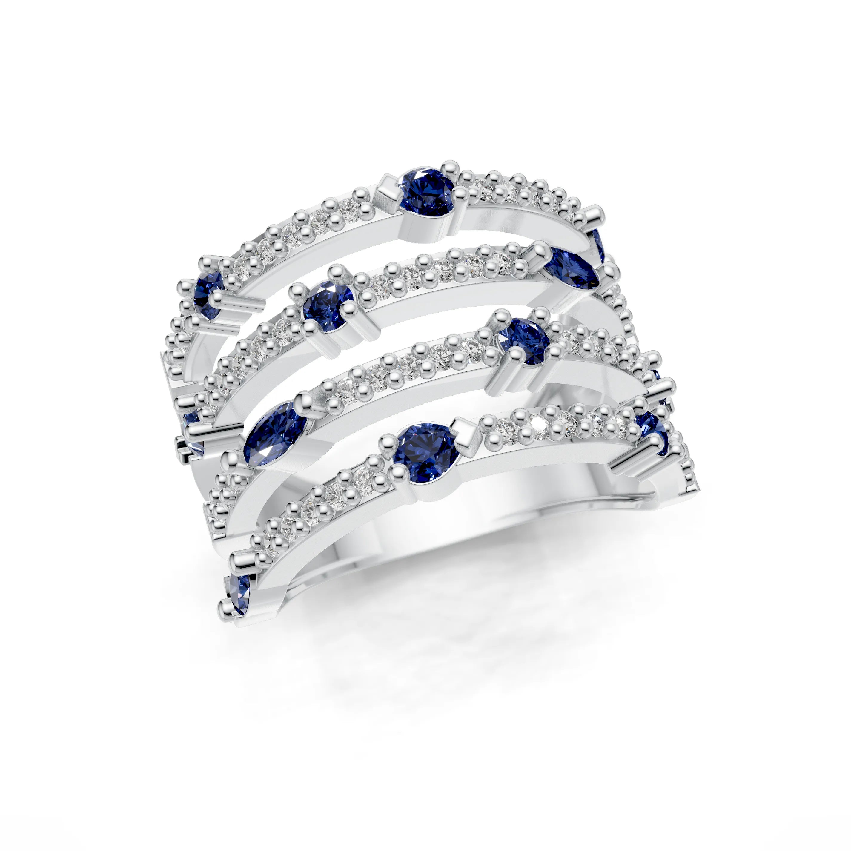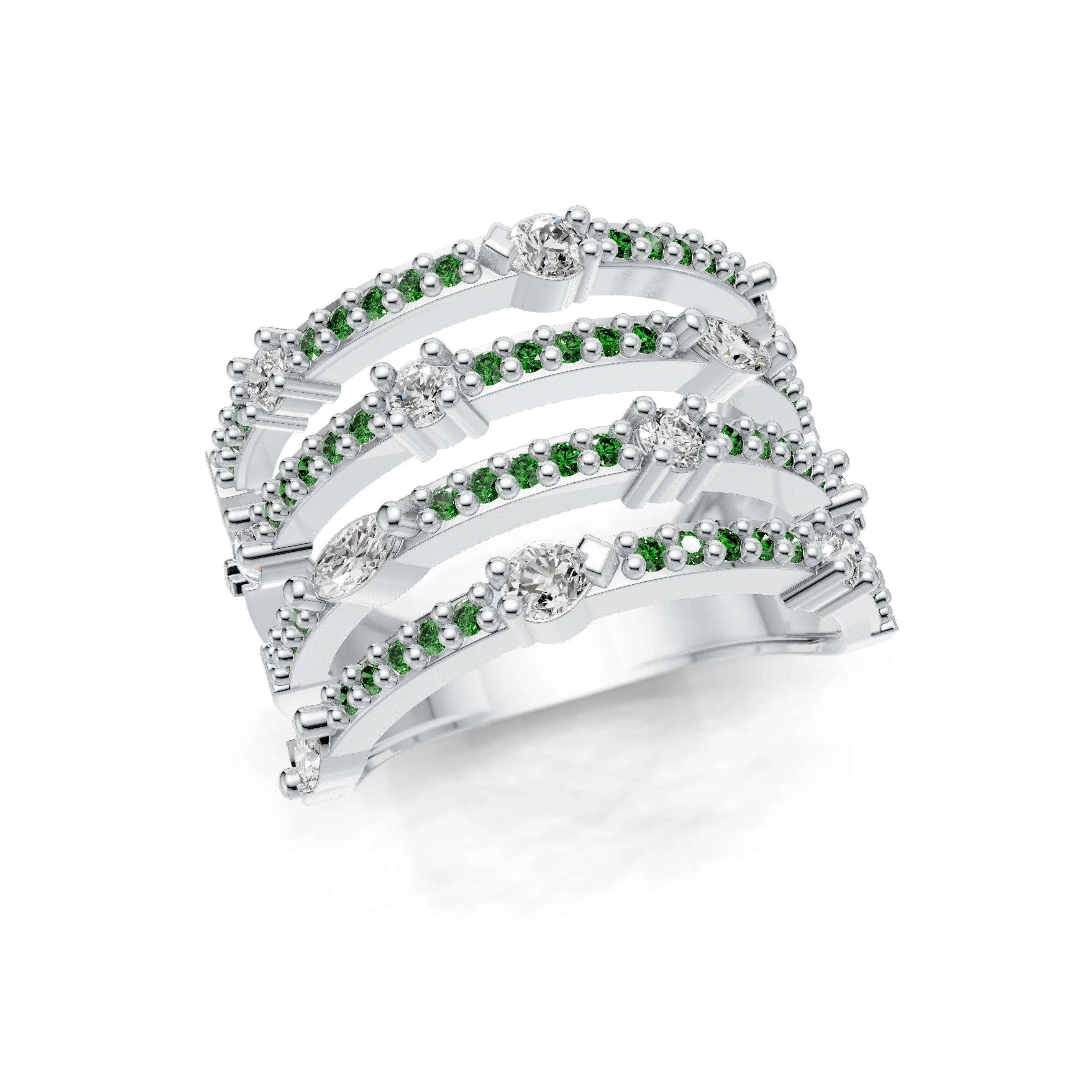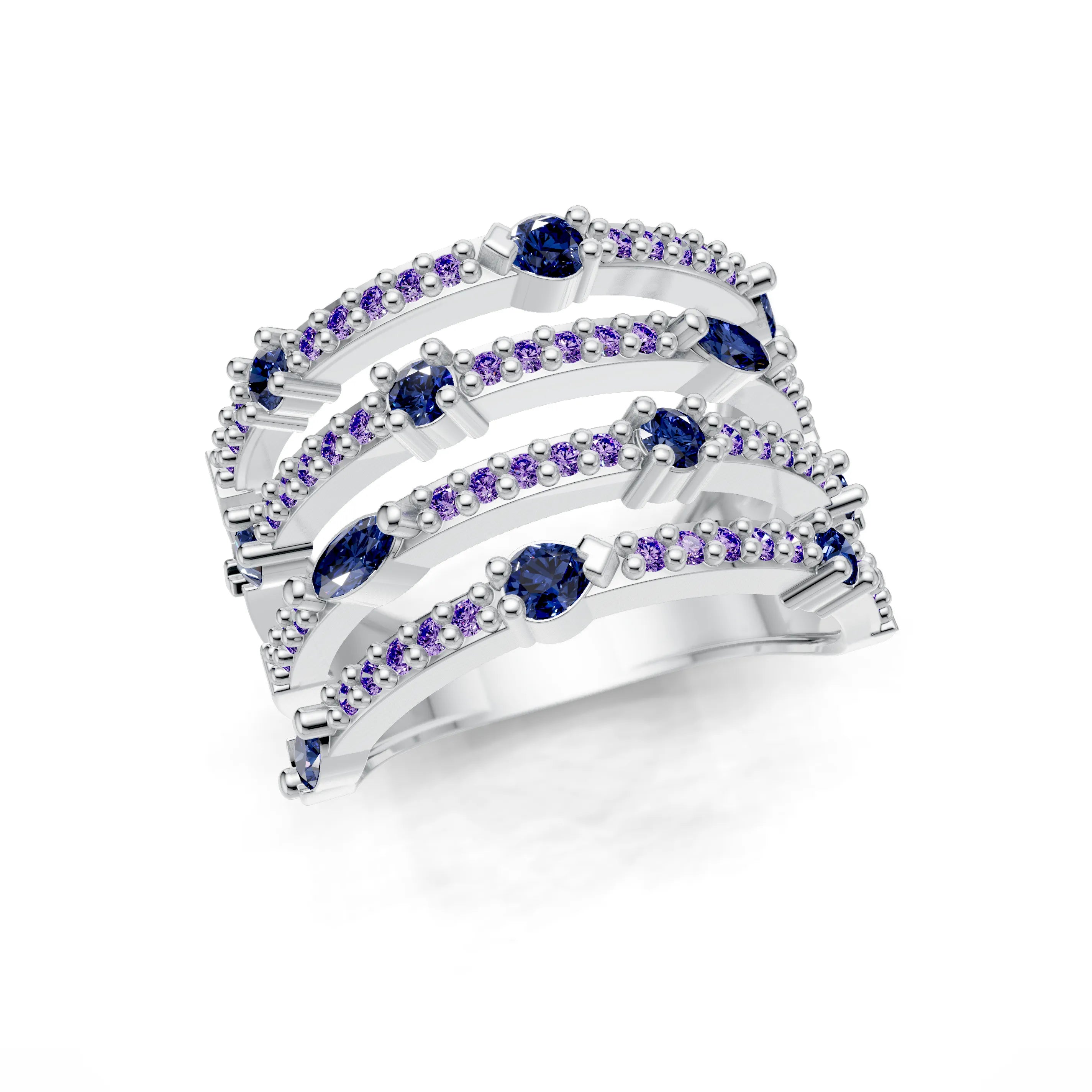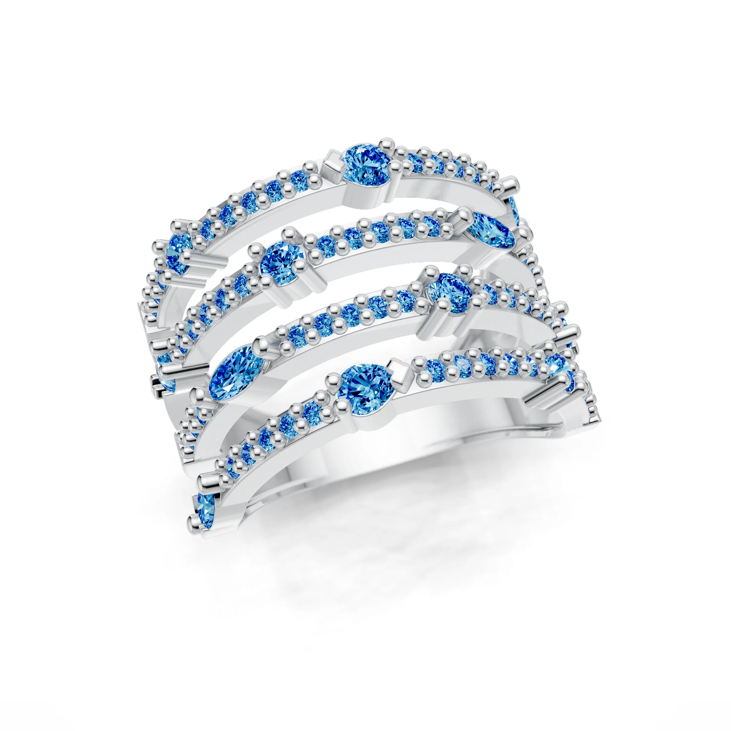 Each tier of this gemstone ring is intricately detailed, offering depth and a multifaceted sparkle that catches the light with every movement. It's a statement jewelry piece that commands attention, suitable for those special occasions where you want to stand out such as an evening gala or a wedding reception.
