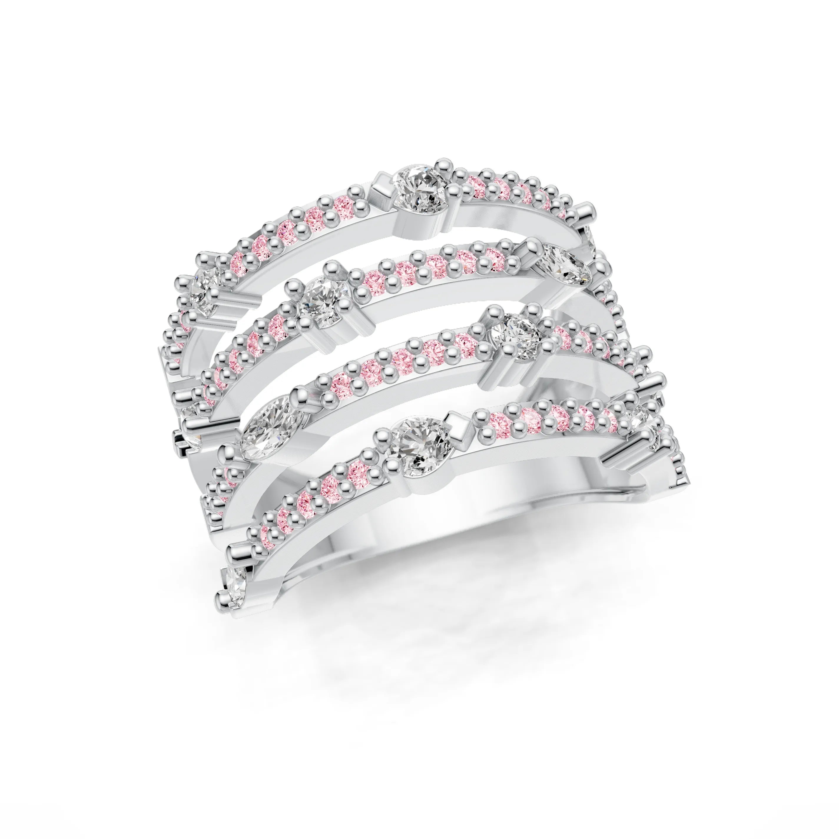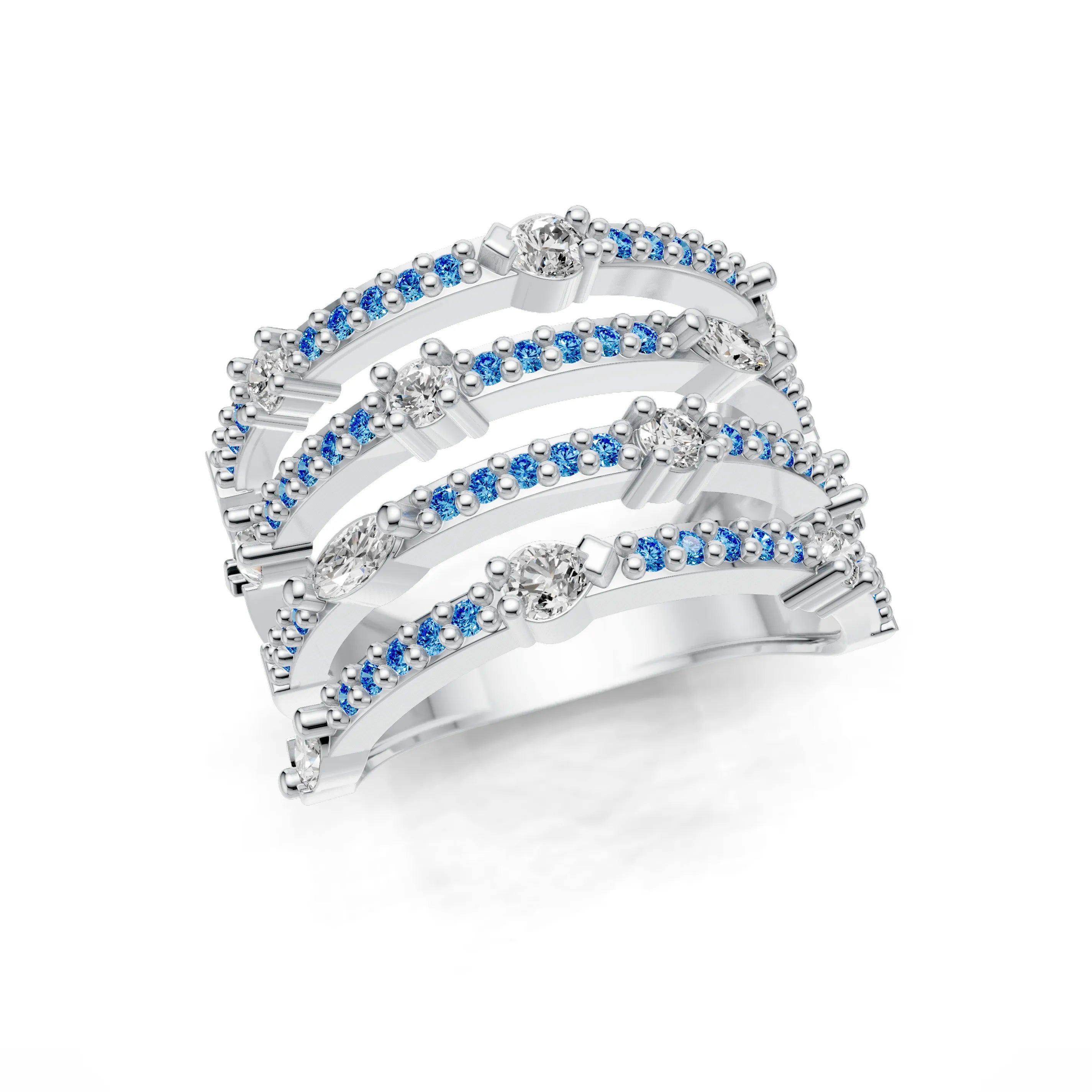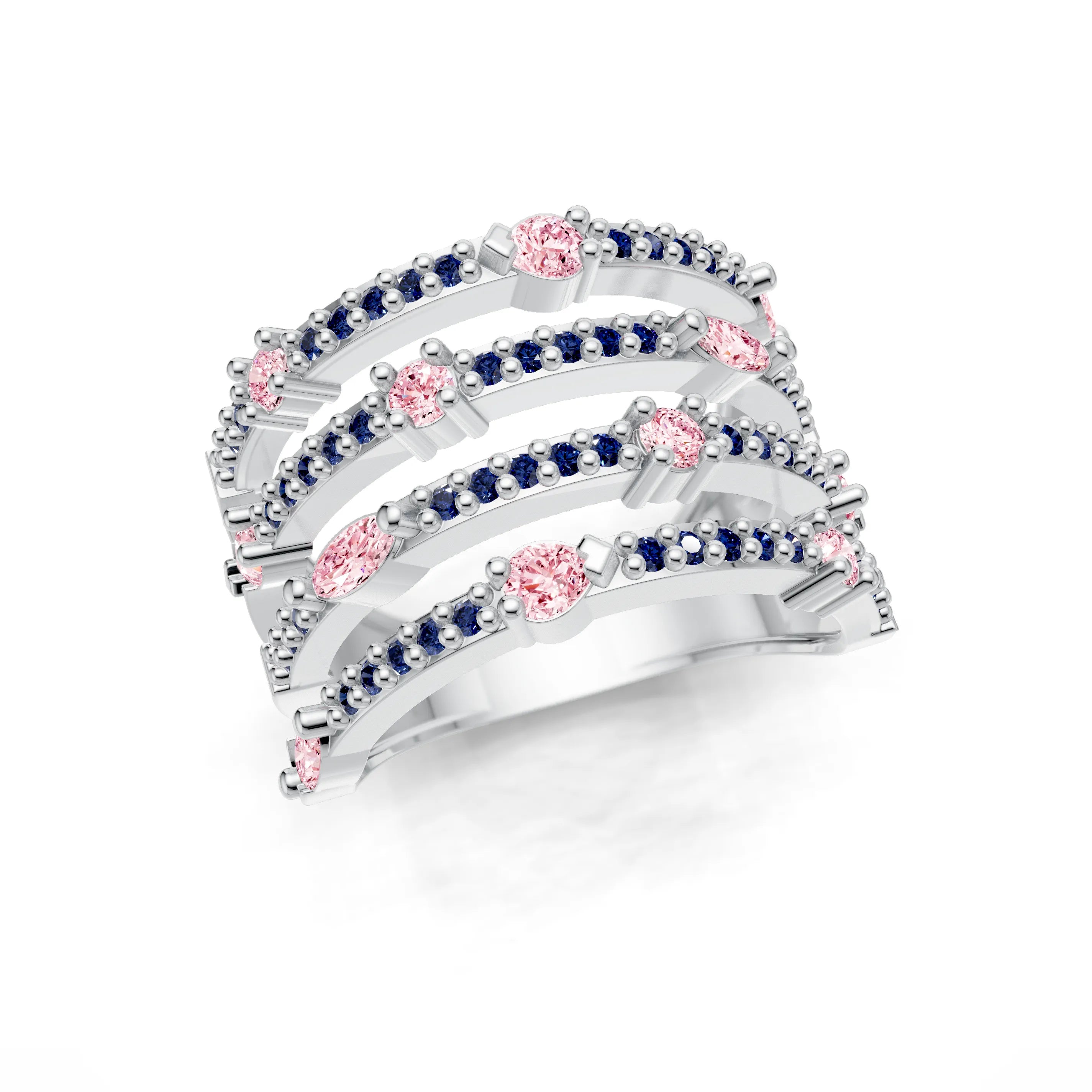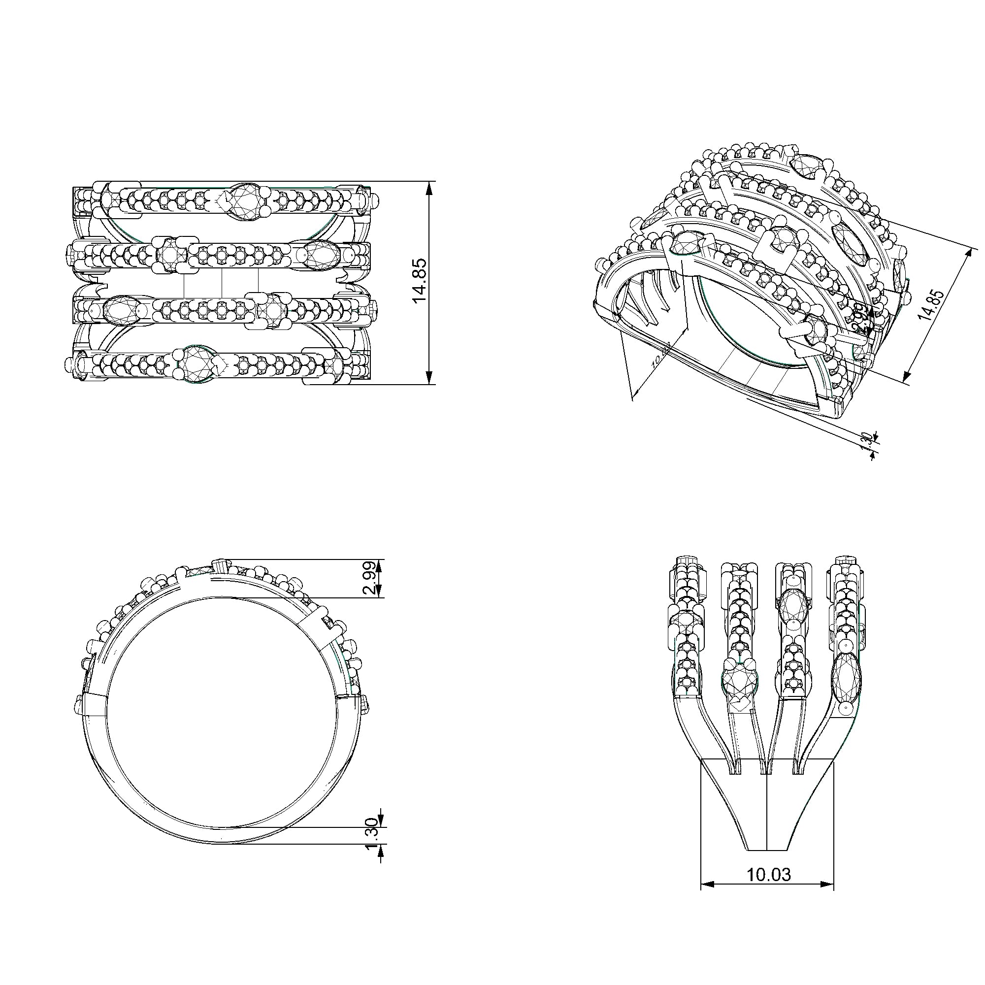 The "Regal Coronet Ornate Ring" is a majestic piece that exudes nobility and splendor. It's a multi-level pave ring that features layers of gemstones cascading in a regal formation, reminiscent of a monarch's coronet.