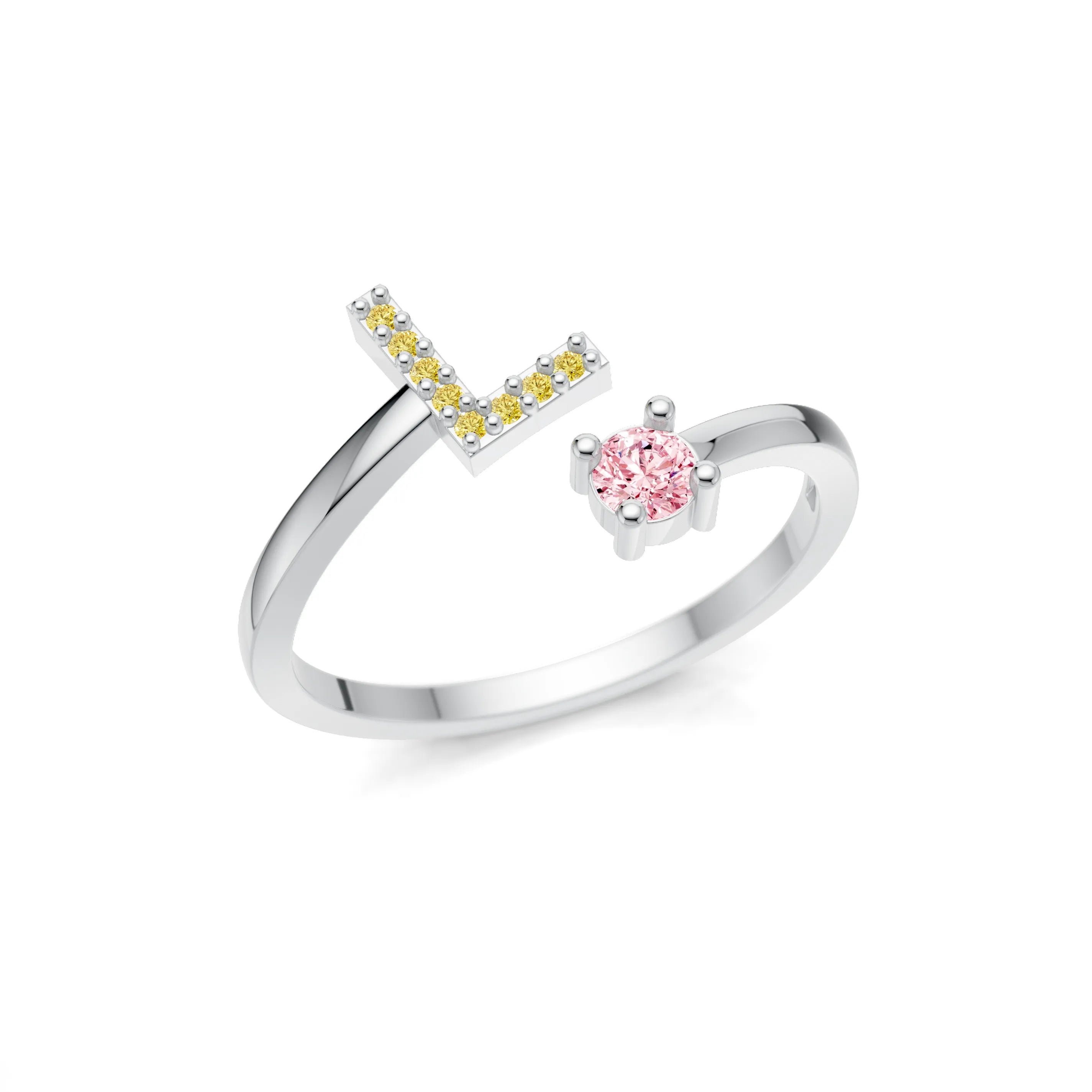 Celebrate your unique style with our Shimmering Initial "L" Gold Ring, a stunning piece of fine jewellery designed to capture attention. The centrepiece of this ring is a beautifully crafted initial "L" encrusted with radiant cubic zirconia stones, paired with a brilliant round-cut stone. Customise this ring with your choice of cubic zirconia colours, including black, aqua, white, red, purple, pink, sapphire, yellow, and green, ensuring it perfectly matches your unique style. Available in white, yellow, or rose gold, this ring embodies timeless elegance.
