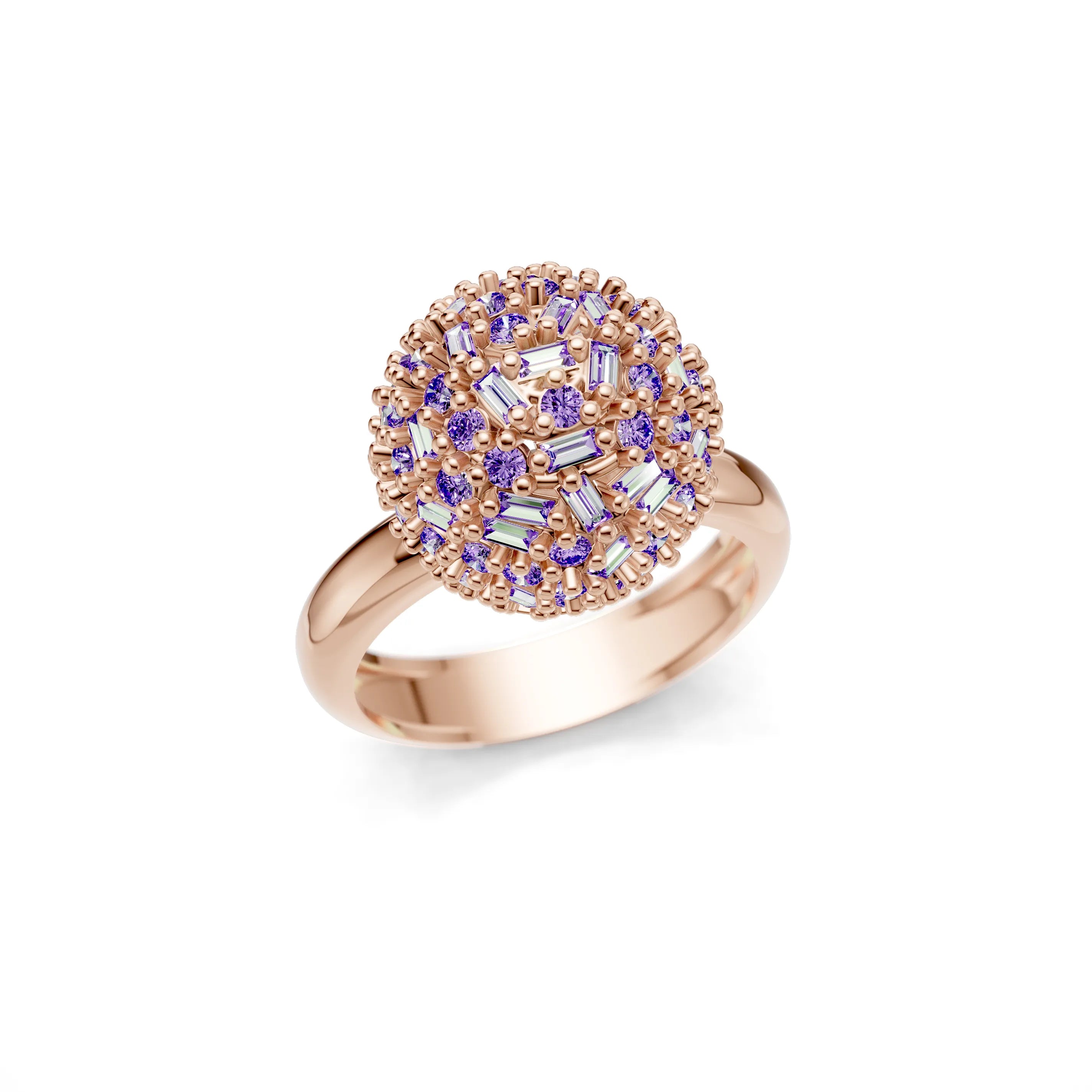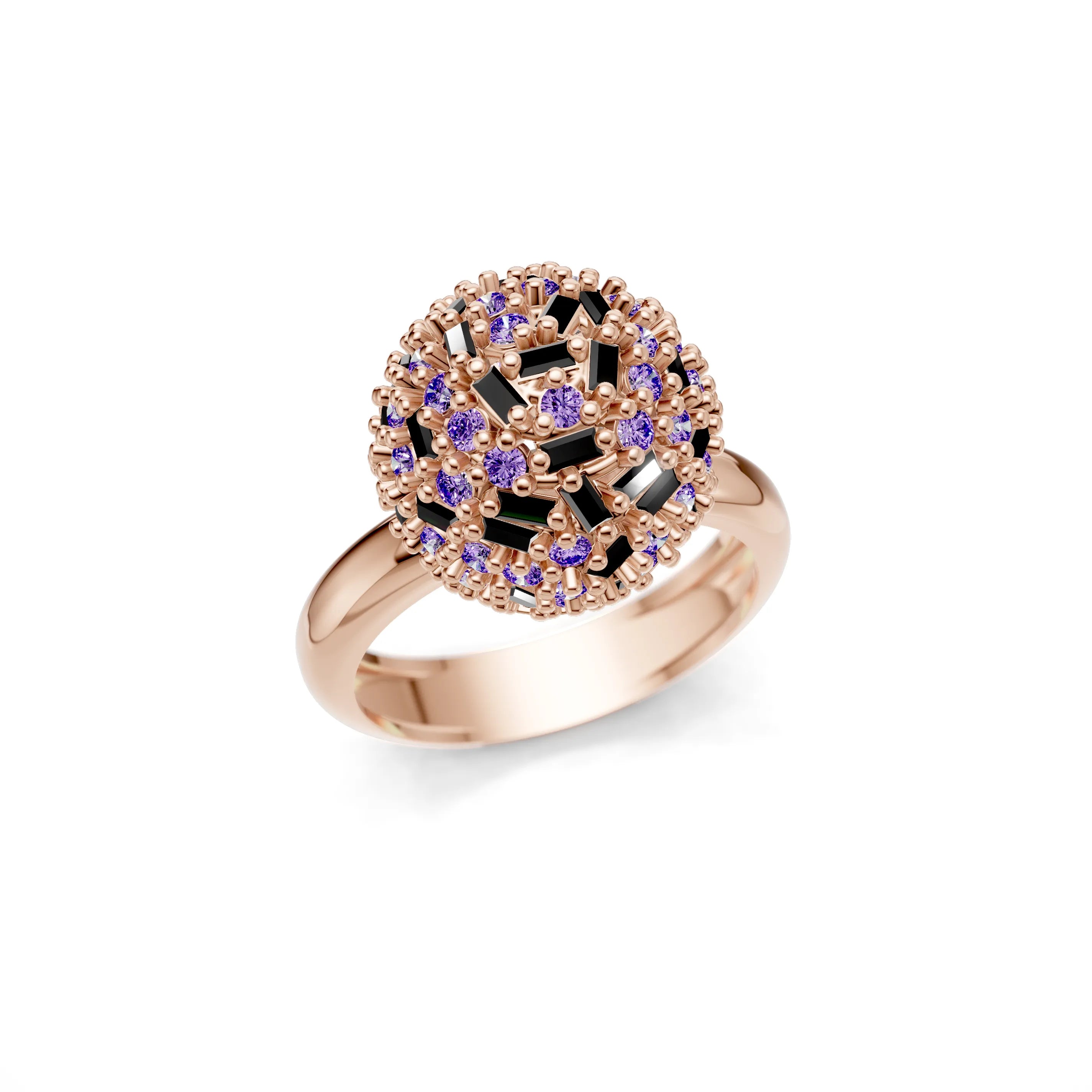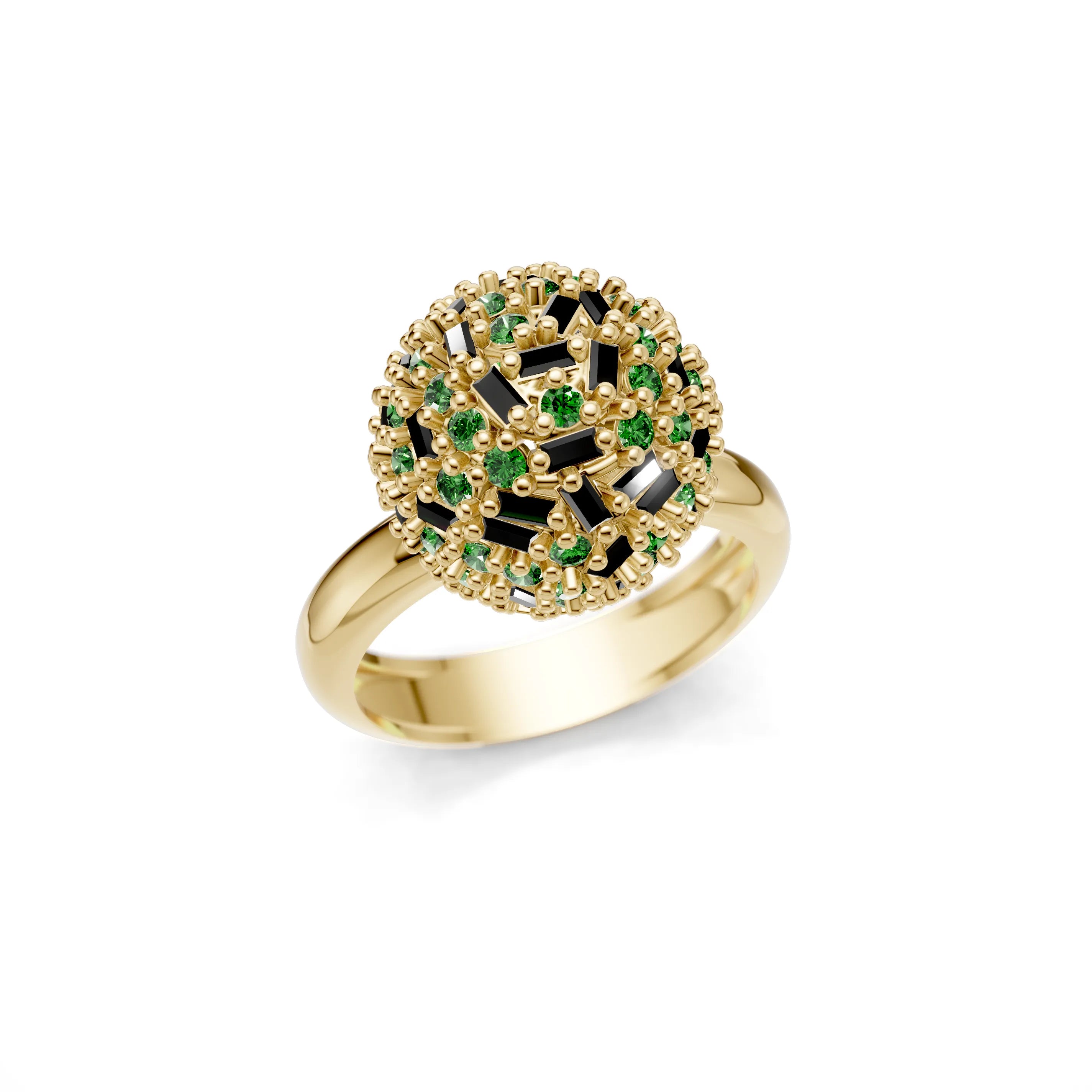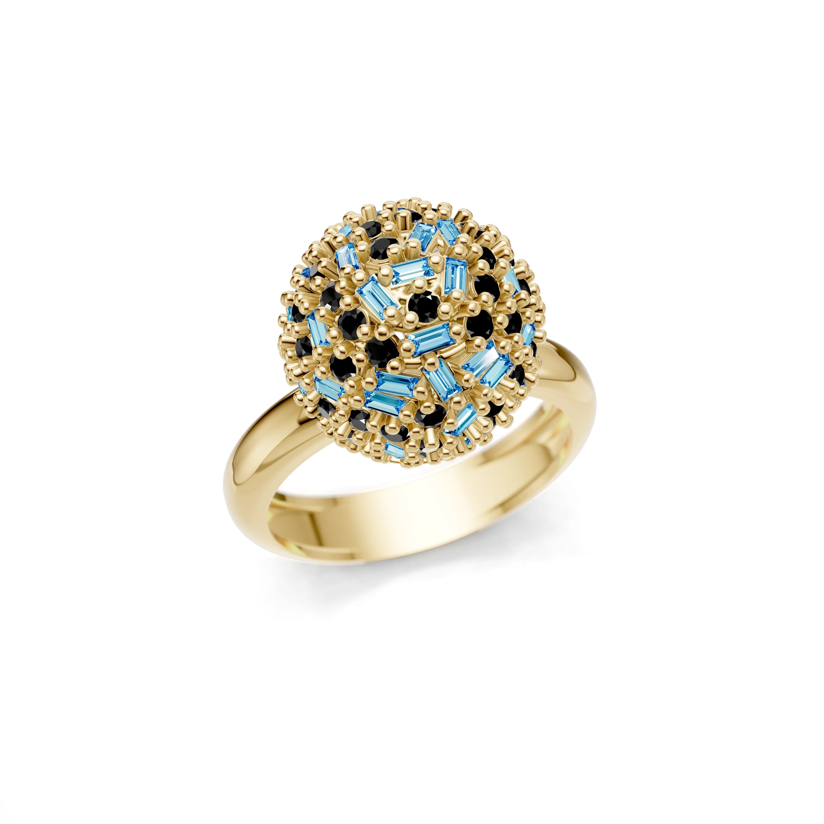 The "Solaris Splendor Ring" exudes opulence with its detailed pave setting that sparkles from every angle. This sleek cocktail accessory is the epitome of evening jewelry, designed to catch the light and draw all eyes to its intricate design. Crafted as a golden designer ring, it perfectly embodies the spirit of celebration and is an essential piece for any party or glamorous event.