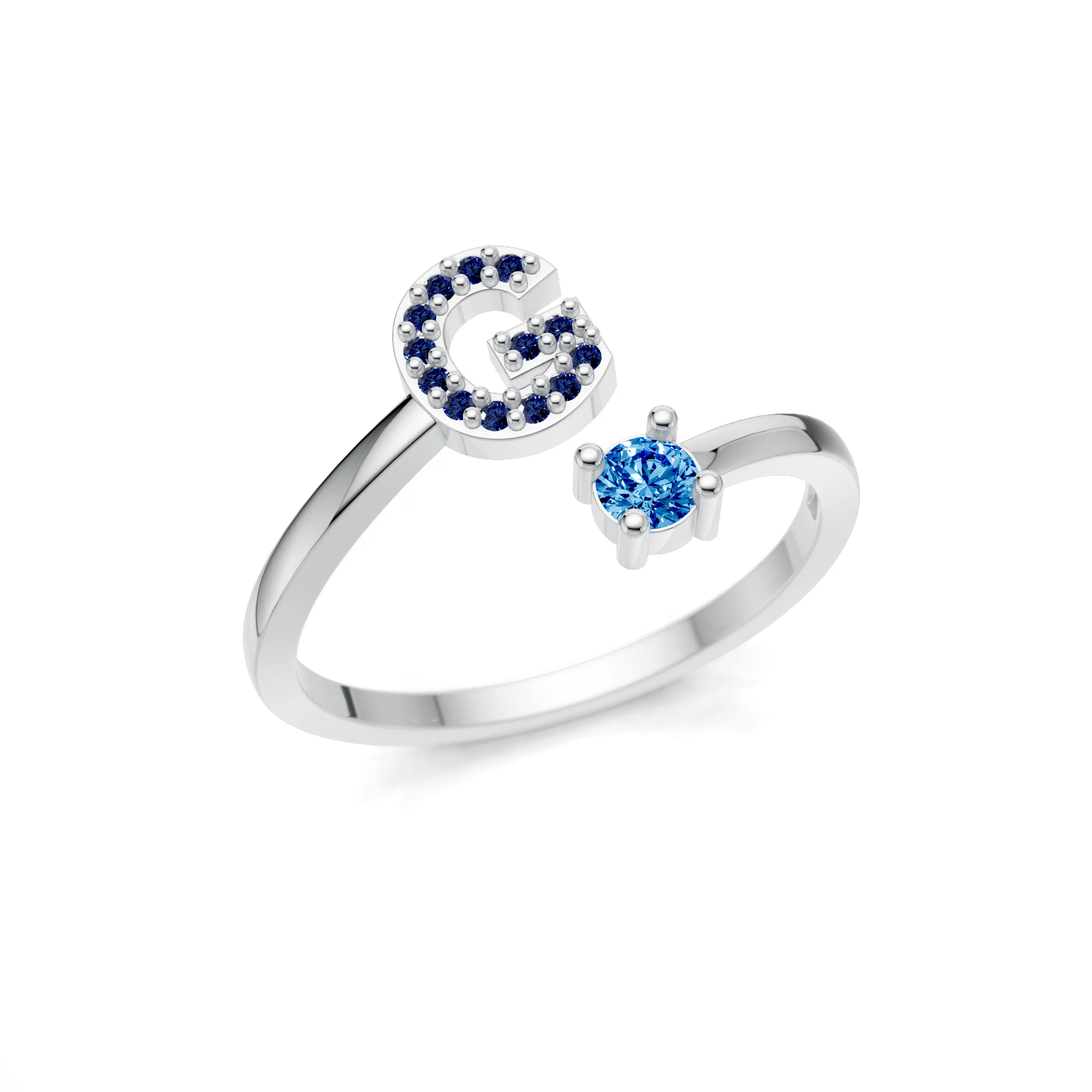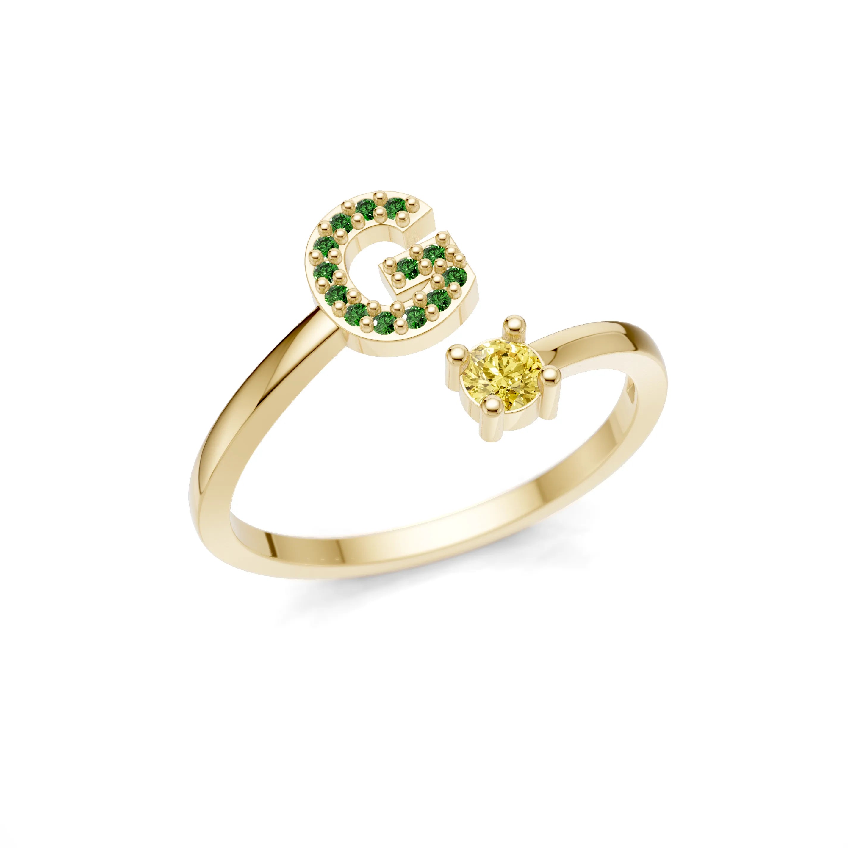 Celebrate your individuality with our stunning Sparkling Initial Gold Ring, a remarkable piece of fine jewellery designed to make every moment memorable. The centrepiece of this ring features a beautifully crafted initial encrusted with sparkling cubic zirconia stones, complemented by a brilliant round-cut stone. Customise this ring with your choice of cubic zirconia colours, including black, aqua, white, red, purple, pink, sapphire, yellow, and green, ensuring it perfectly matches your unique style. Whether it's white, yellow, or rose gold, this ring offers unmatched elegance.