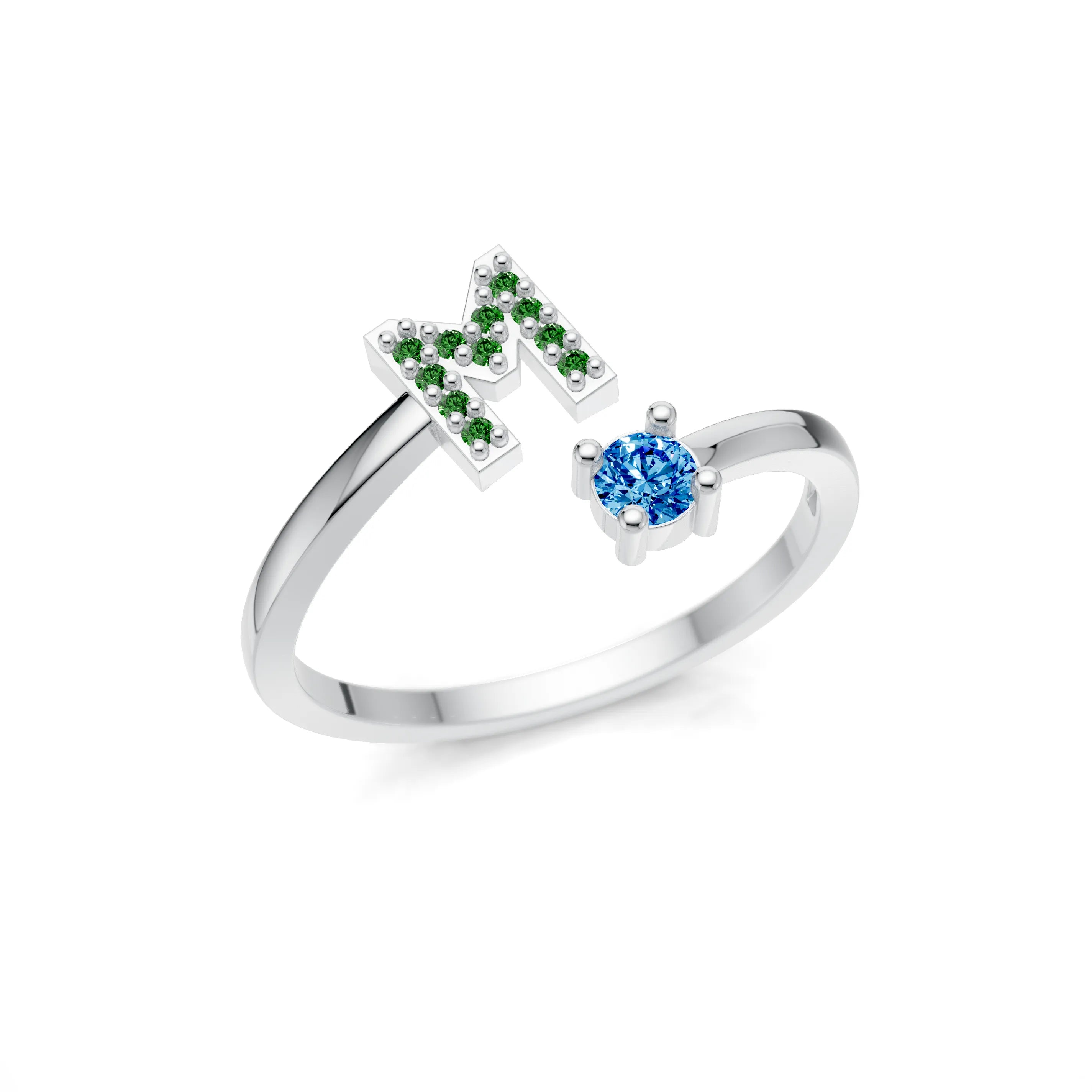 Showcase your personal style with our Sparkling Initial "M" Gold Ring, a beautiful piece of fine jewellery crafted to highlight your uniqueness. The centrepiece of this ring is a stunning initial "M" encrusted with glittering cubic zirconia stones, complemented by a brilliant round-cut stone. Customise this ring with your choice of cubic zirconia colours, including black, aqua, white, red, purple, pink, sapphire, yellow, and green, ensuring it perfectly matches your unique style. Available in white, yellow, or rose gold, this ring epitomises timeless elegance.
