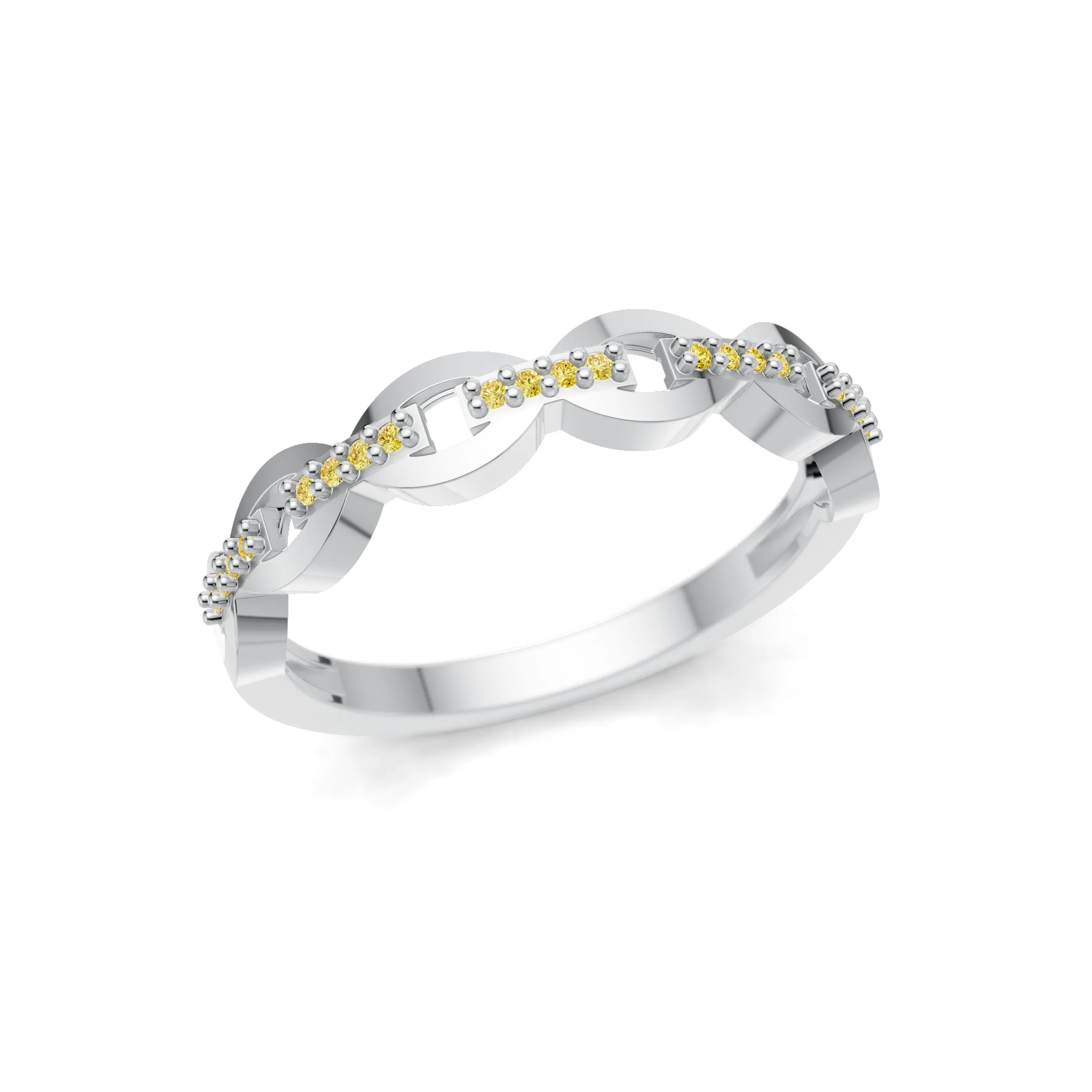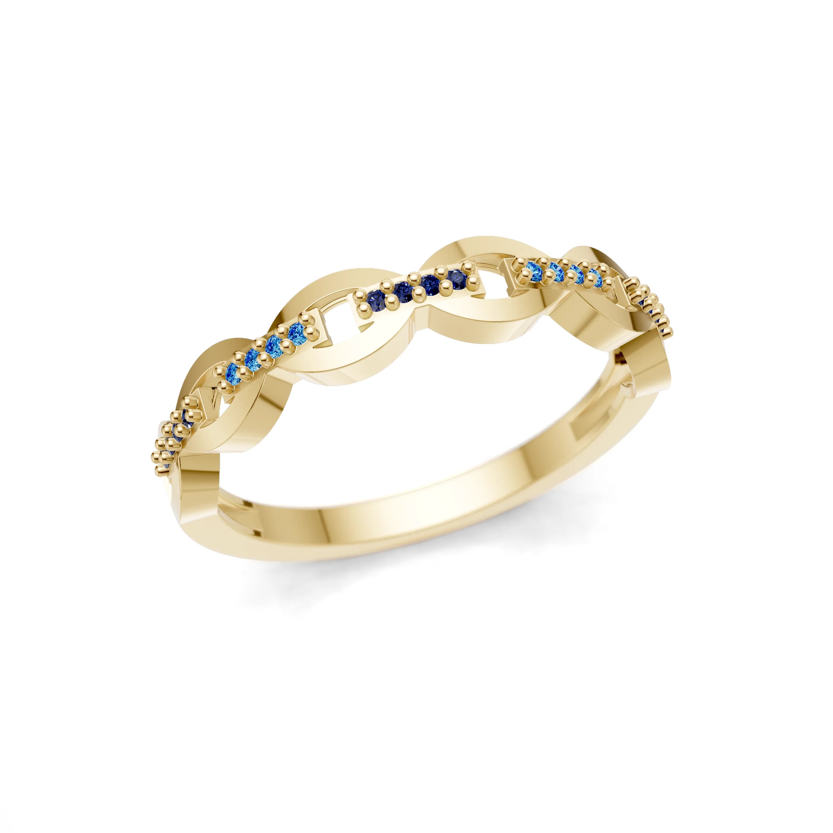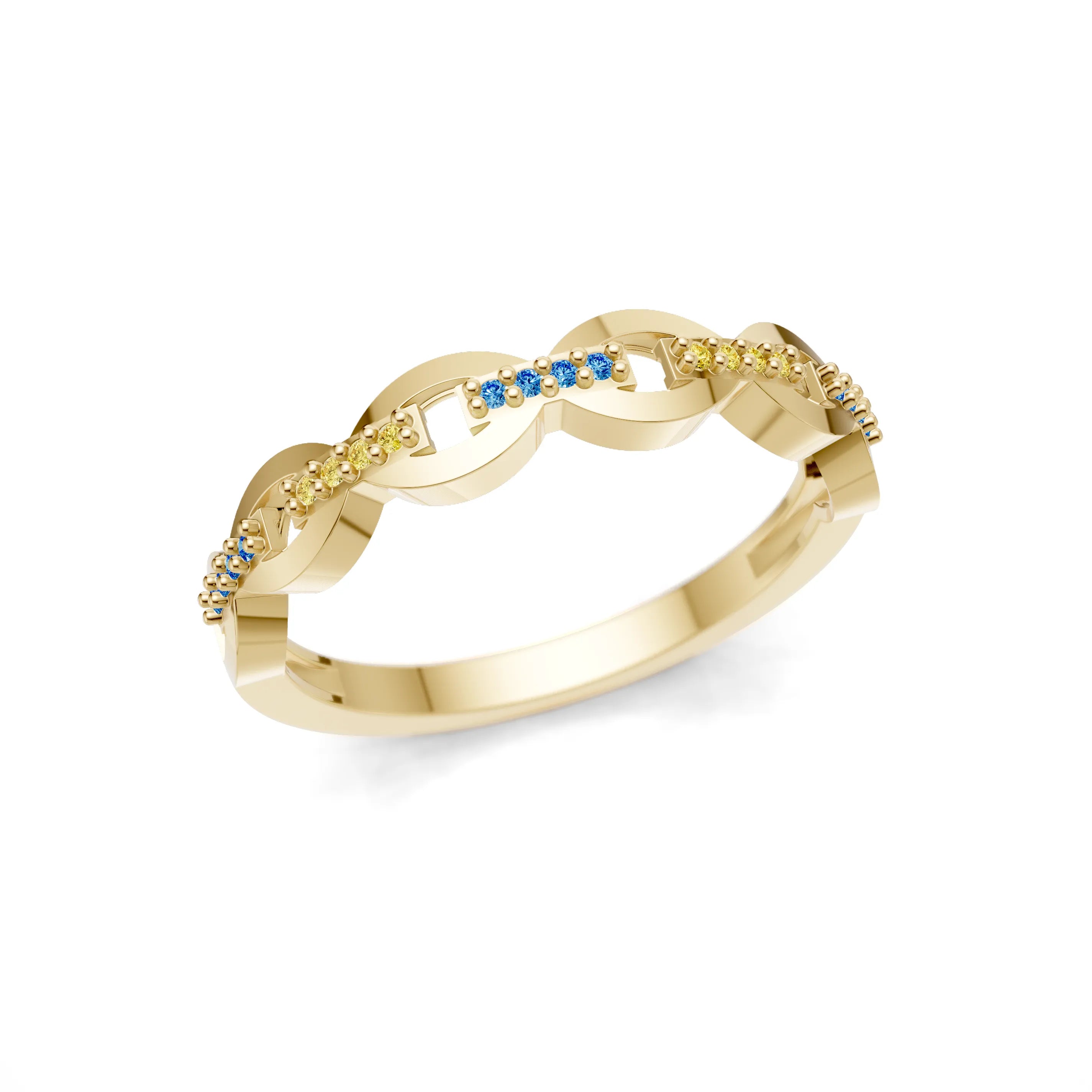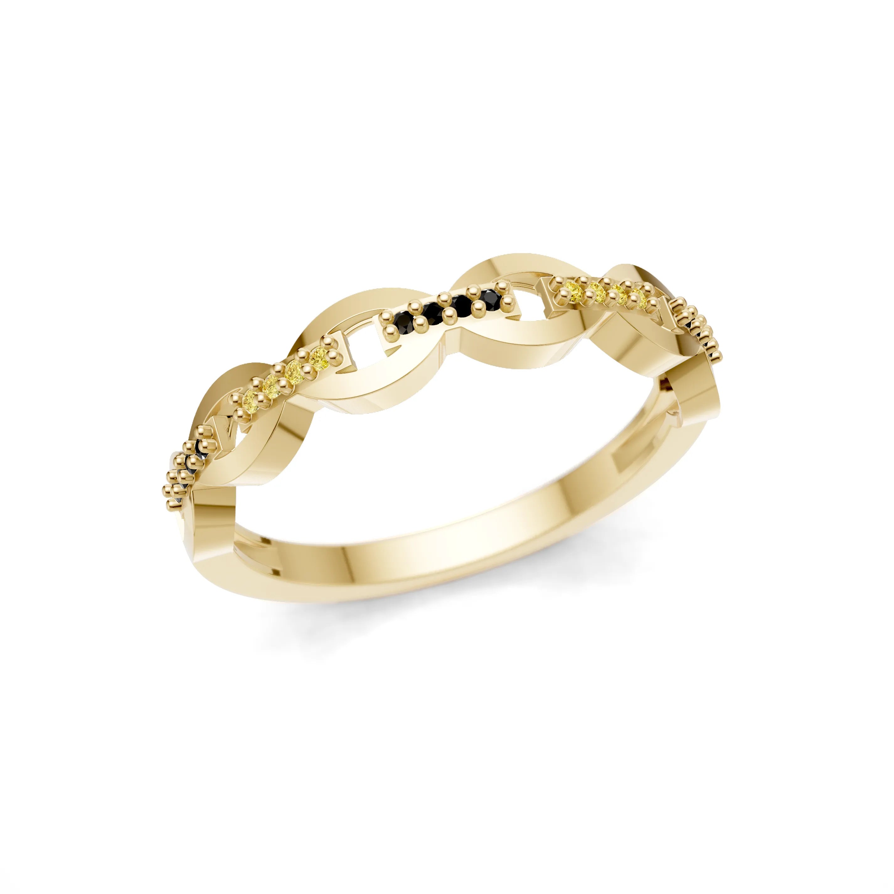 The "Twist of Brilliance Accent Ring" is an enchanting piece that showcases an artful intertwining of golden bands, creating a mesmerizing twist design. This ring is punctuated by a row of delicately placed gems, adding a dash of sparkle and elegance to the overall aesthetic. As an accent ring, it is perfect for those seeking to add a subtle yet captivating touch to their hand.